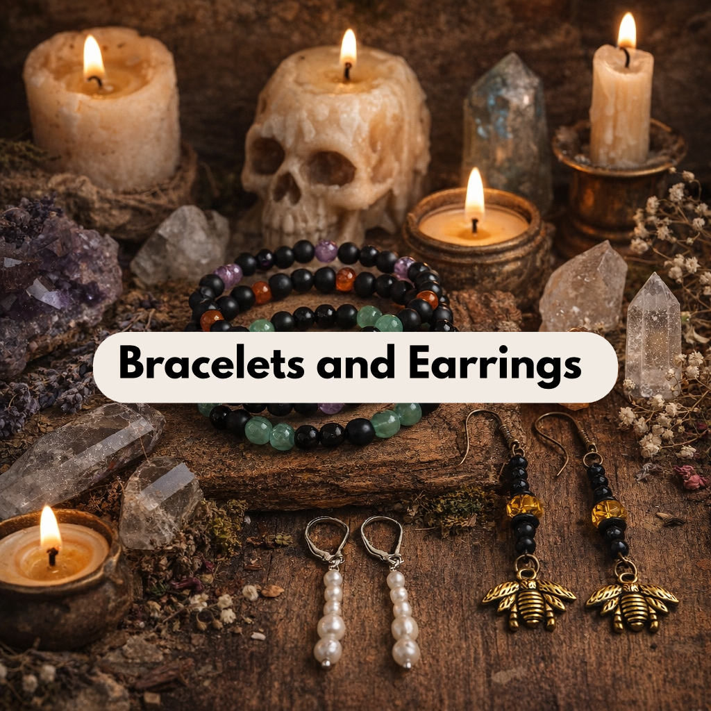 CLICK HERE FOR BRACELETS AND EARRINGSAdorn yourself with intention through Witch Josephs Bracelets and Earrings Collection—beautiful, handcrafted pieces designed to bring magick, energy, and style into your everyday life. Featuring gemstone bracelets, enchanting earrings, protective charms, and witchy adornments, each item is chosen for its spiritual properties as well as its aesthetic appeal. Whether you seek grounding, protection, prosperity, love, or energetic balance, these wearable talismans help you carry your craft with you wherever you go. Perfect for witches, healers, energy workers, and lovers of metaphysical jewelry, this collection blends beauty with purpose to elevate both your look and your magick.