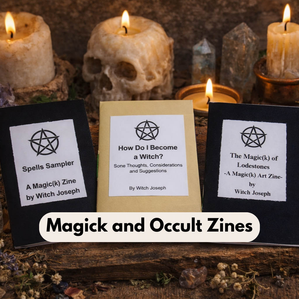 CLICK HERE FOR MAGICK AND OCCULT ZINESDive deep into arcane wisdom with Witch Joseph’s Magick and Occult Zines—a curated collection of handcrafted mini-grimoires, ritual guides, and mystical booklets for witches, pagans, and seekers of esoteric knowledge. These pocket-sized zines explore spellcraft, folklore, sabbats, divination, herbal magick, and occult traditions, offering accessible teachings perfect for both beginners and seasoned practitioners. Designed for altar use, study, and inspiration, each zine delivers practical witchcraft, spiritual insight, and timeless magick in a beautifully crafted format. Expand your practice, enrich your grimoire, and uncover the hidden arts one page at a time.
