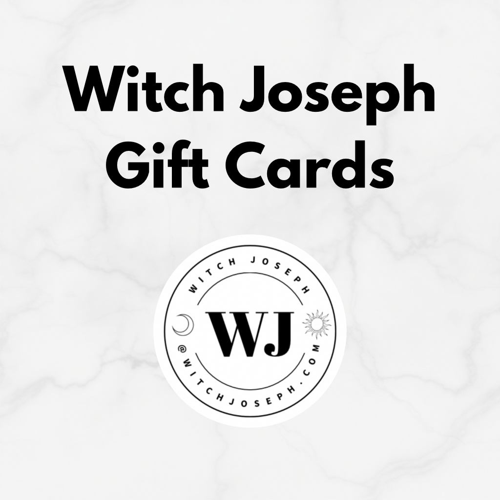 CLICK HERE FOR GIFT CARDSWitch Joseph Gift Cards – The Perfect Magickal Gift for Every Witchy Soul. When you’re not quite sure which spell, crystal, charm, or sacred tool to choose, a Witch Joseph Gift Card lets your loved one follow their intuition. Perfect for Sabbats, birthdays, Yule, Winter Solstice, weddings, handfastings, or “just because,” our digital gift cards unlock a world of witchcraft supplies, ritual tools, incense, oils, jewelry, talismans, spiritual gifts, and mystical treasures. Whether they’re a seasoned practitioner, a baby witch, or simply enchanted by the beauty of magick, Witch Joseph Gift Cards give the freedom to select exactly what calls to their spirit. Sent digitally and easy to use, they are a thoughtful, meaningful, and stress-free gift that always fits and never expires spiritually.Give the gift of wonder. Give the gift of magick. Give the gift of Witch Joseph.