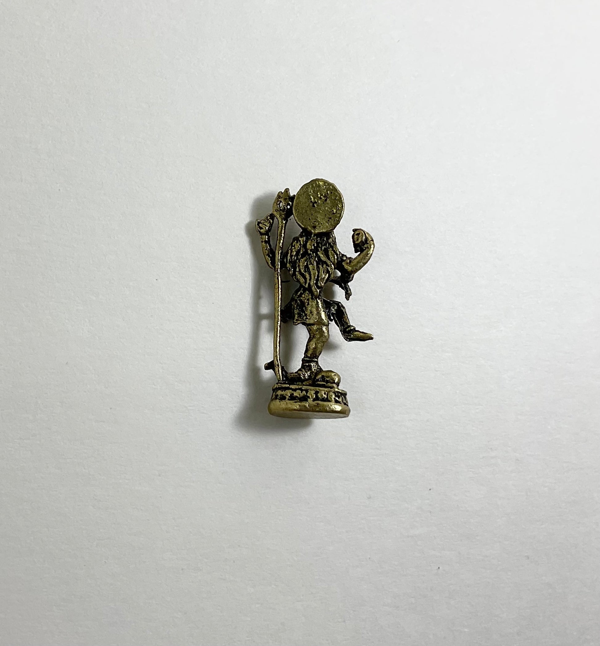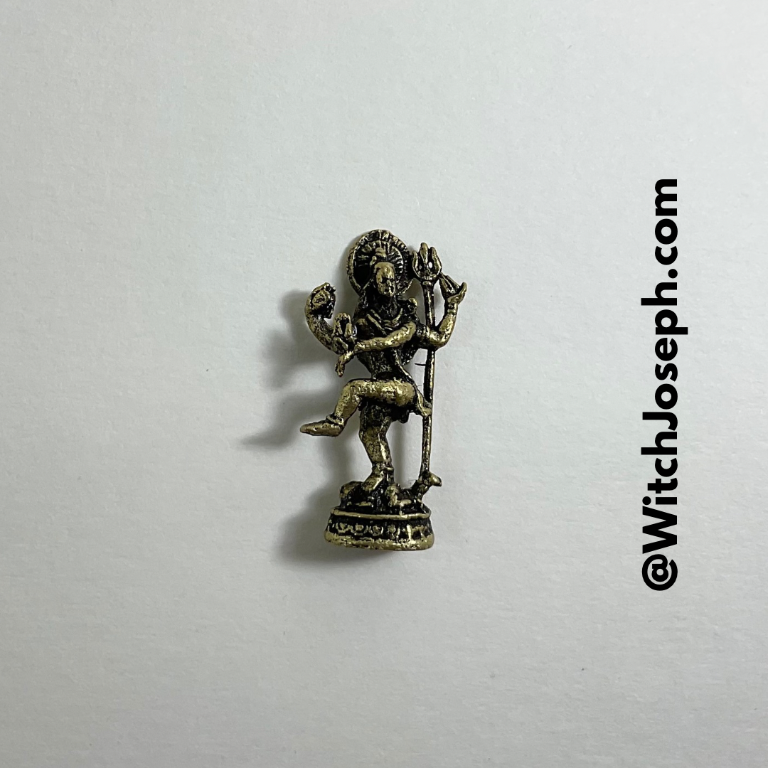 Tiny yet powerful brass Shiva statue. Shiva is the destroyer of our illusion and ignorance that stands in the way of our enlightenment. Keep in pocket or on surface to feel the power of Shiva. 1 1/2" Brass.