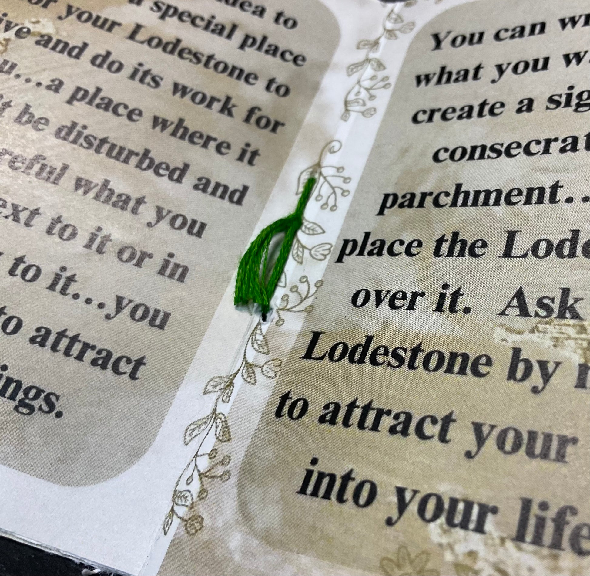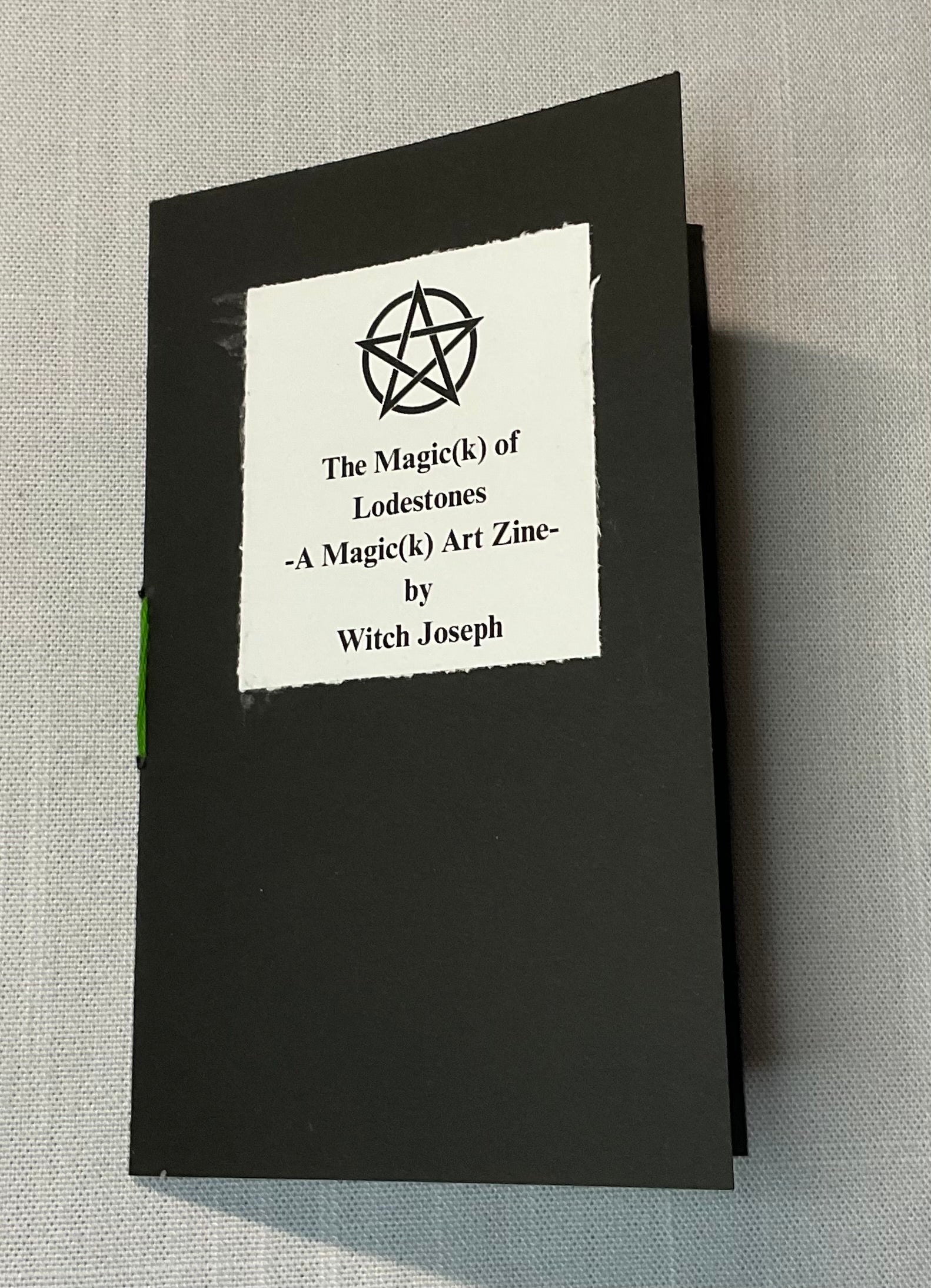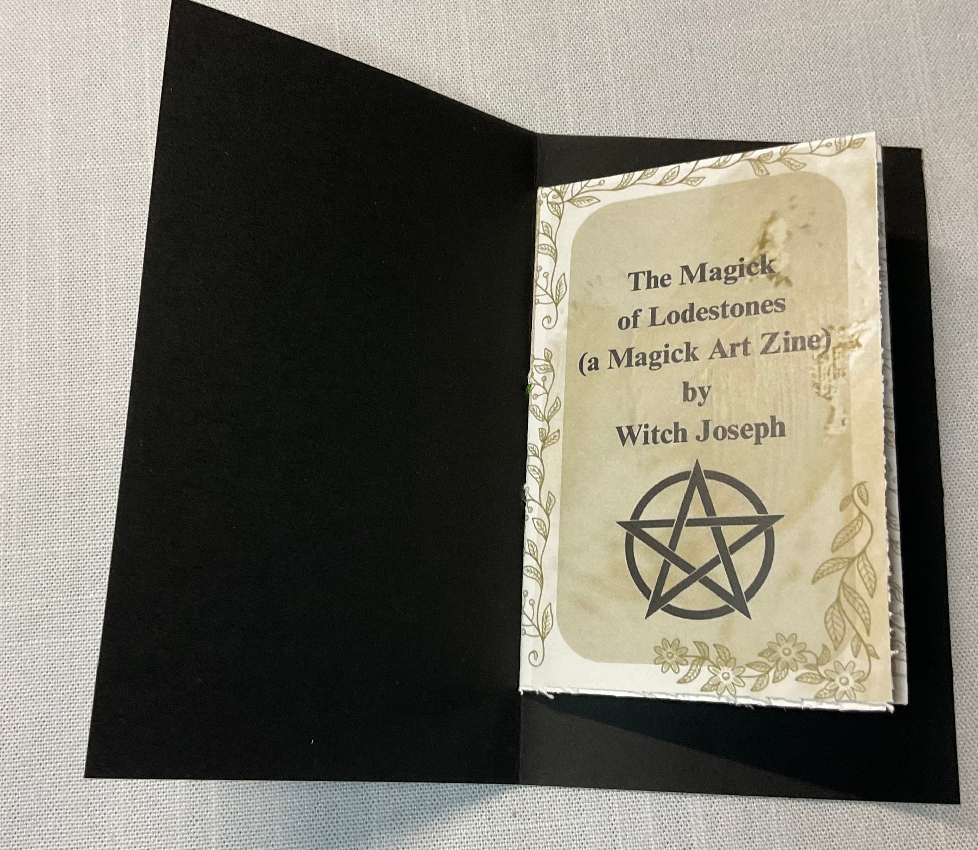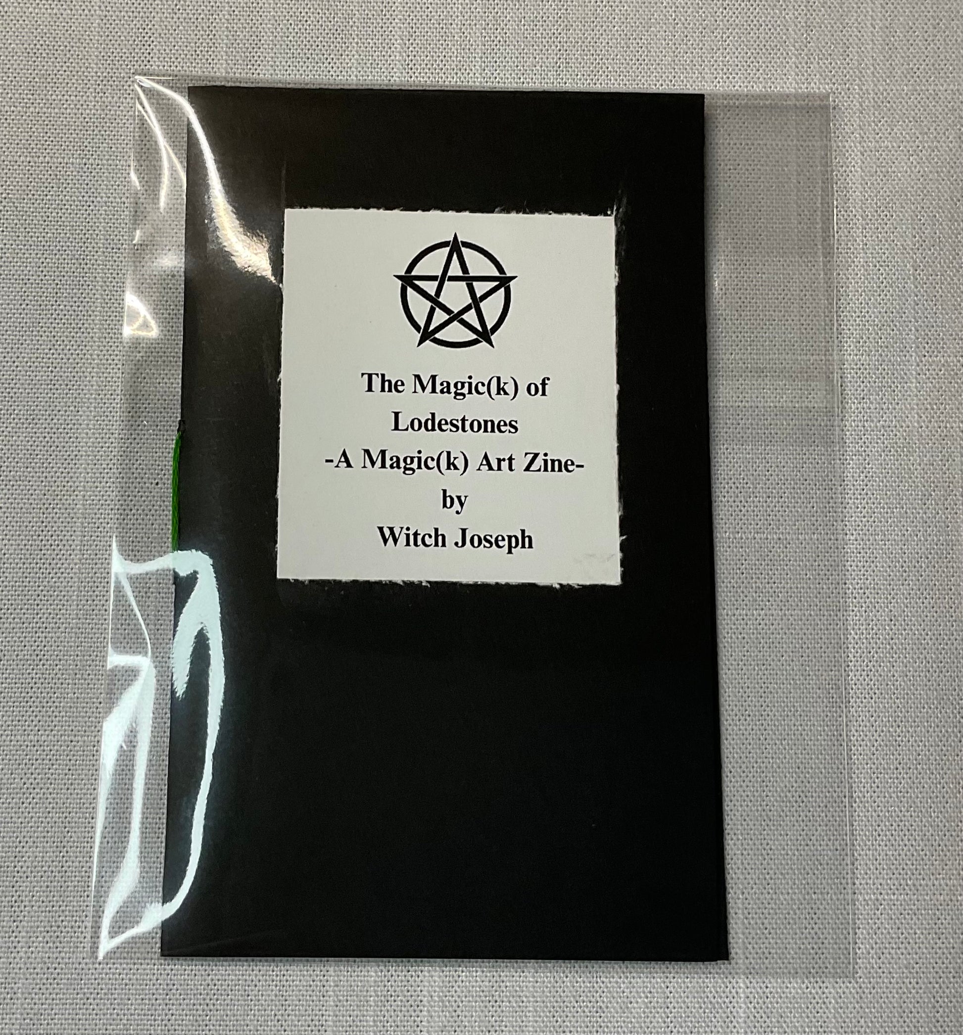 An 8 page magick zine (approximately 2.5”x3.5”…cover is slightly larger approximately 3”x4.5”). Bound with a single simple saddle stitch. This Zine has informative information, considerations and practical suggestions about harnessing the magick of the Lodestone.