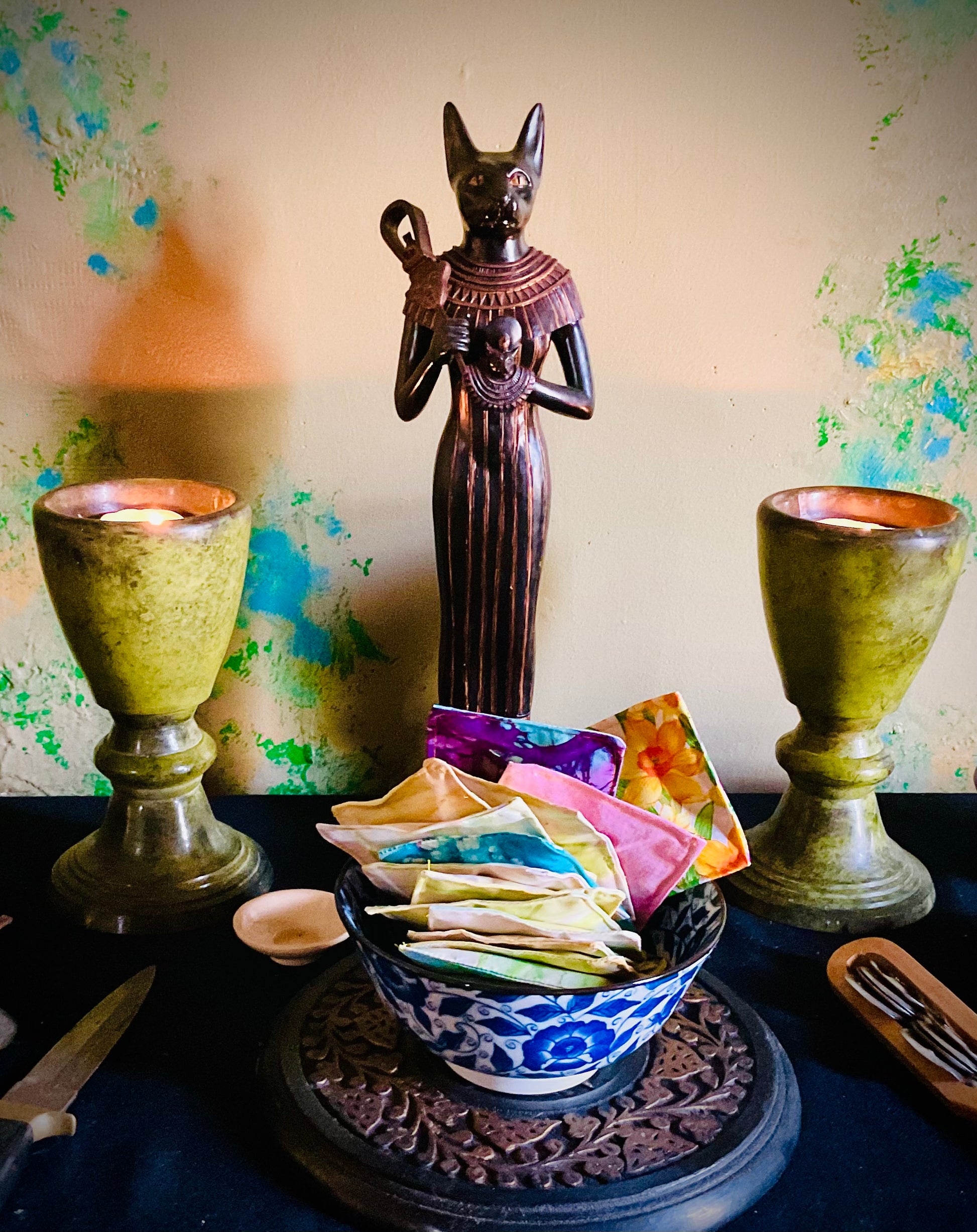 All catnip bags are blessed on our Bastet altar…see photo for example.