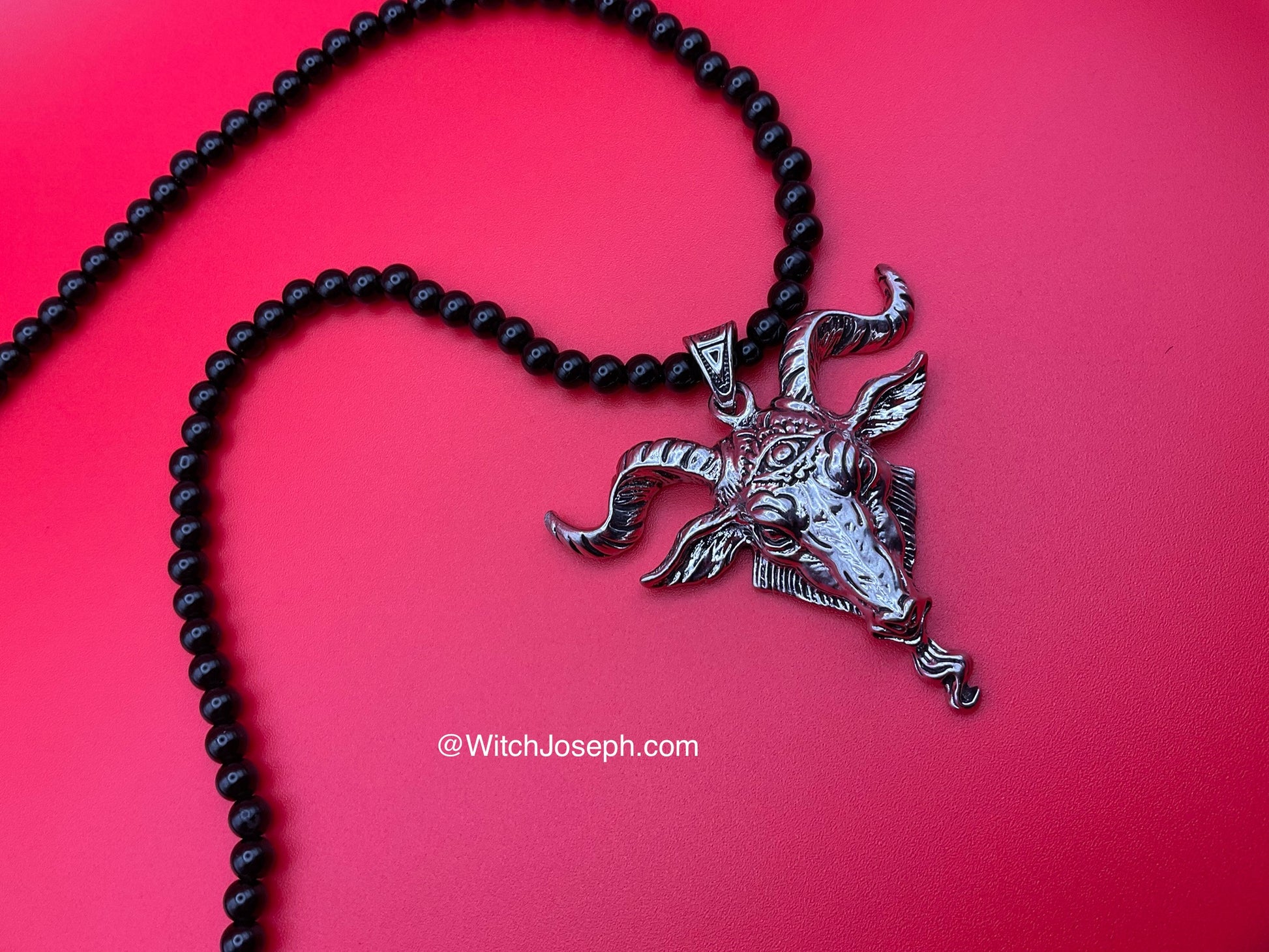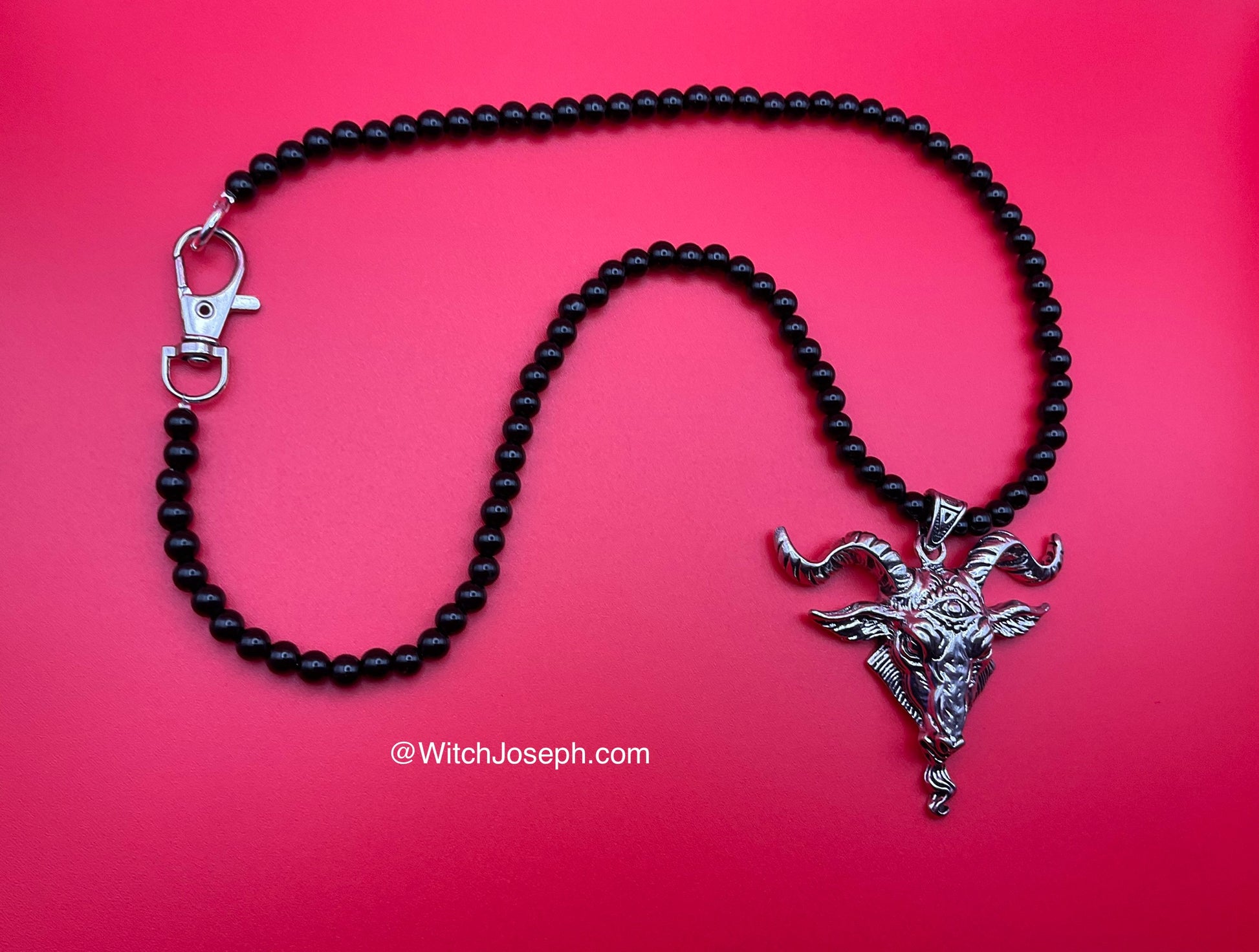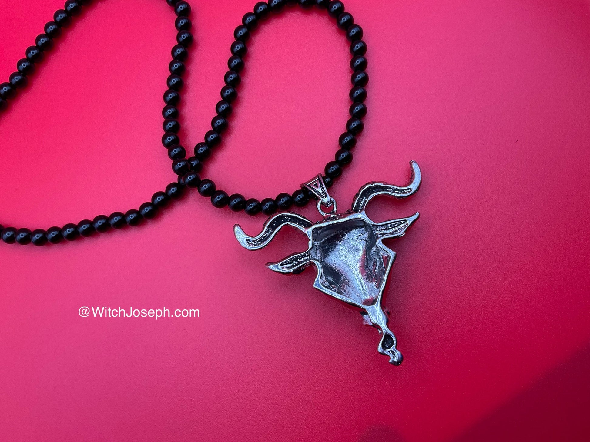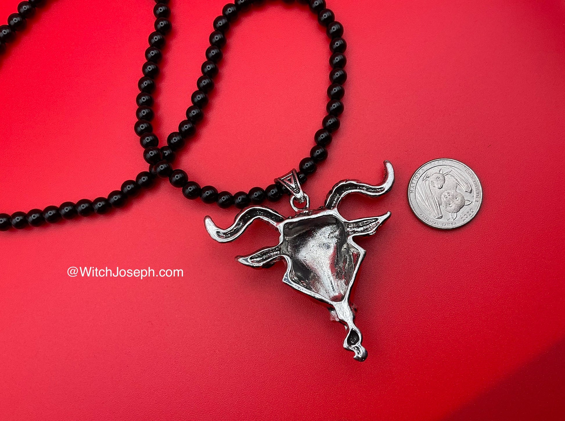 Invoke the mysteries of the Sabbatic Goat with this striking handmade talisman from Witch Joseph. Featuring a bold Baphomet Goat Head pendant (approximately 2.5” x 2.5”), this necklace channels both power and balance—the sacred union of opposites.