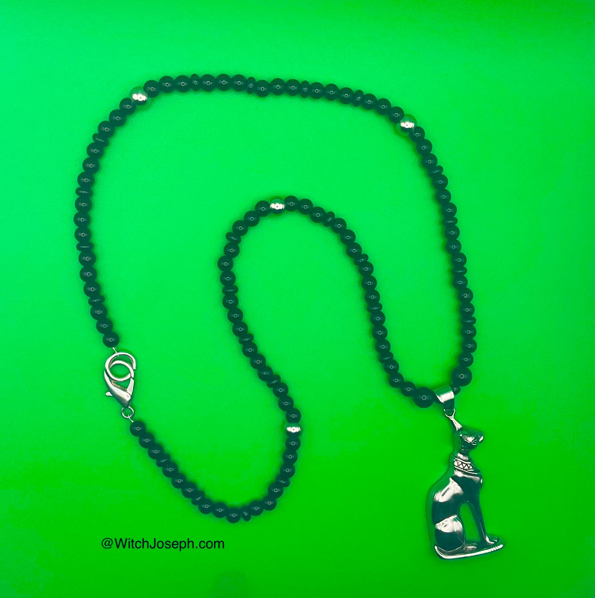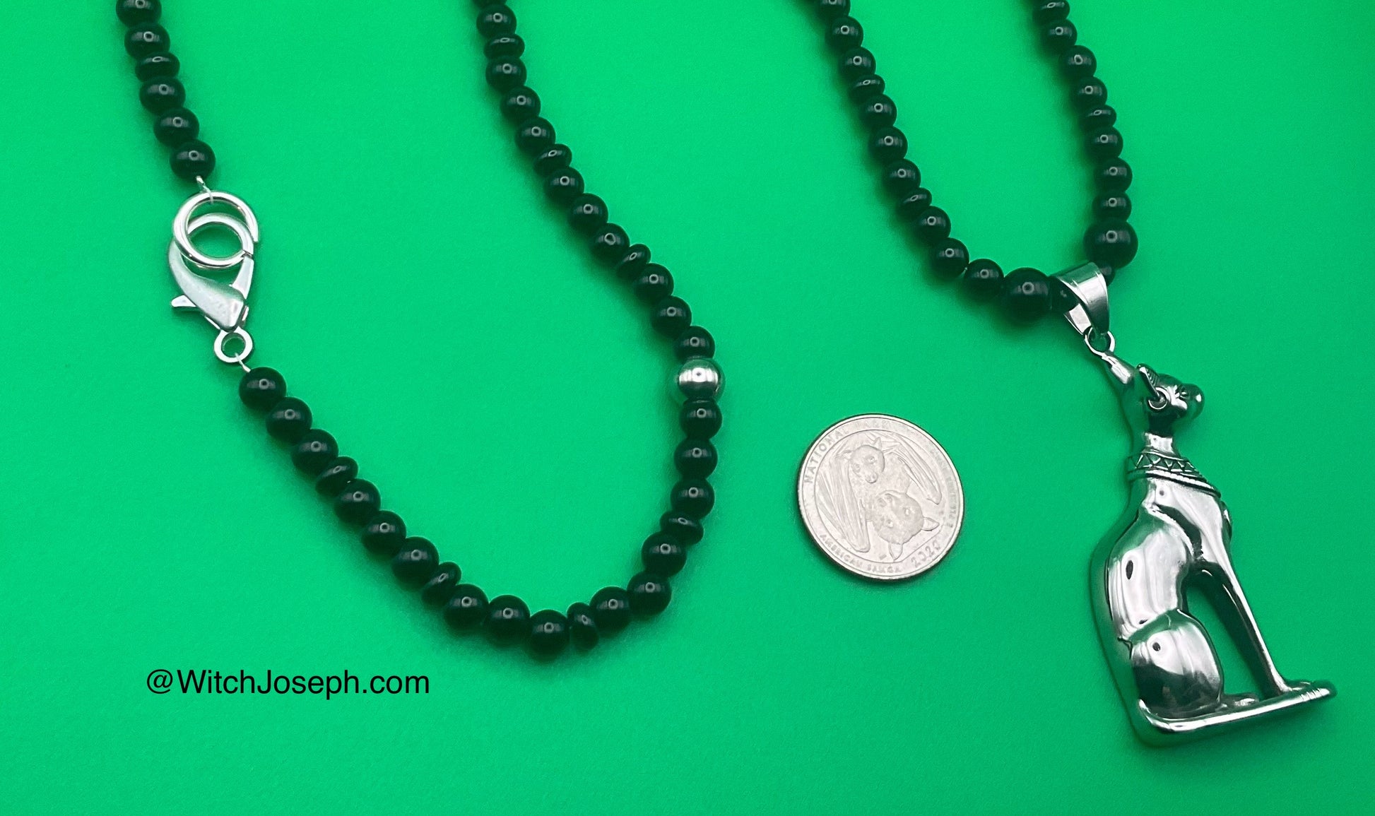 • Materials: Stainless steel Bastet pendant, stainless steel beads, black glass beads