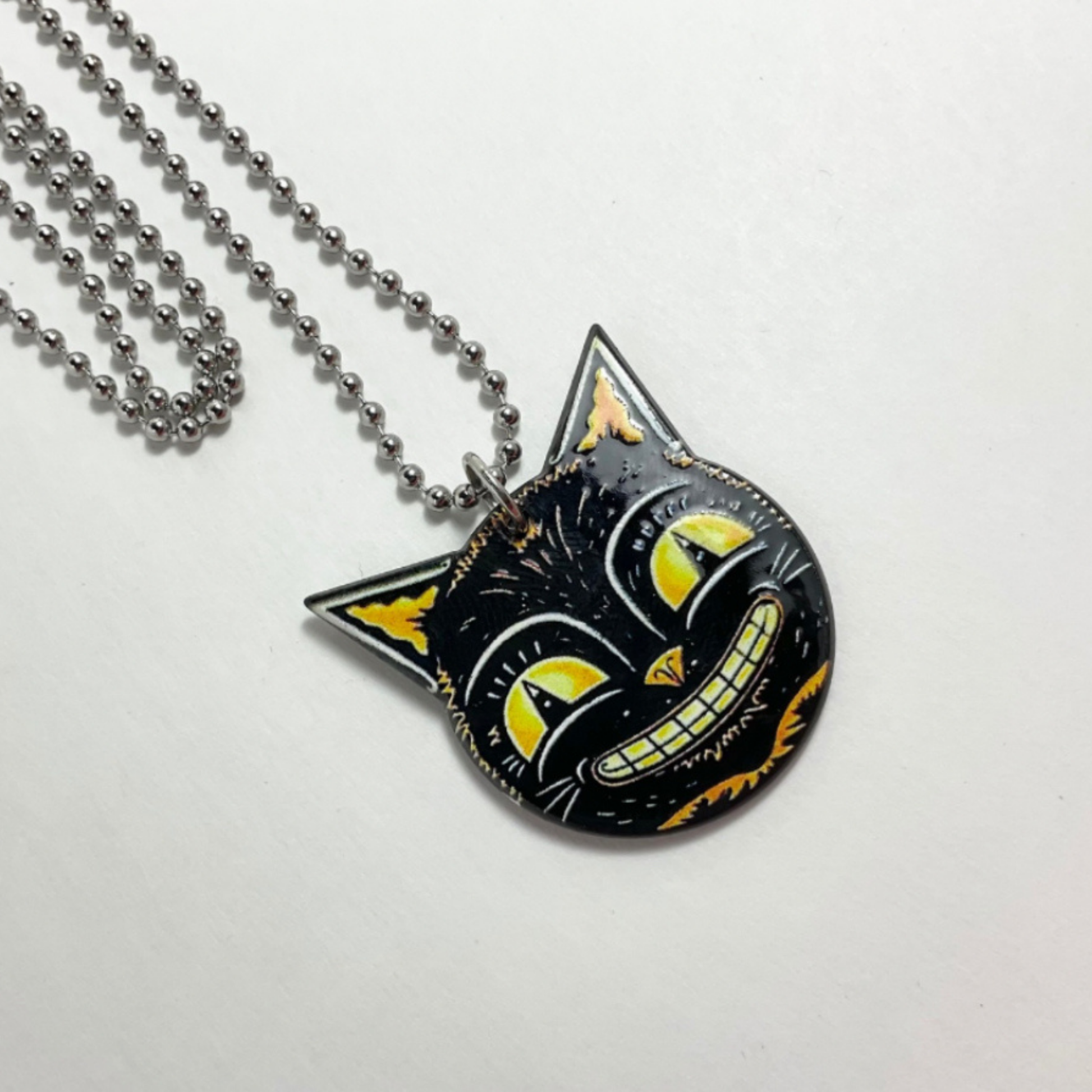 Adorable two sided acrylic vintage style Black Cat Face charm……double sided…grinning on one side…surprised on the other.