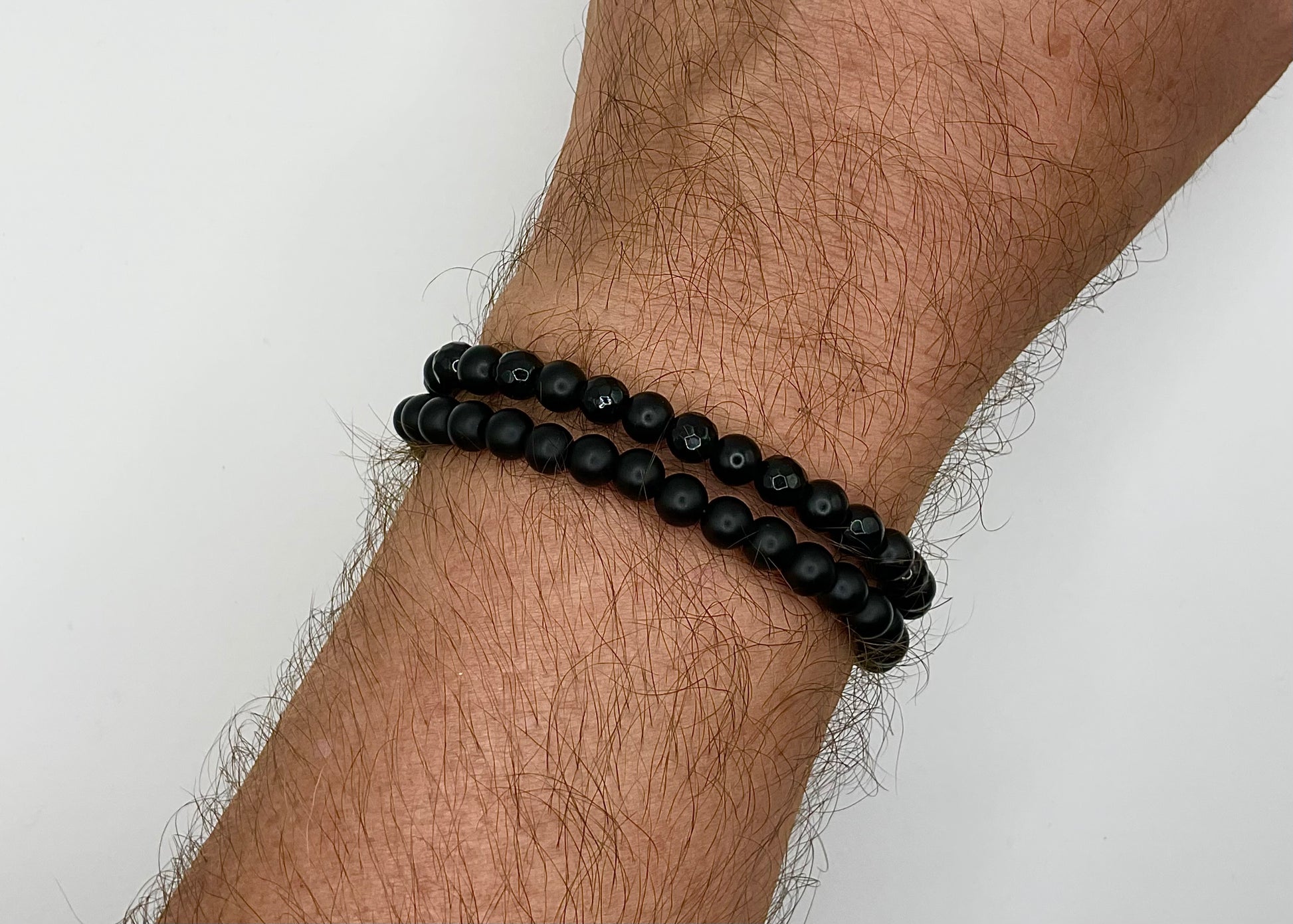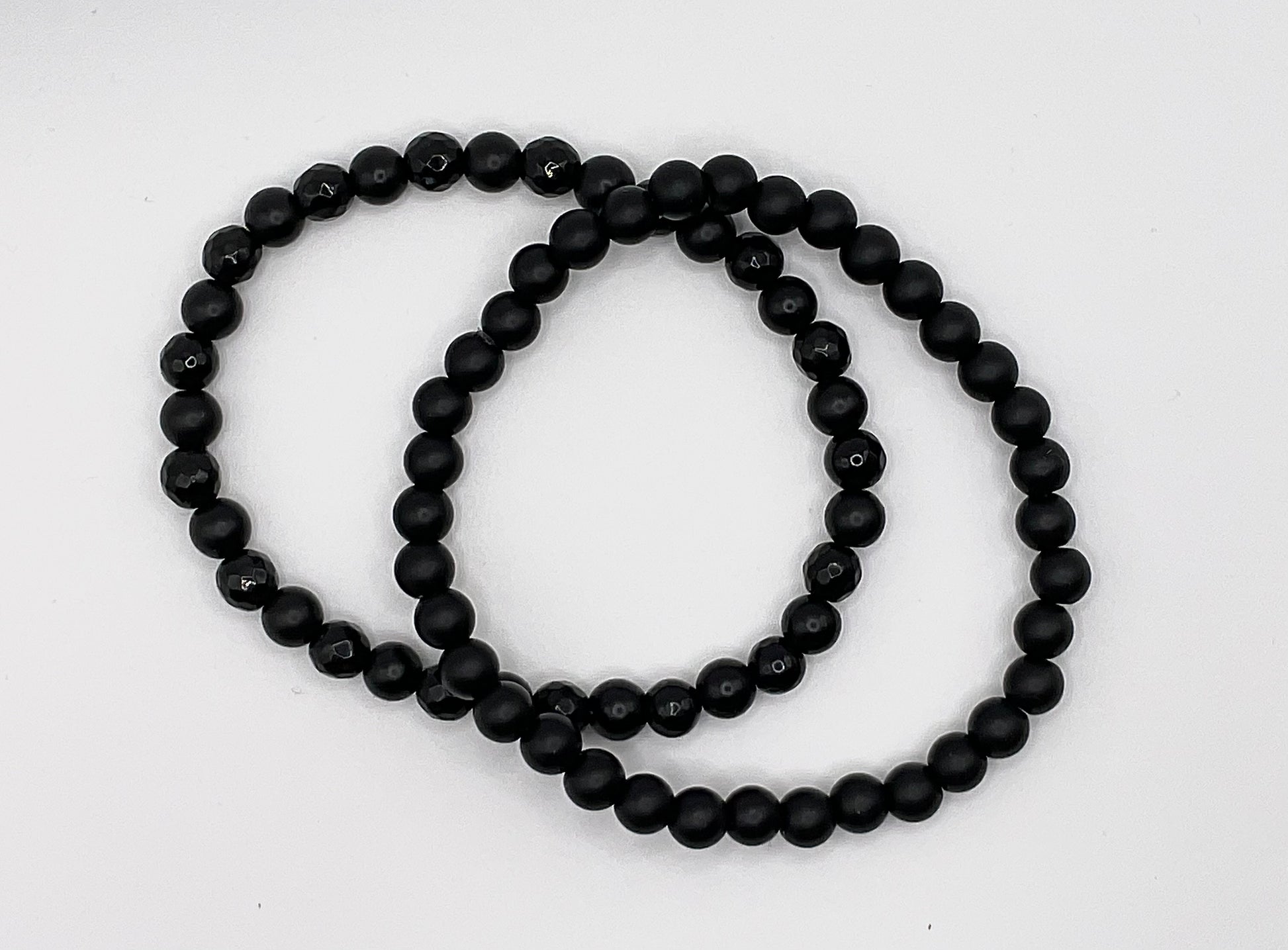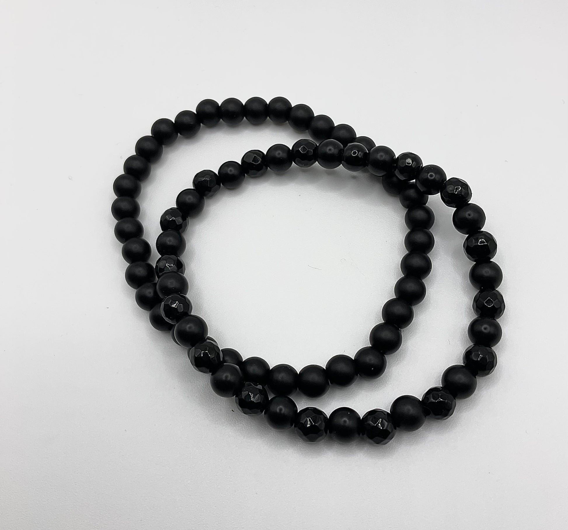 Crafted with 6mm smooth black beads and strong elastic cord, these bracelets offer both comfort and durability. Wear them stacked together for a bold statement, or share one with a kindred spirit as a symbol of connection and protection.