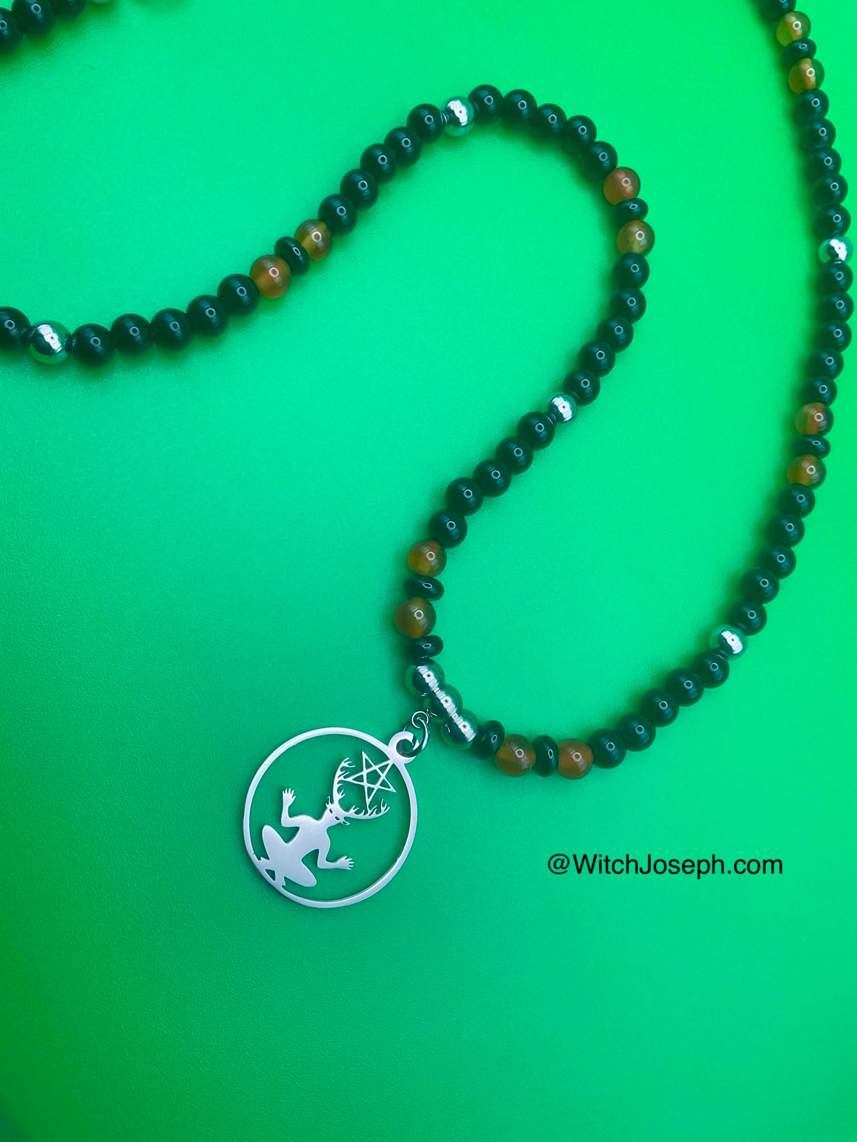Honor the Horned God with this powerful handmade Cernunnos Talisman by Witch Joseph. Measuring approximately 22 inches, this necklace features a 1-inch stainless steel Cernunnos pendant, with pentagram between his antlers—a symbol of abundance, protection, nature, and wild magick.