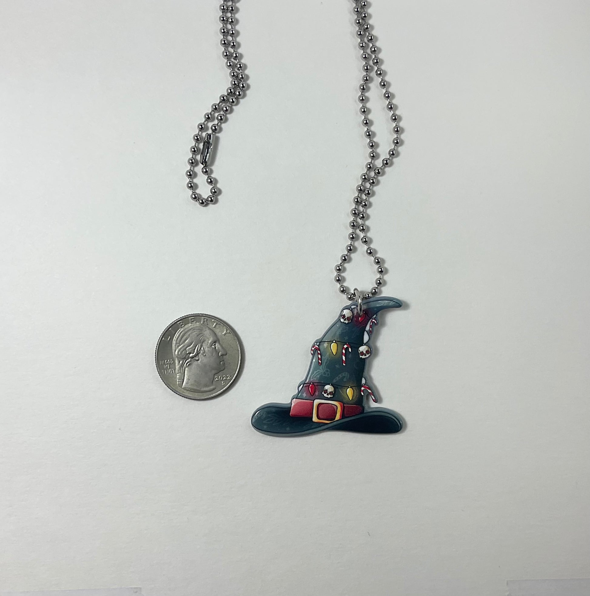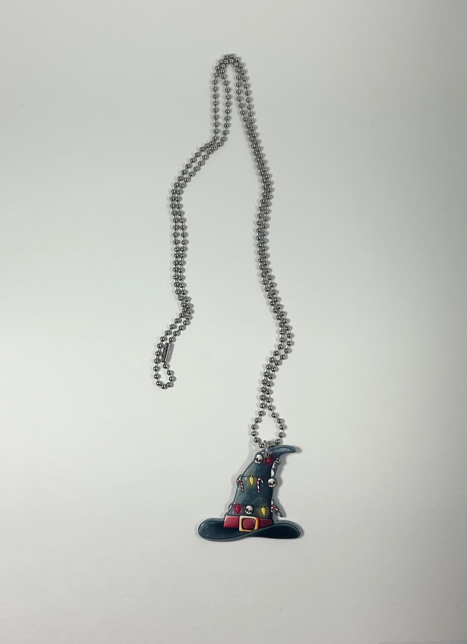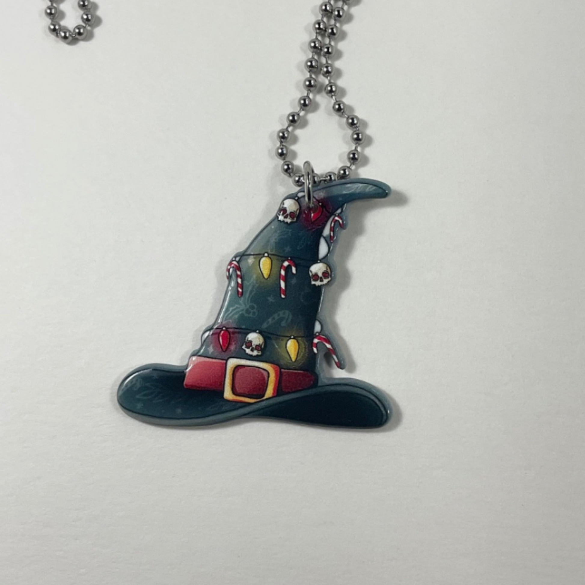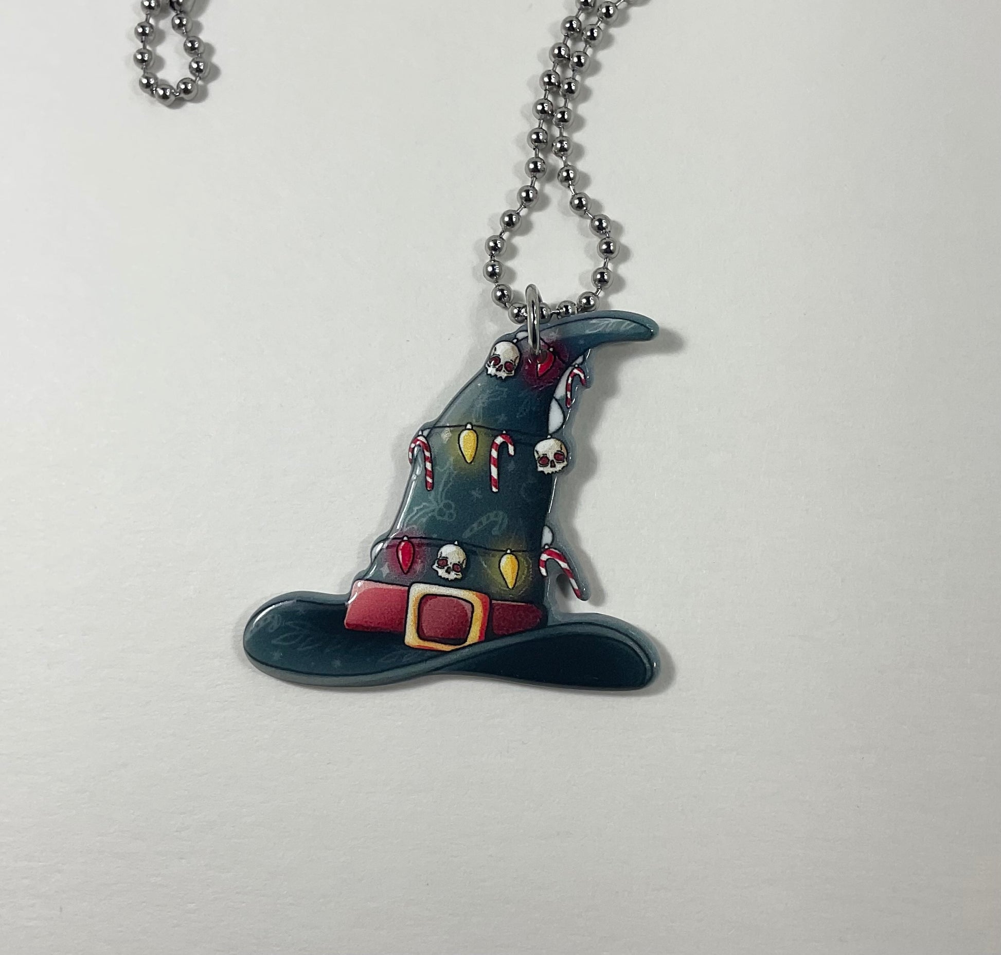 This adorable Holiday Witch Hat, themed with candy canes, holiday lights and skulls, is perfect as a stocking stuffer for your Witch friends or for yourself to wear during the Holiday season.