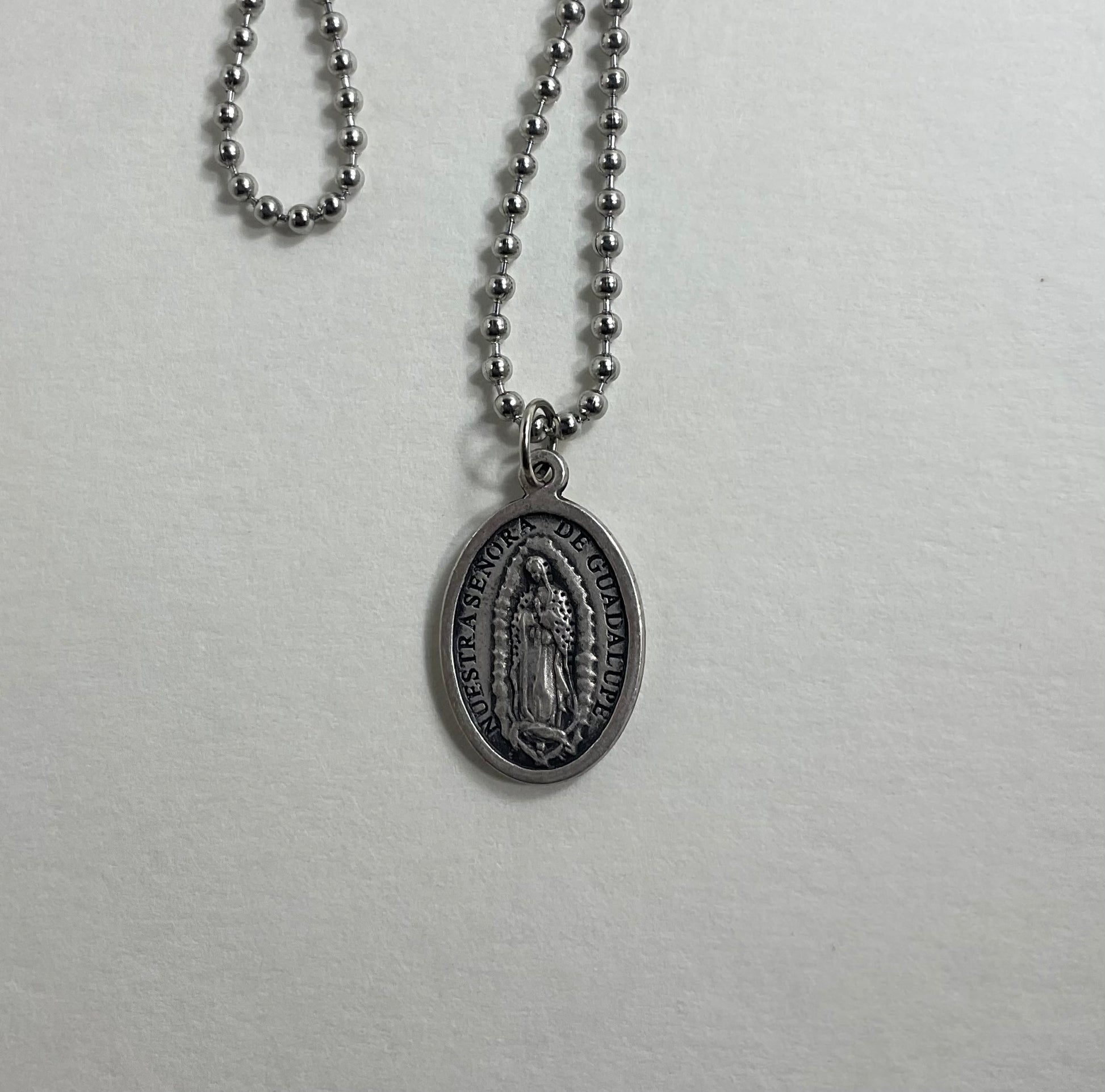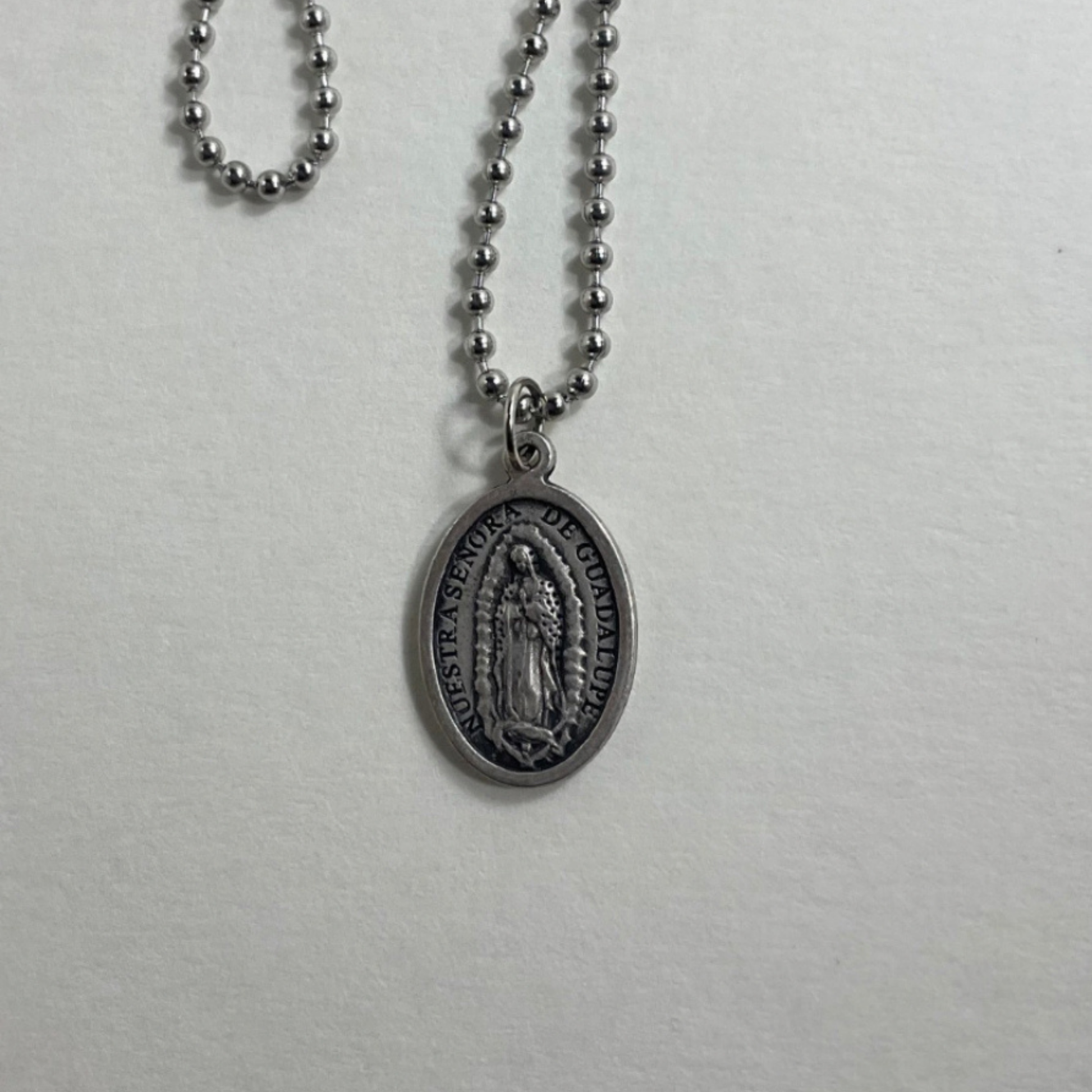 The reverse side of the medal has the image of Our Lady of Guadalupe…given to Saint Juan Diego in 1531 on the hill Tepeyac in Mexico…who asked that a shrine be built so that our Lady, Mother of Christ and of all humanity, could share Her love with all who believe.