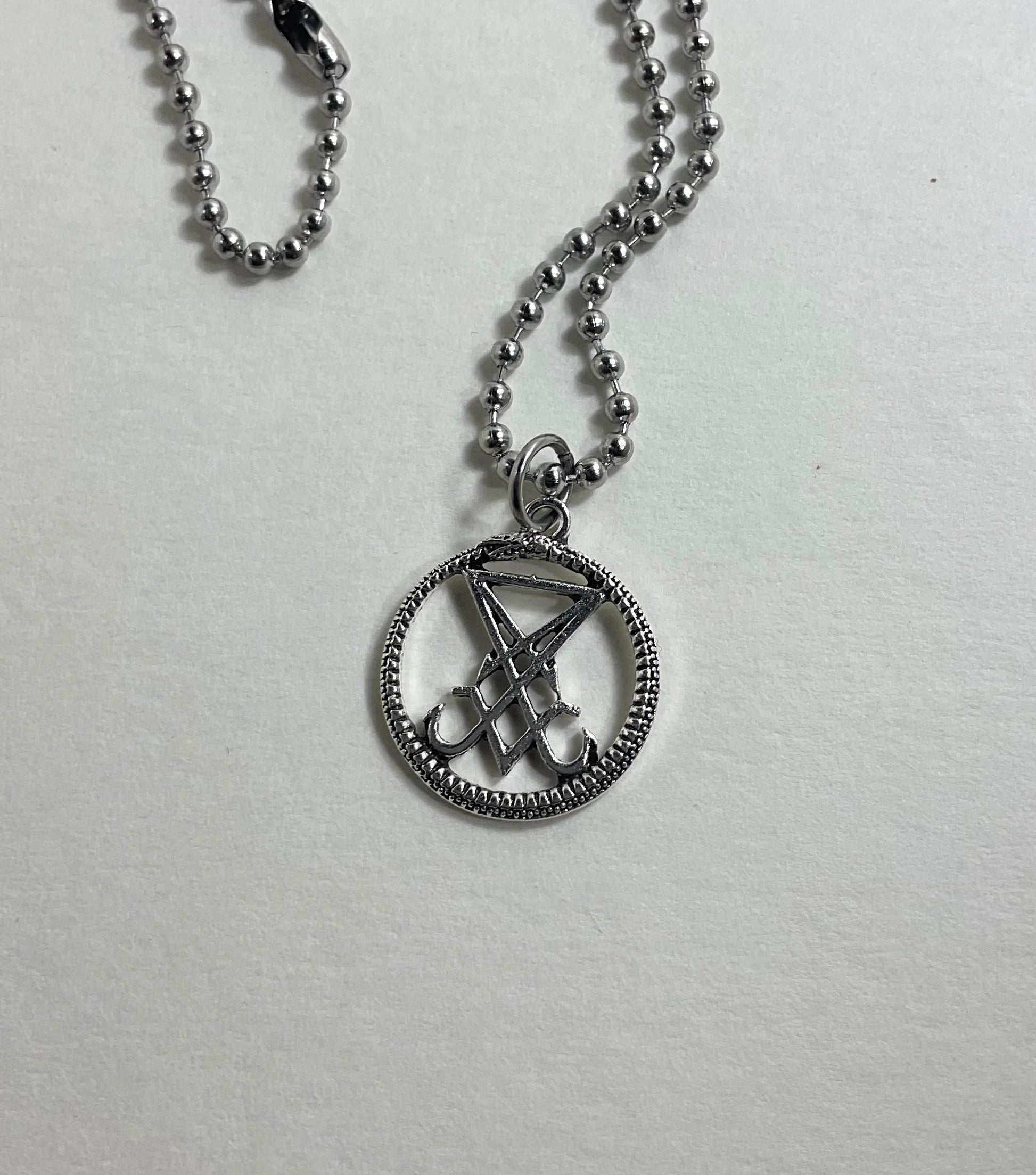 Celebrate the Light Bringer with this Lucifer Sigil charm necklace (each metal charm is 20 x 22mm). Lucifer is often compared with the Greek Prometheus…and is also pictured as the consort of the Goddess Diana and Father of Aradia…in the classic “Aradia, the Gospel of the Witches” by Leland.