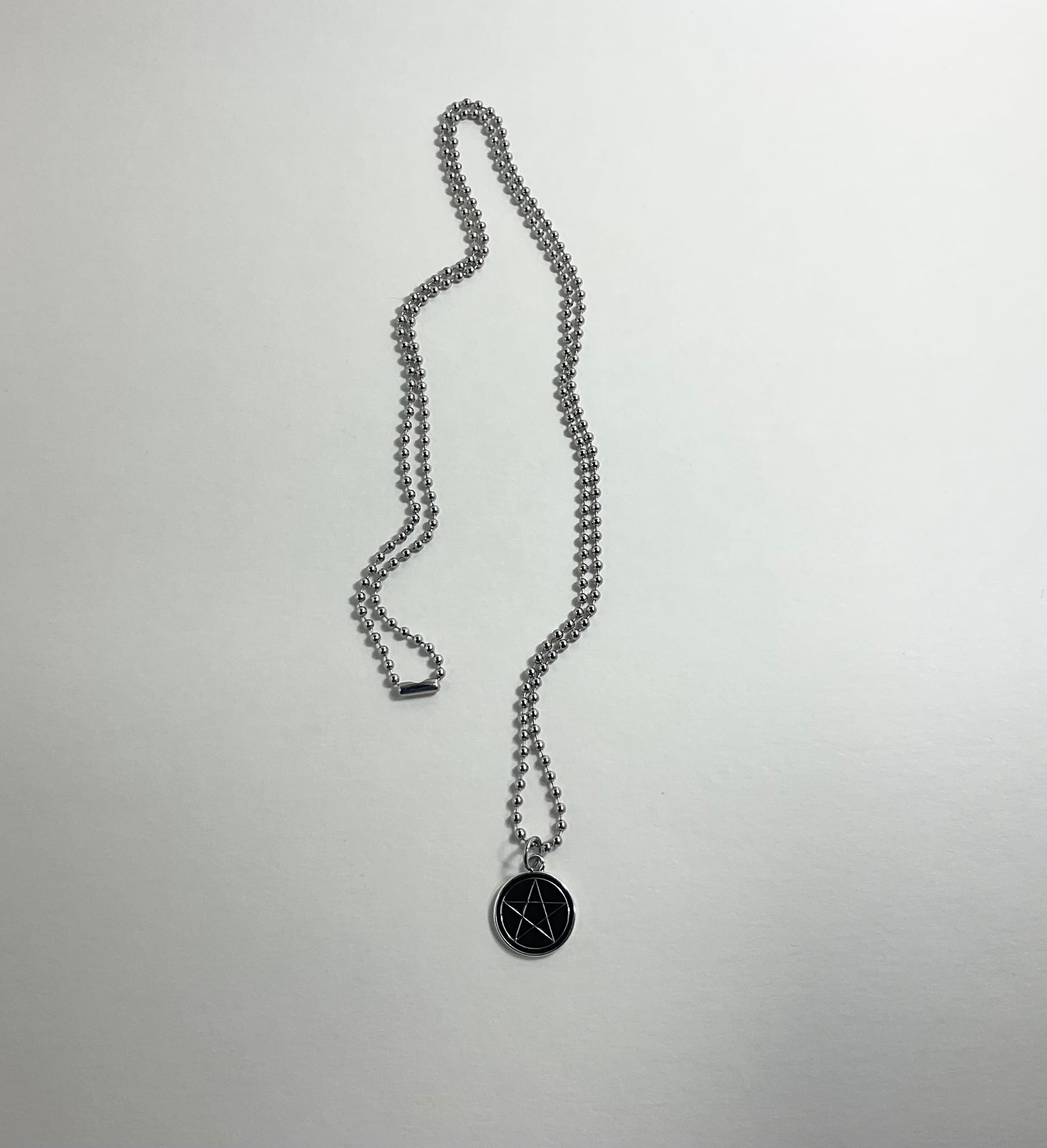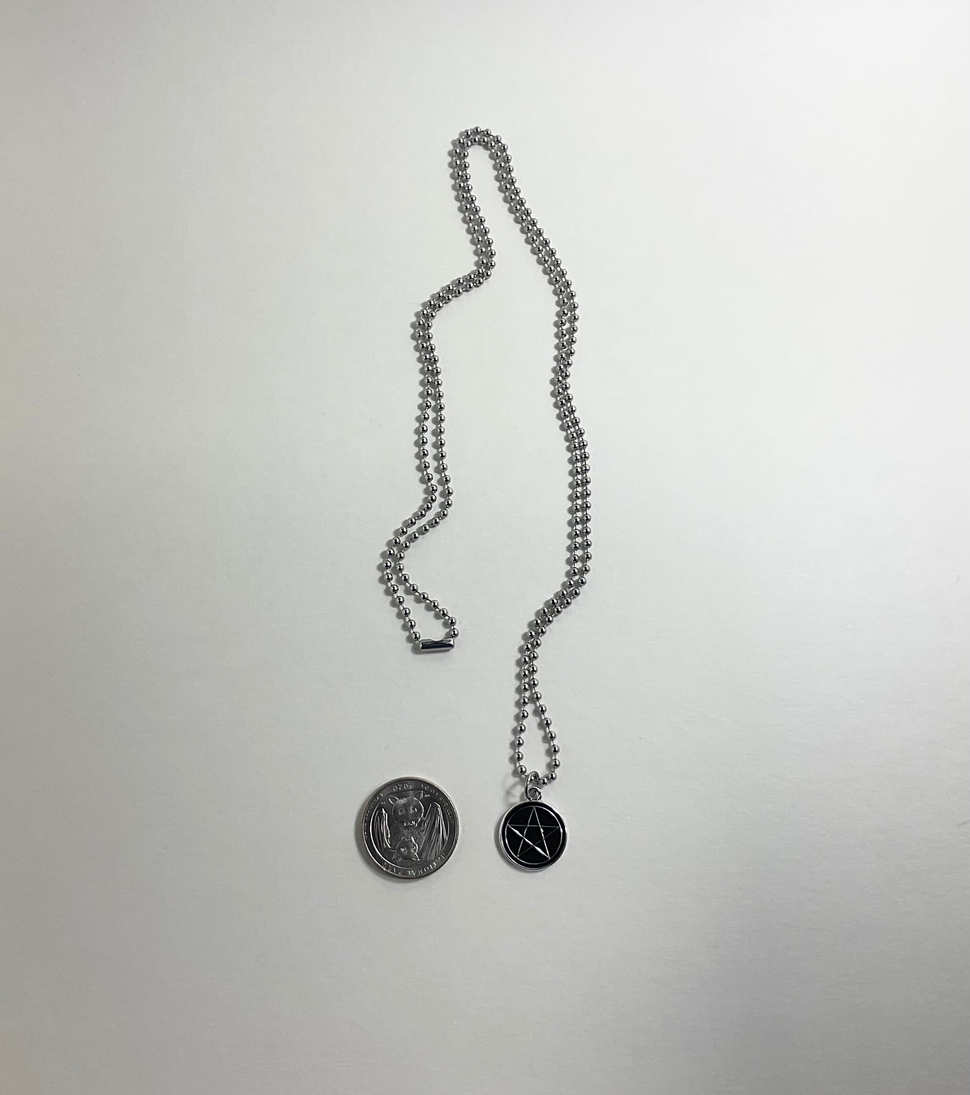 Pentagram/Pentacle Pendant in Black and Silver Tone…the Pentagram/Pentacle is a powerful protection symbol, sometimes symbolizing Witchcraft and the Magickal path itself. It is often seen as an elemental symbol with the four elements Earth, Air, Fire and Water in balance and crowned by the element of Spirit or Akasha symbolized by the upper top point….with the circle of protection and wholeness surrounding these…some practitioners see the human form represented by the five pointed star.