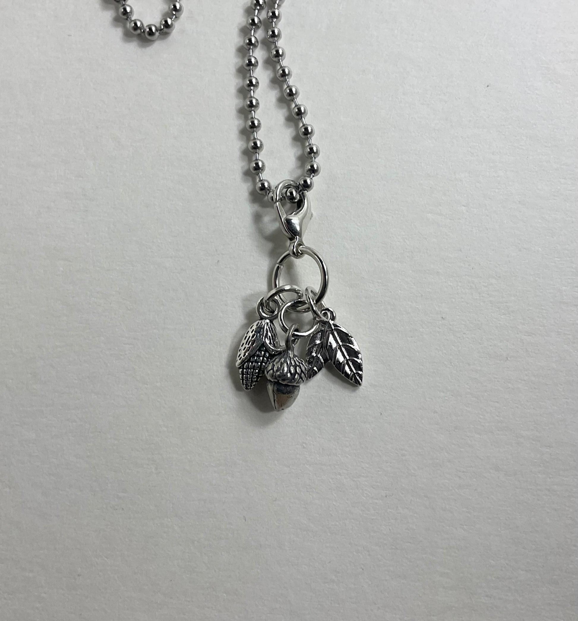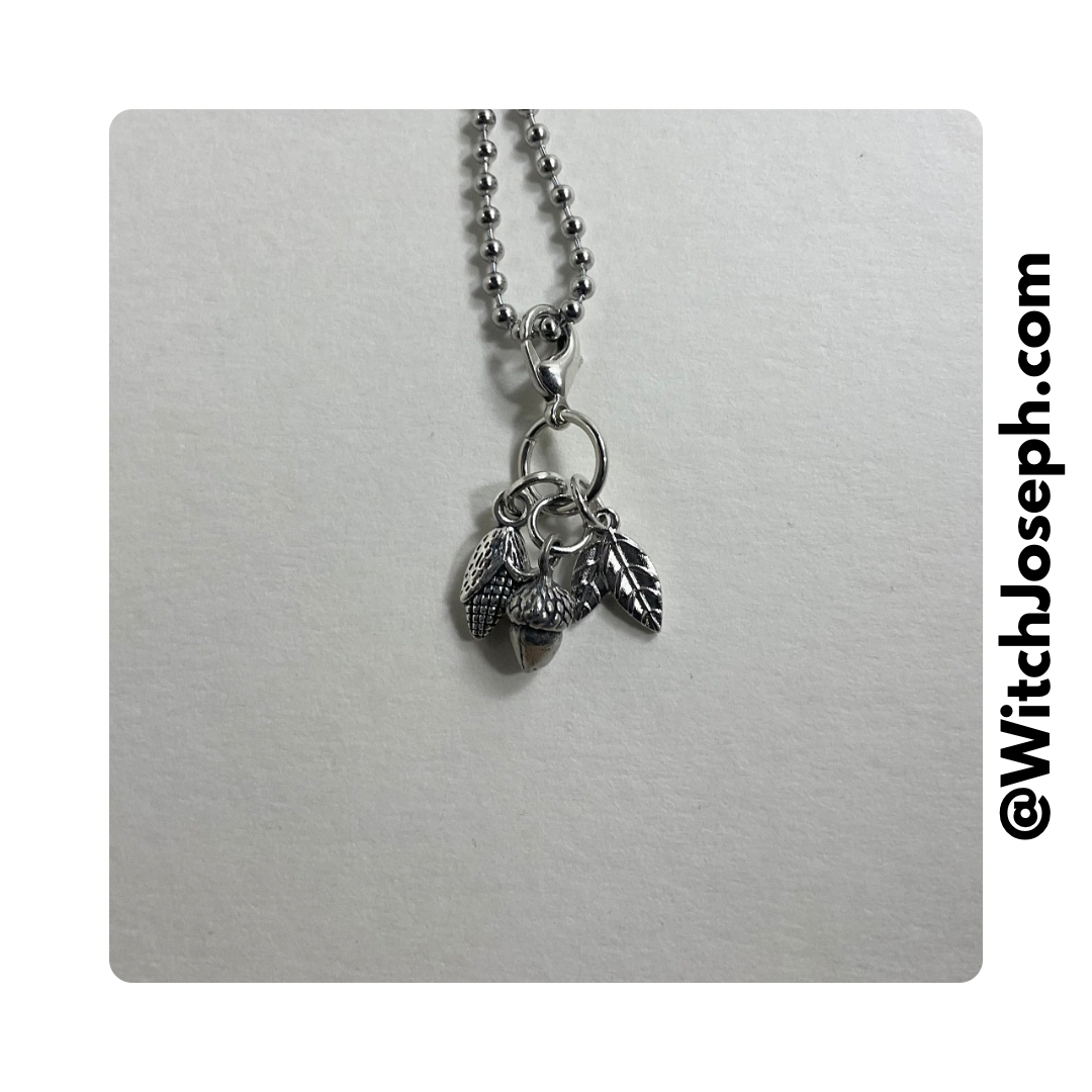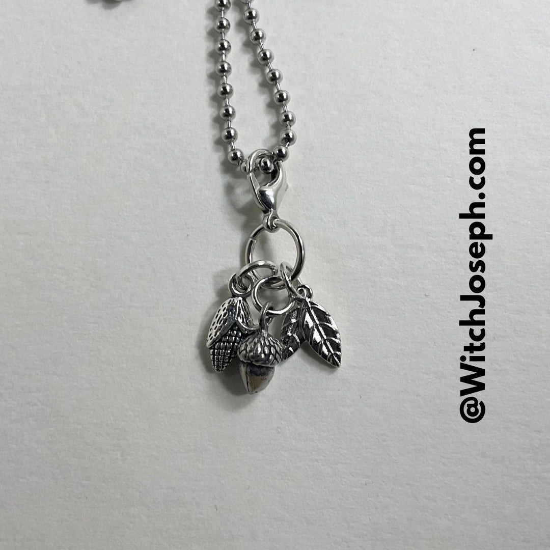 Celebrate the Seasons the Witch Joseph Way…This Autumn Charm necklace is lovingly made by Brother Christopher here at Witch House…featuring 3 metal charms of leaves, corn and acorn…sure to delight and bring joy to all Autumn lovers. Charms are attached to a silver tone metal lobster claw clasp and can be easily removed for use as a zip charm or other decorative adornment…approximately 1” x .5” .
