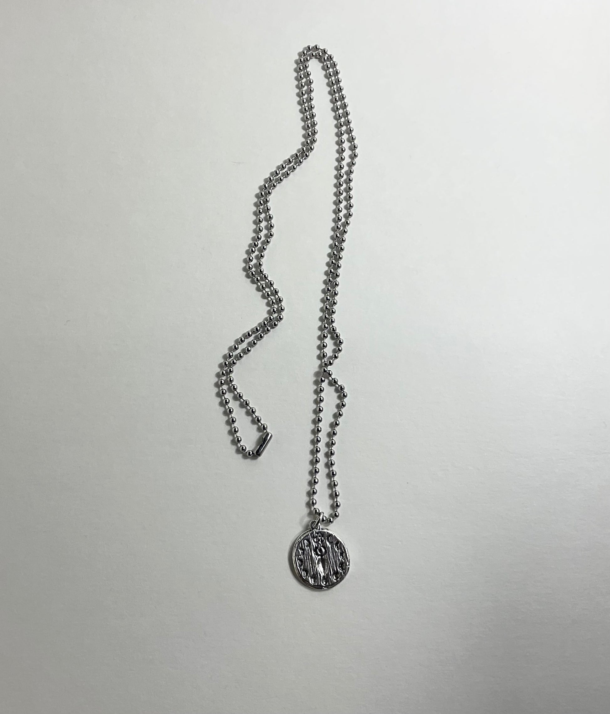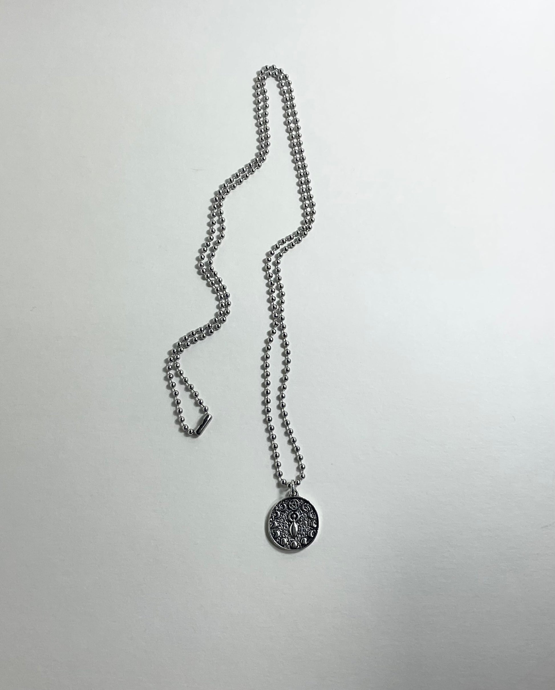 Goddess Moon Phase Charm (20mm) Necklace in silver tone metal.
