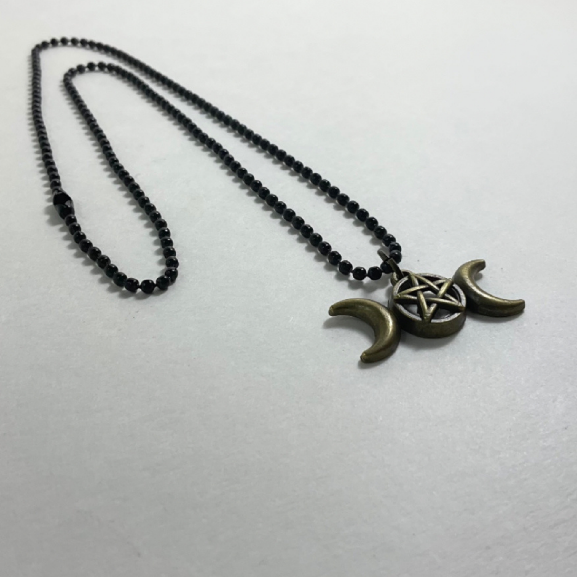 Triple Goddess Moon Charm in bronze tone (approximately 1” x .5”).