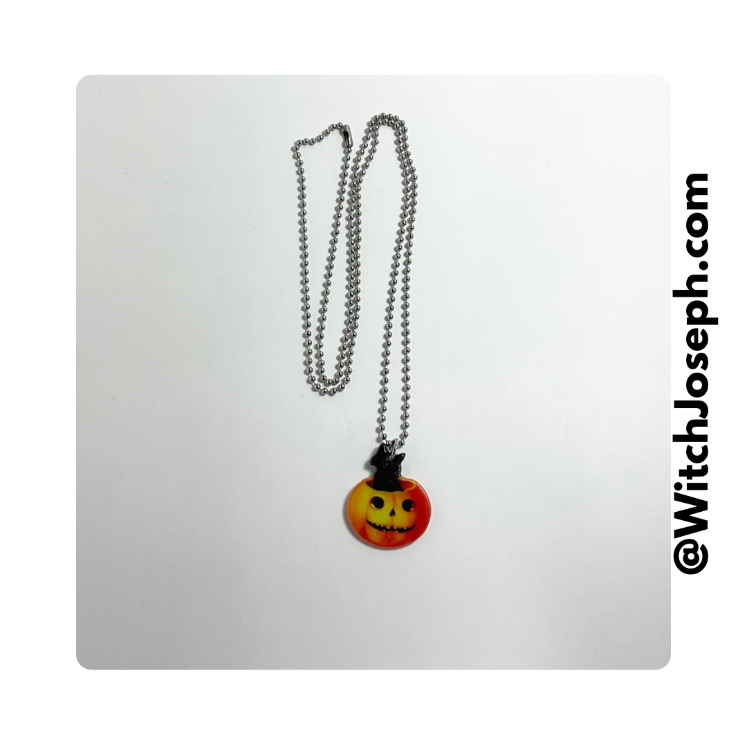 Adorable acrylic vintage style Cat and Jack o Lantern charm…double sided.