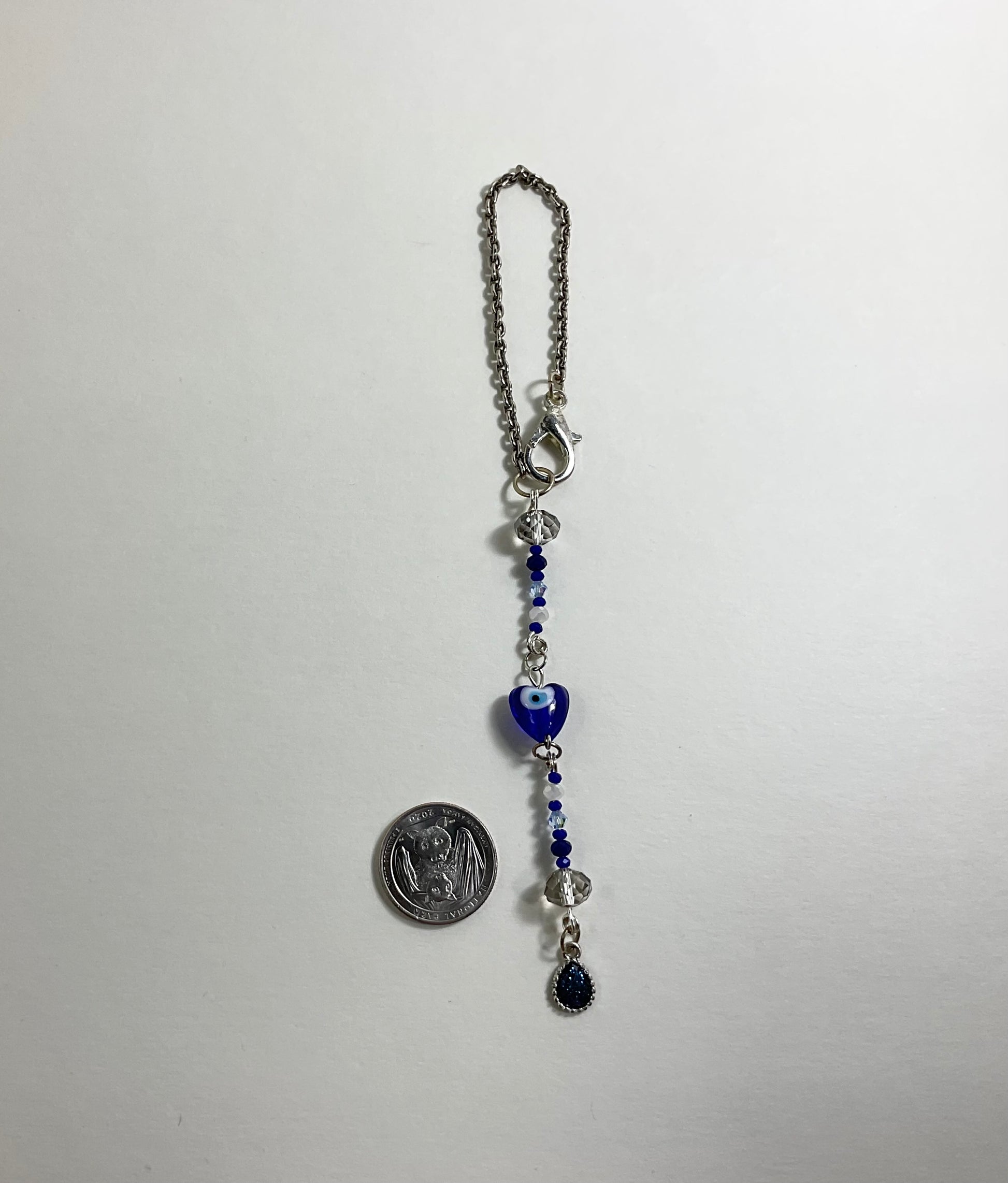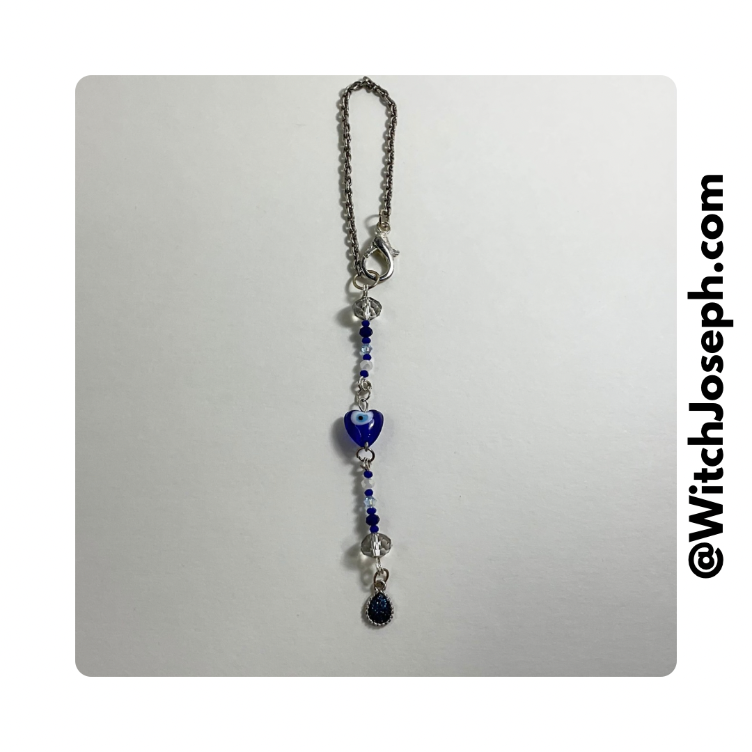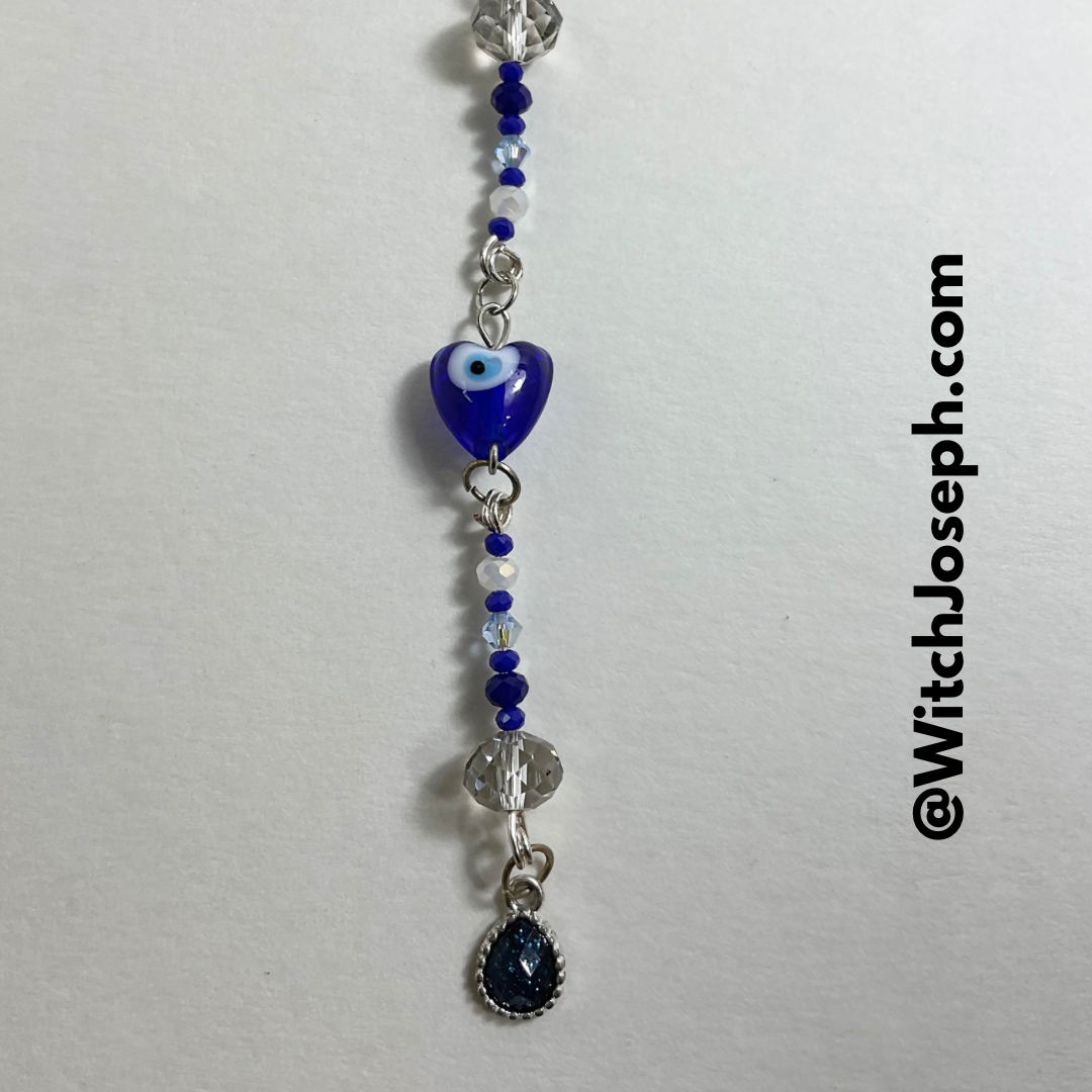 A simple, yet gorgeous Nazar Blue Sun Catcher, accented with vintage crystal beads, with lobster clasp…with roots as a protective talisman going back into pre-Abrahamic Paganism.