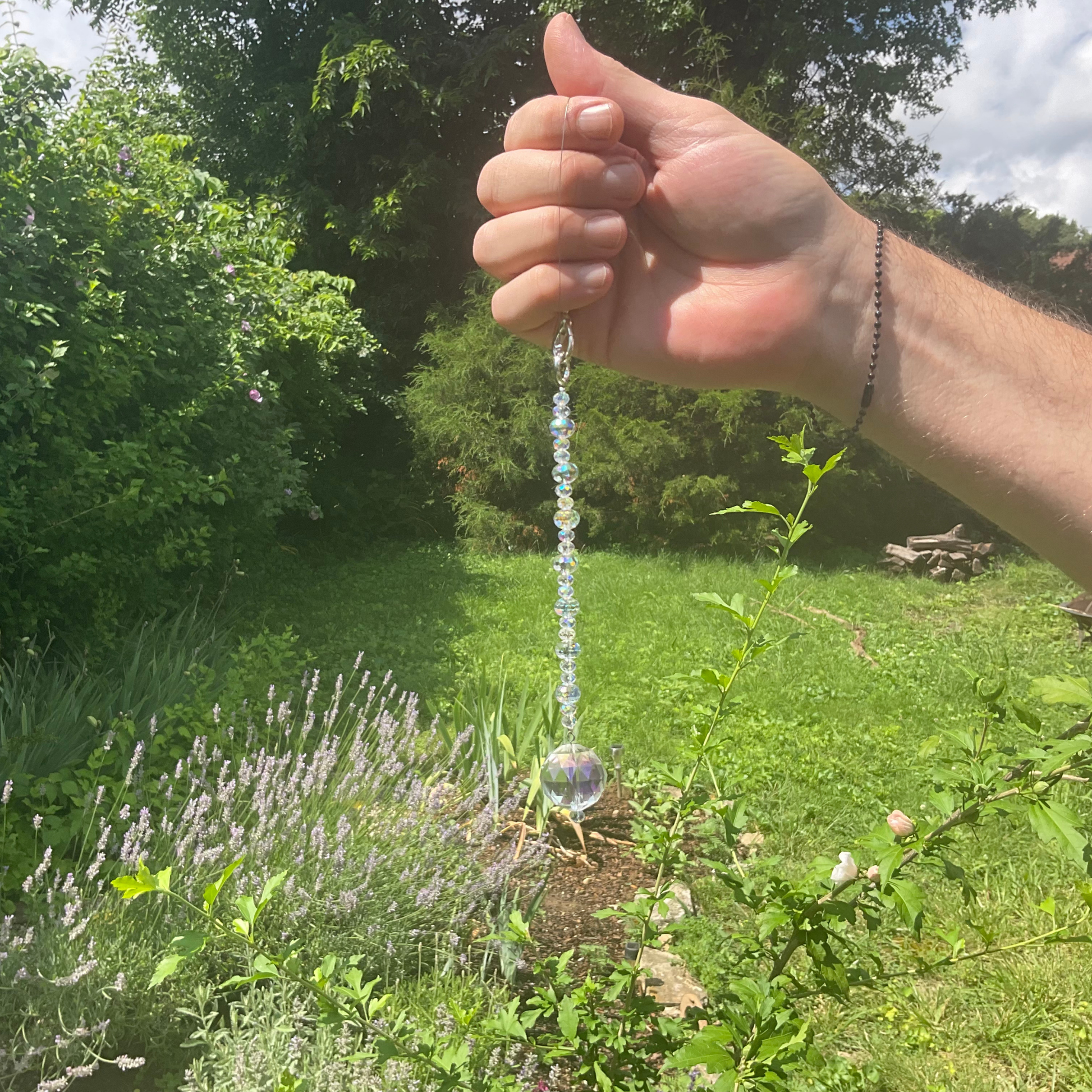 Bring magic, light, and harmony into any room with our handcrafted Crystal Suncatcher. This radiant piece features a shimmering central crystal prism that captures the sunlight, scattering rainbows and positive energy throughout your home. Suspended on a delicate chain and accented with smaller crystal beads, each suncatcher is a beautiful fusion of elegance and spiritual intention.