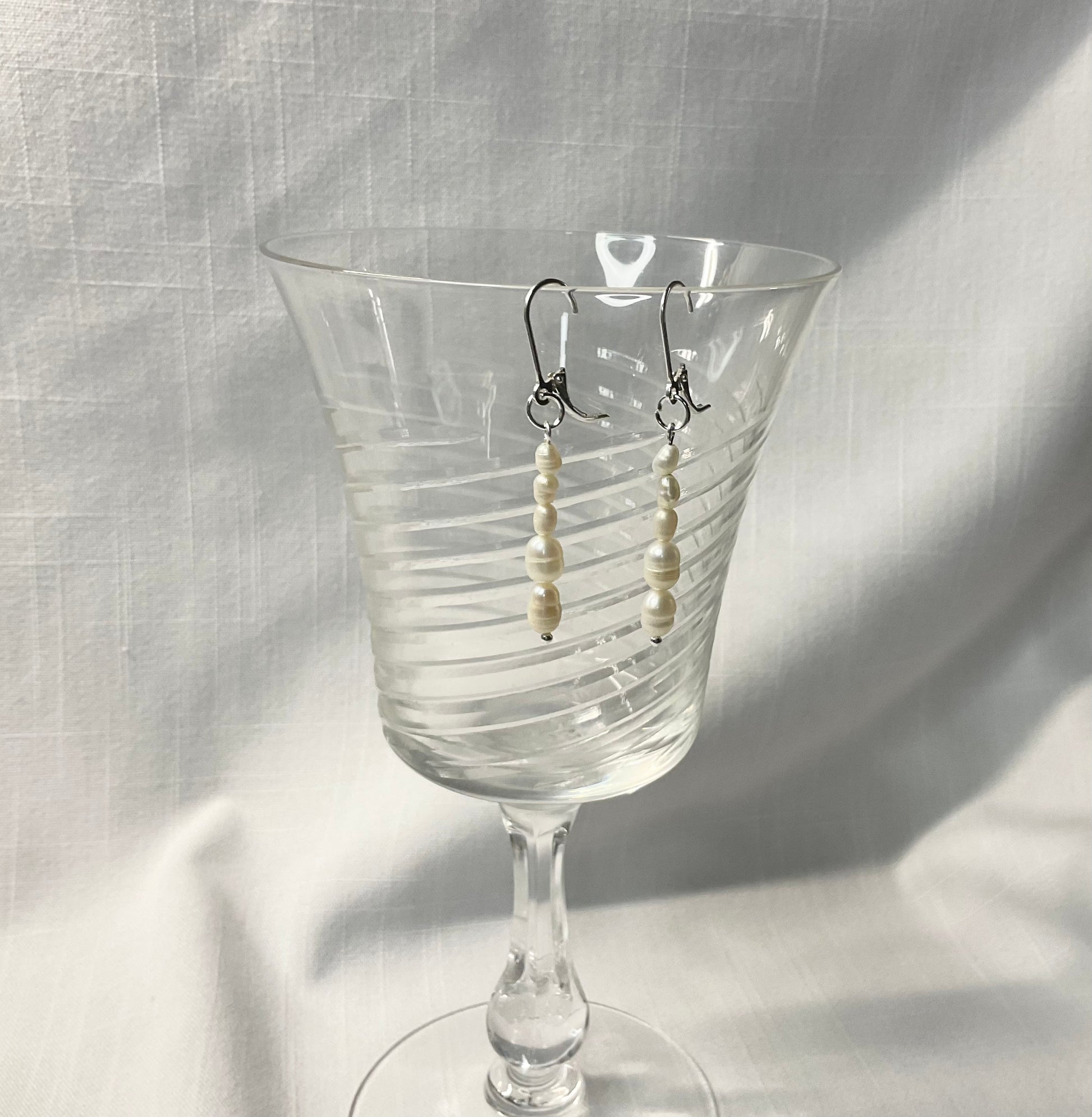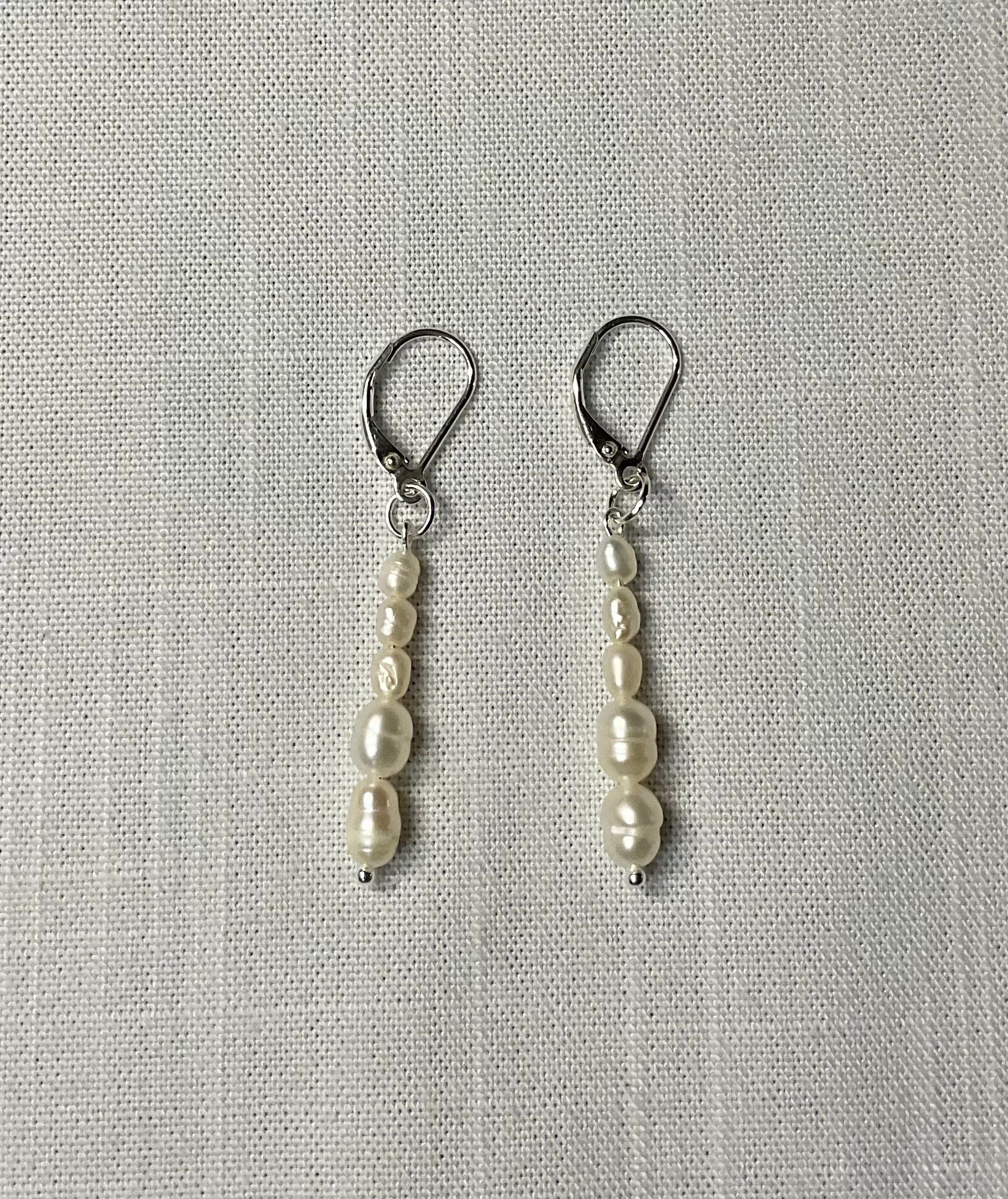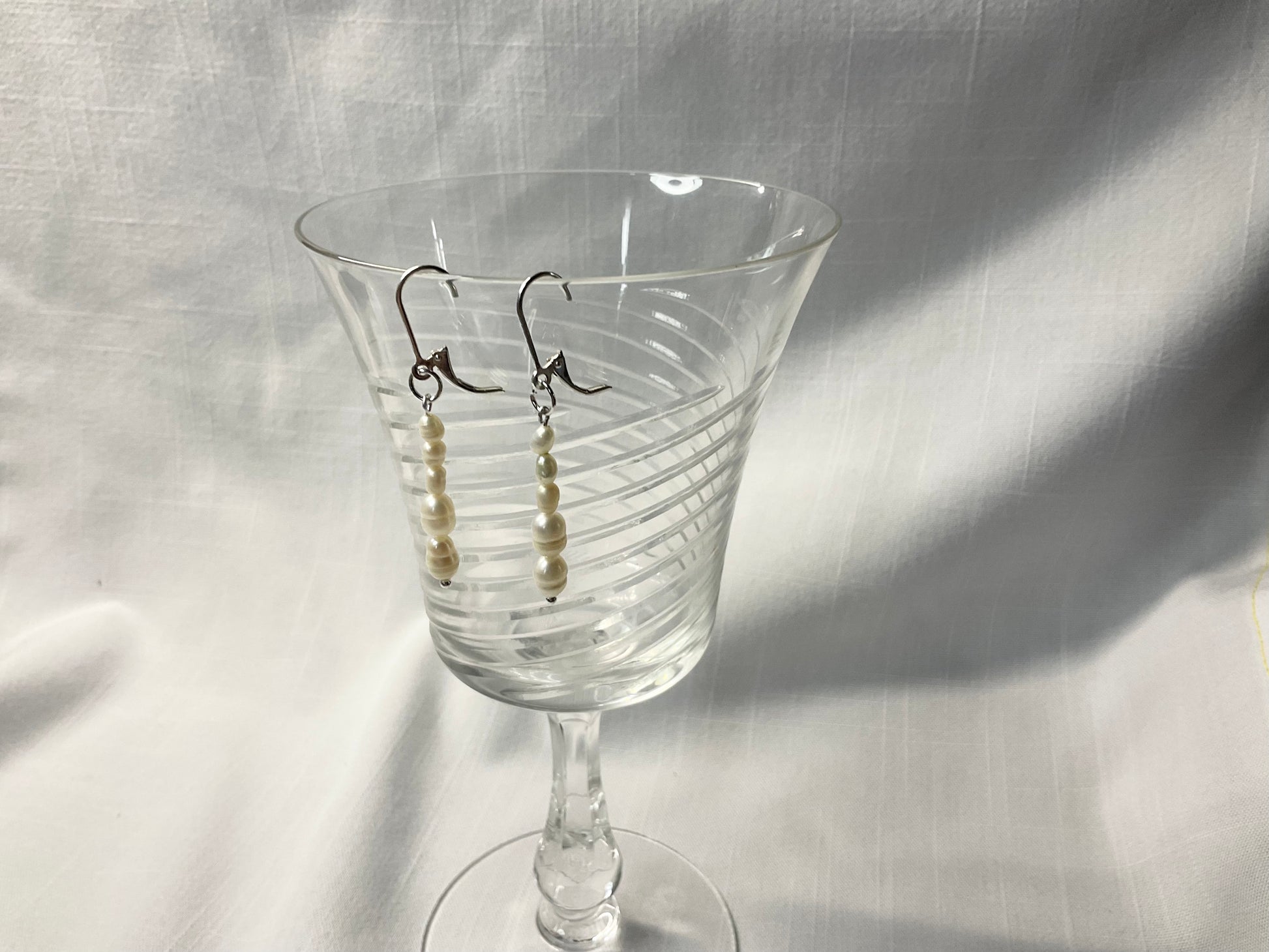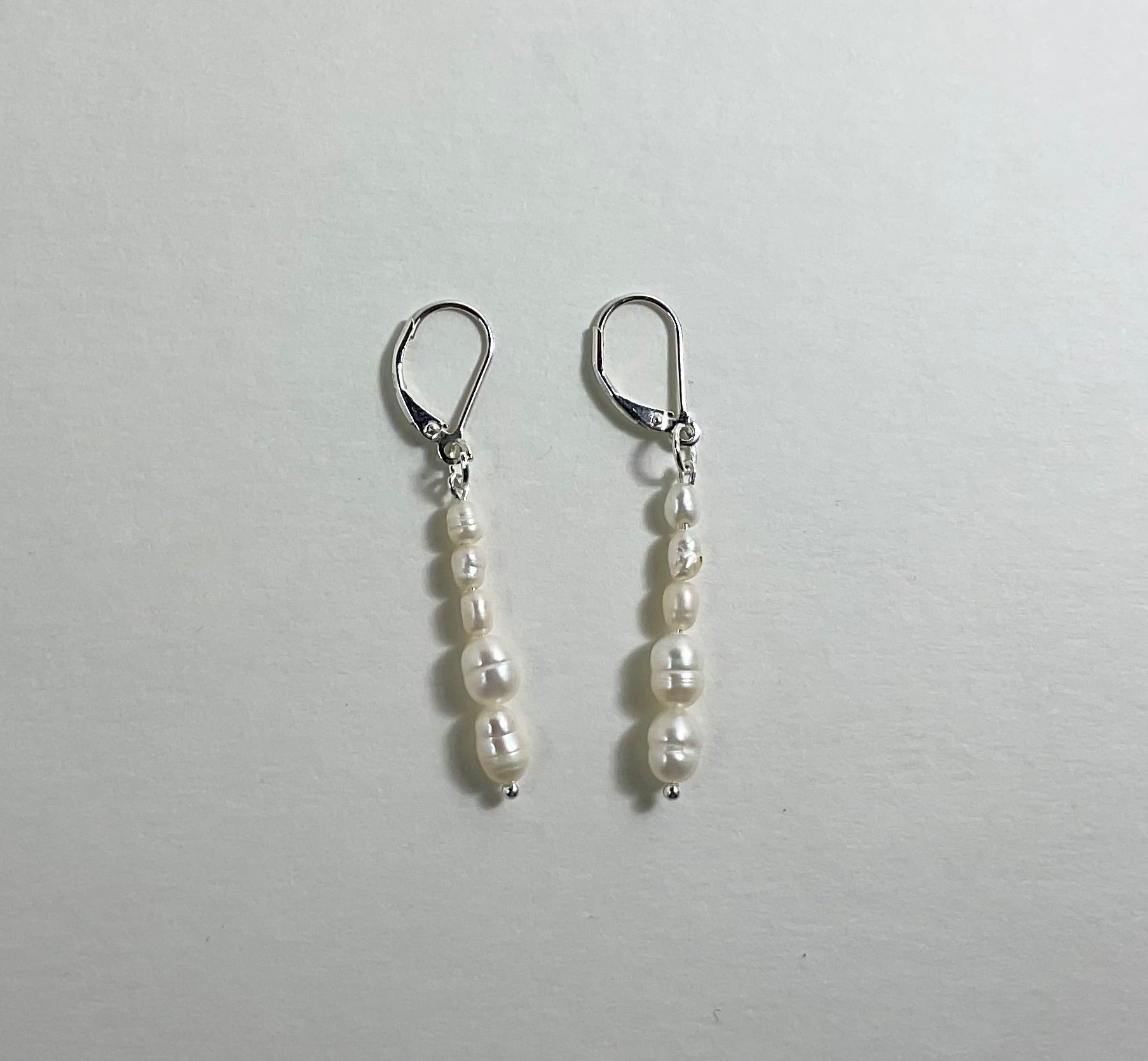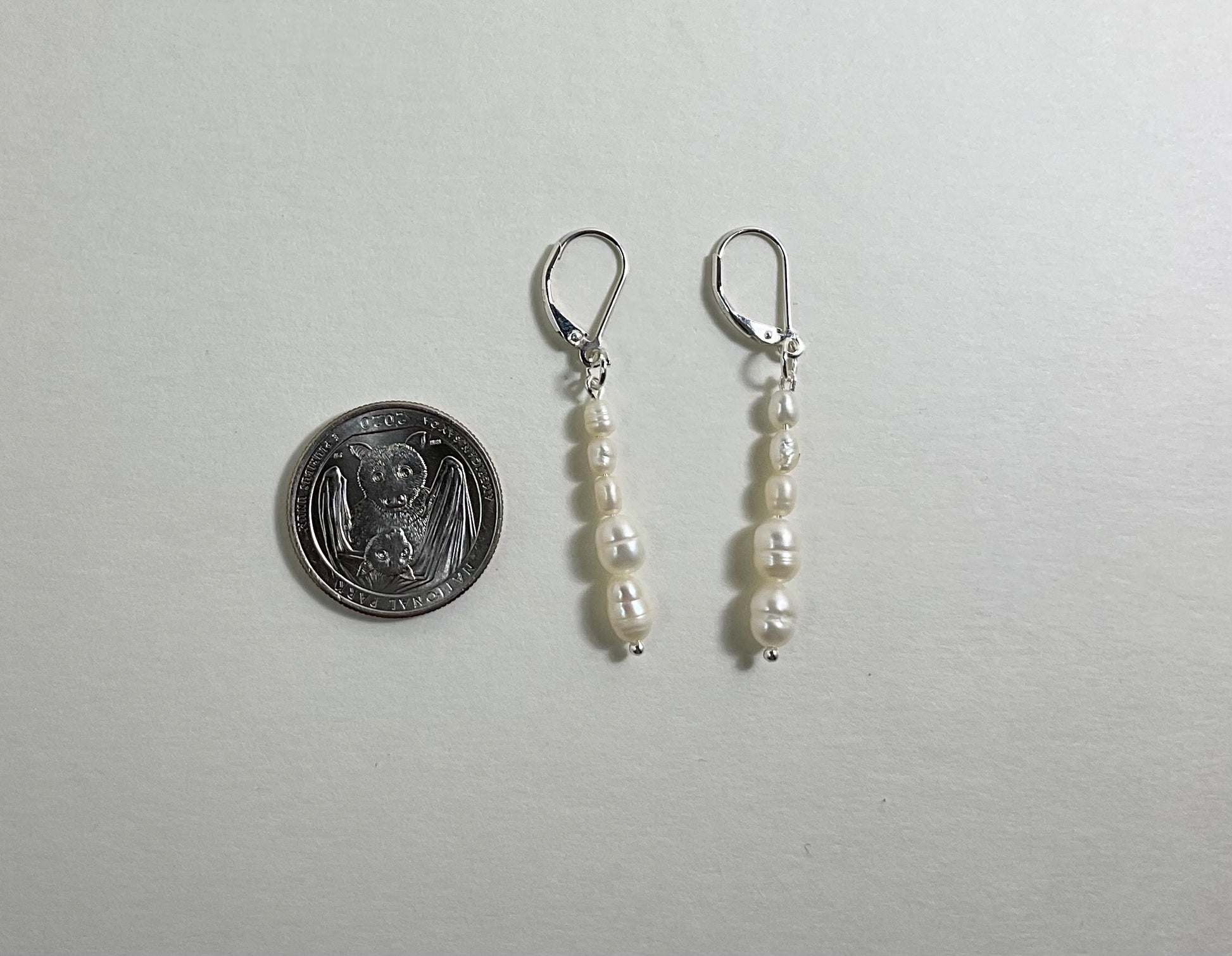 A delicate freshwater pearl dangle earring…with Gorgeous Pearl Beads (2mm and 4mm) on .925 sterling silver French lever earring (all metal components are .925 sterling silver) whole earring hangs approximately 2”)