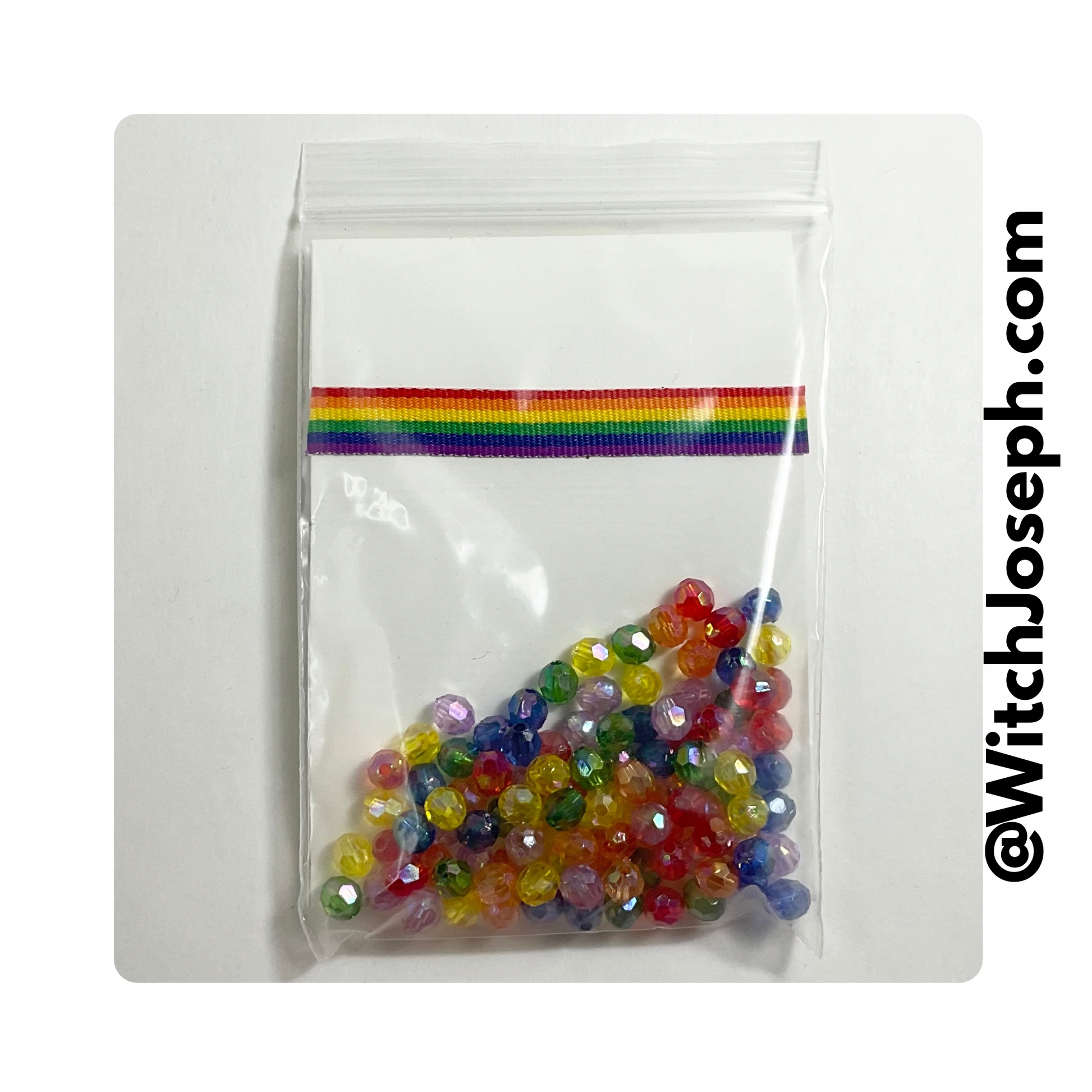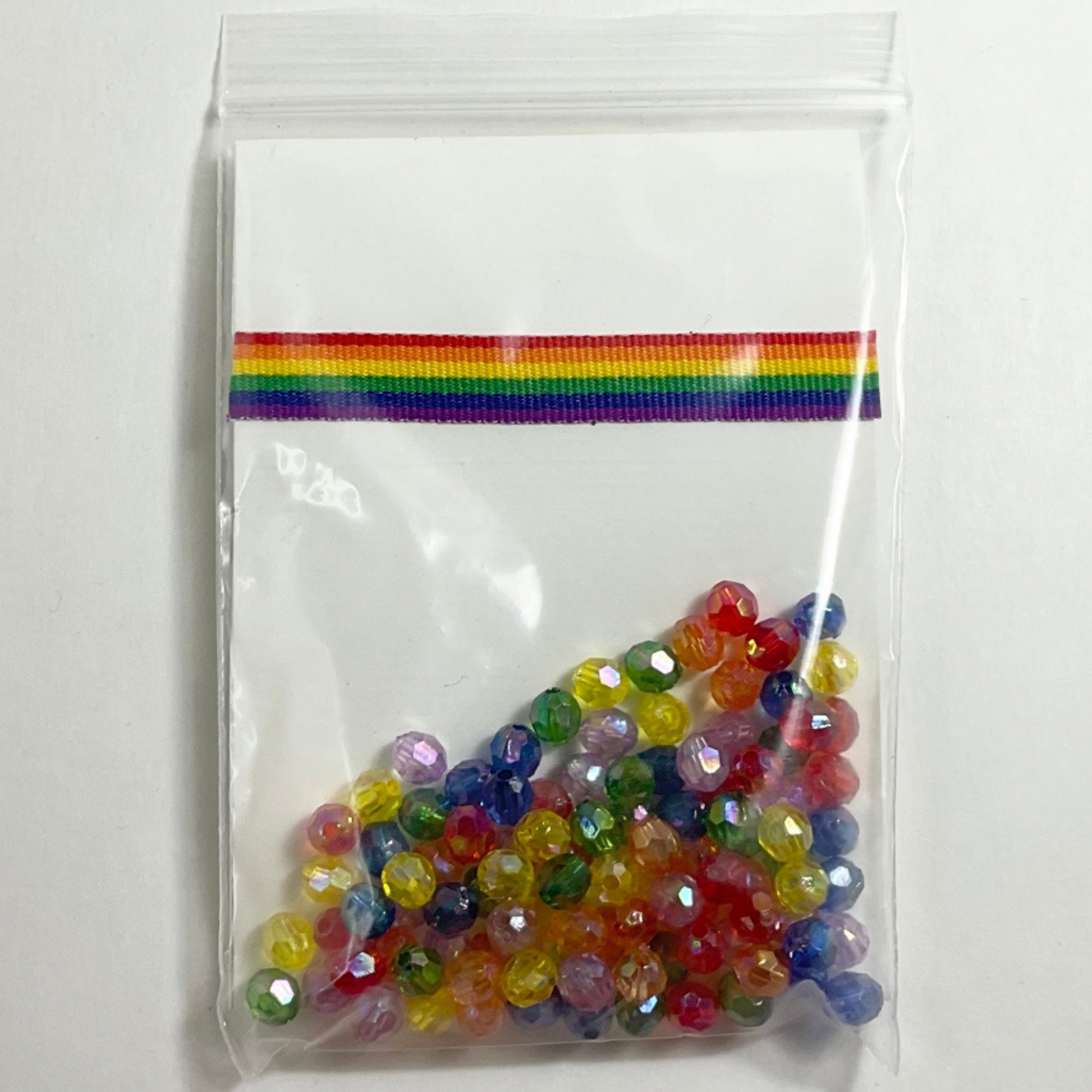 This charming kit contains supplies to make at least 2 gorgeous rainbow stretch bracelets of your design (depending on size)…Show your Pride and your Creativity with this easy to use bracelet kit. There are 100 plastic rainbow beads (they are plastic but pretty…and how they glisten in the light)…kit also includes 3 12 inch pieces of stretch cord and instructions.