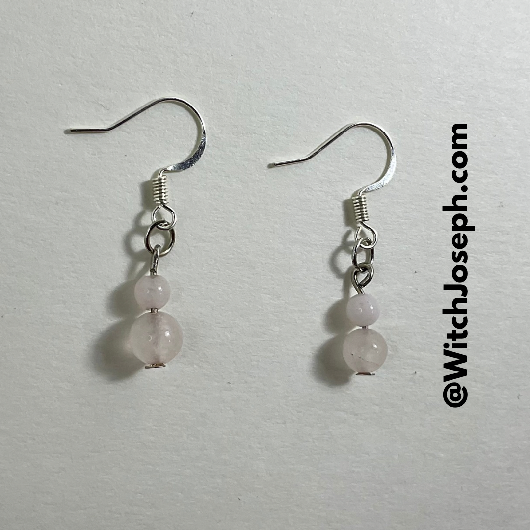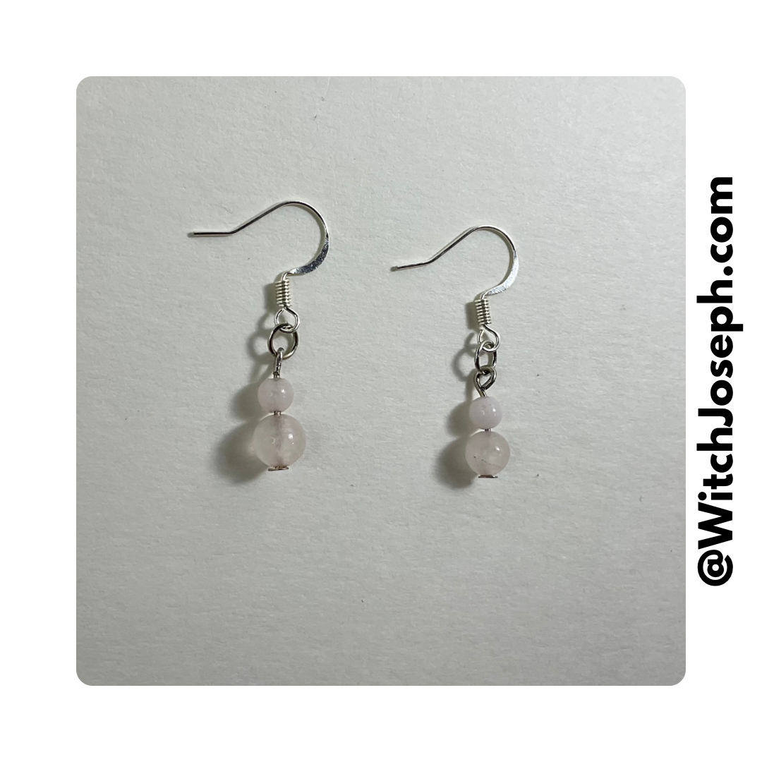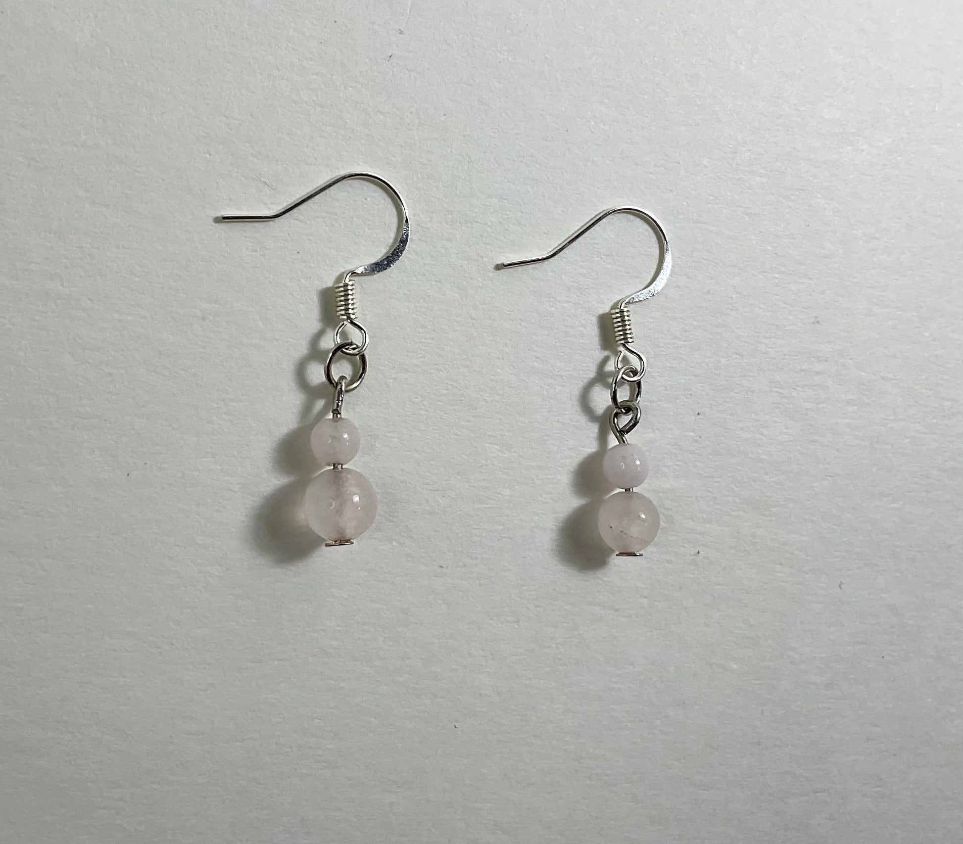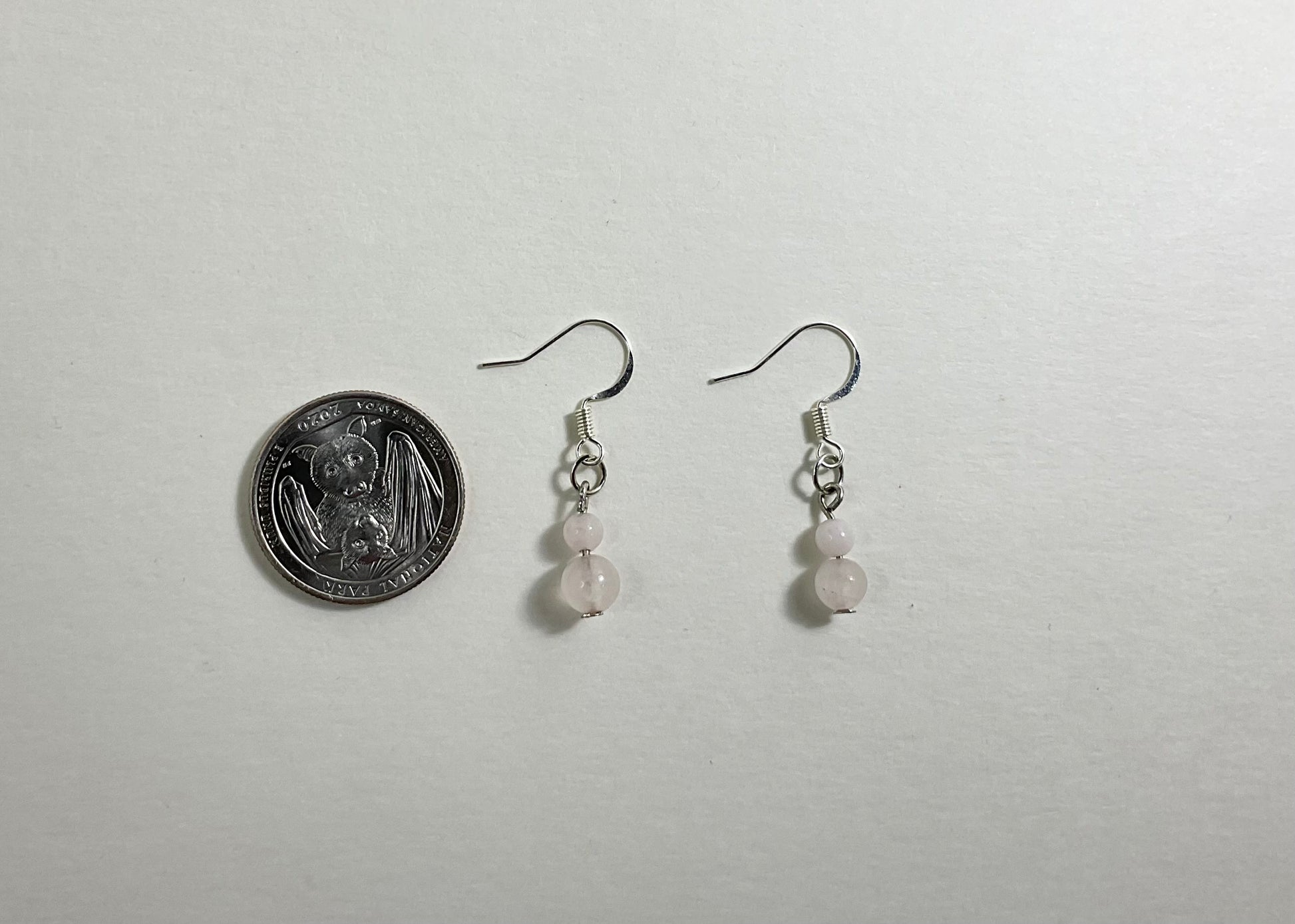 A delicate Rose Quartz dangle earring…with 2 Rose Quartz beads (1-4mm and 1-6mm) on stainless steel fish hook style earring…whole earring hangs approximately 1”) SO adorable and cute.