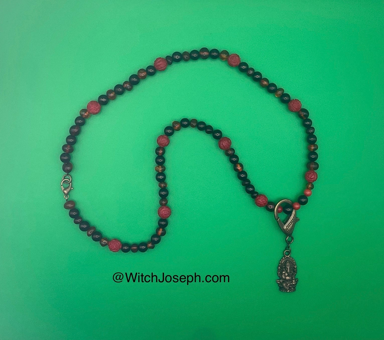 Invoke wisdom, protection, and abundance with our Handmade Amber and Jet Ganesha Talisman, crafted with intention by Witch Joseph. This approximately 19-inch talisman features a bronze tone Ganesha pendant (about 0.75” x 0.25”) suspended from a decorative large bronze tone lobster claw.