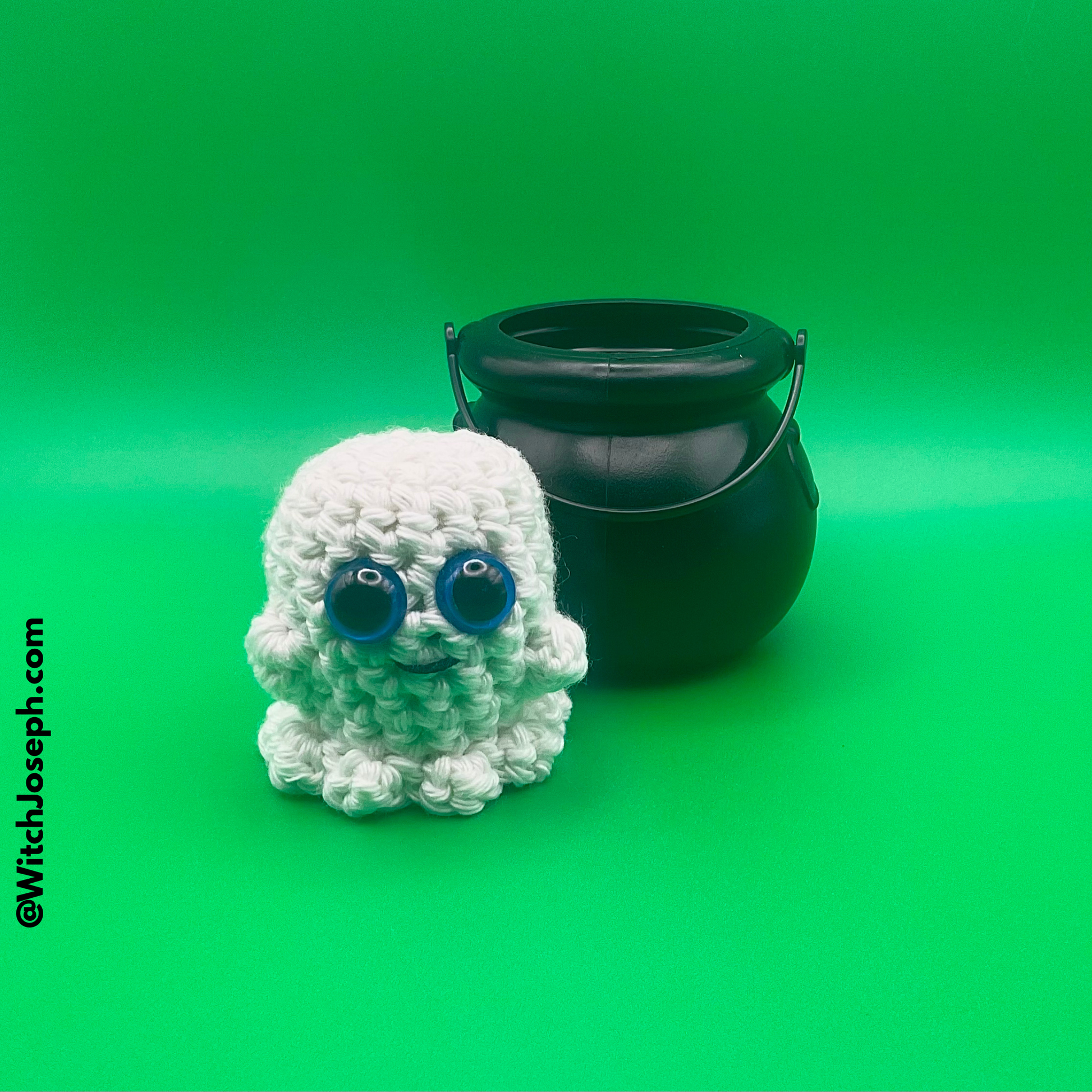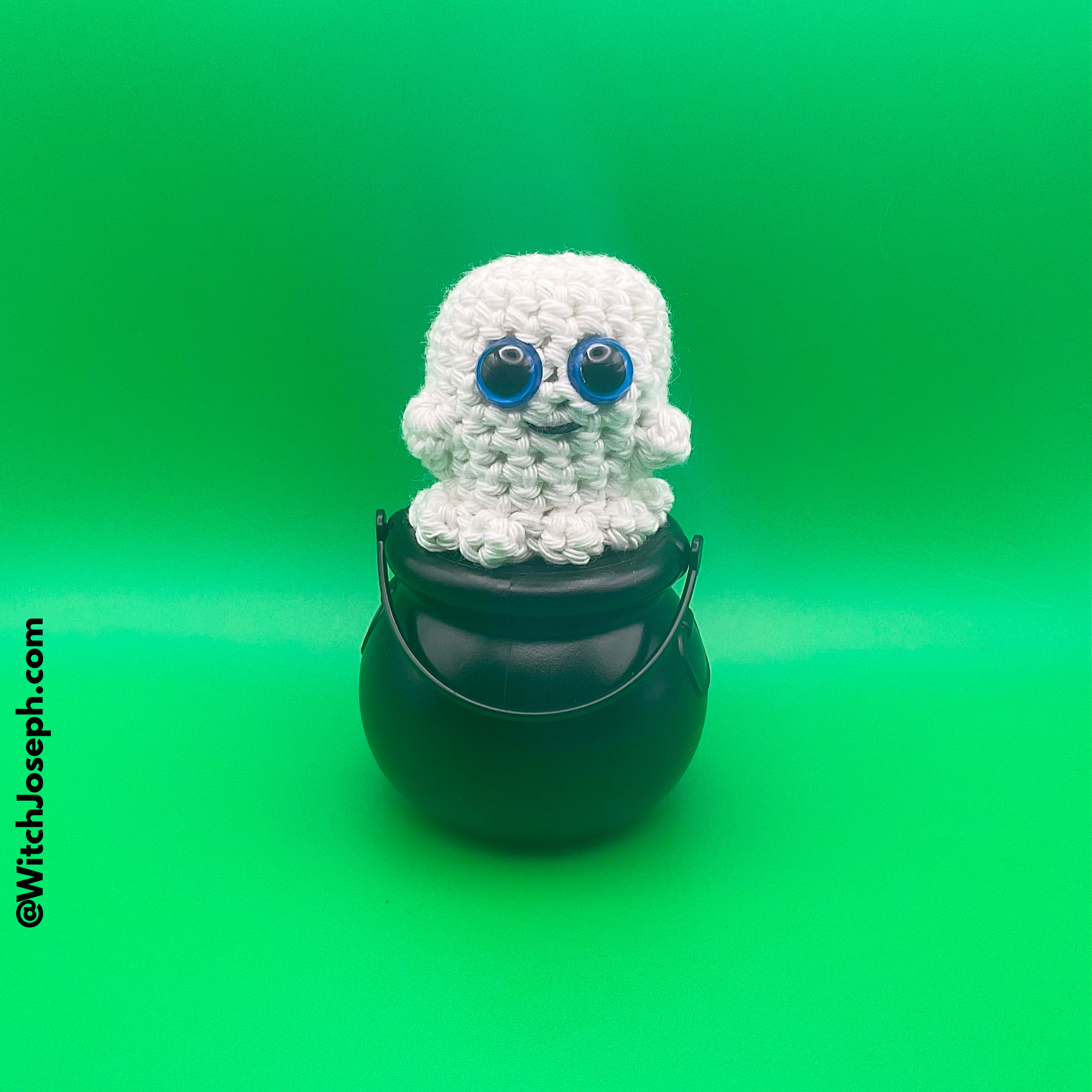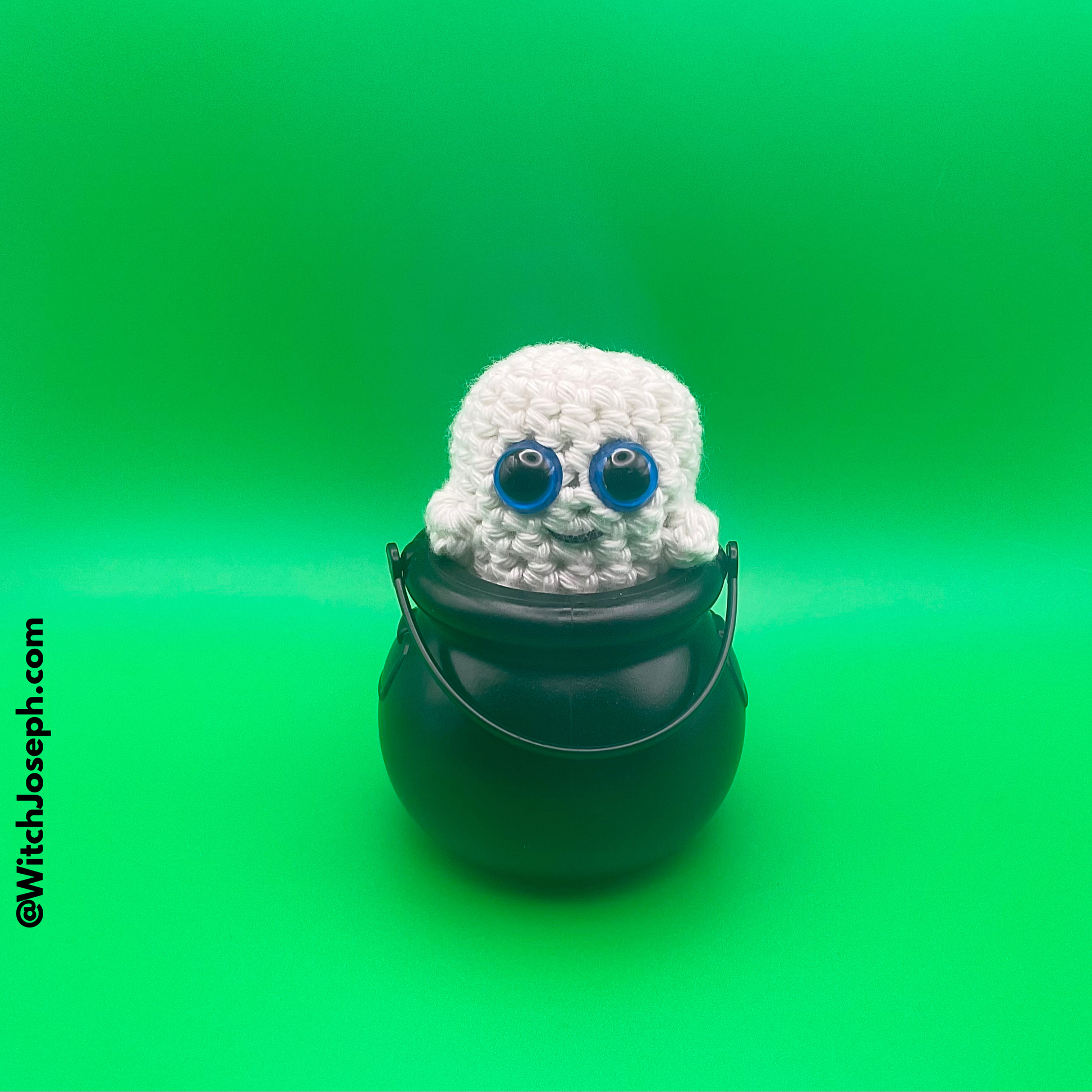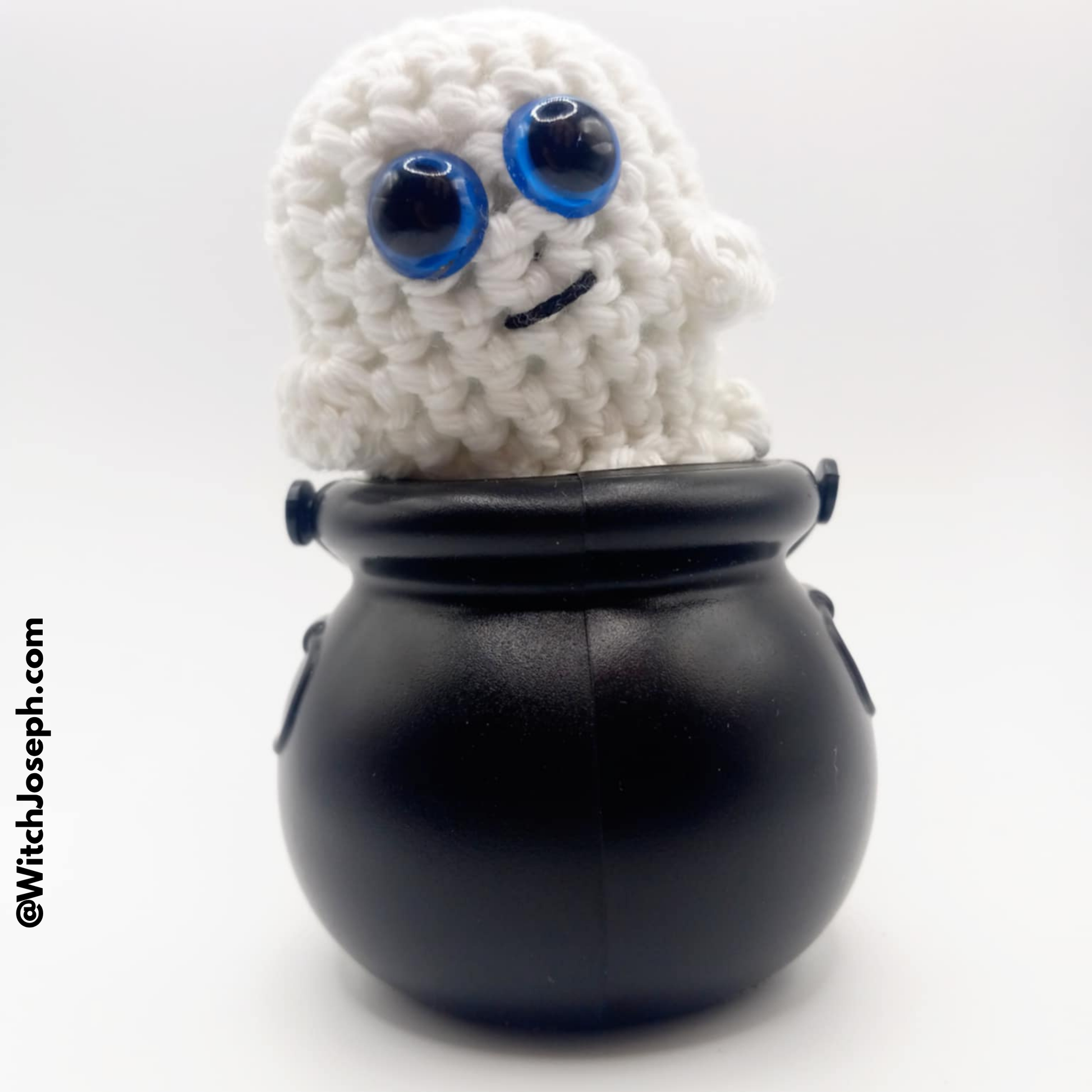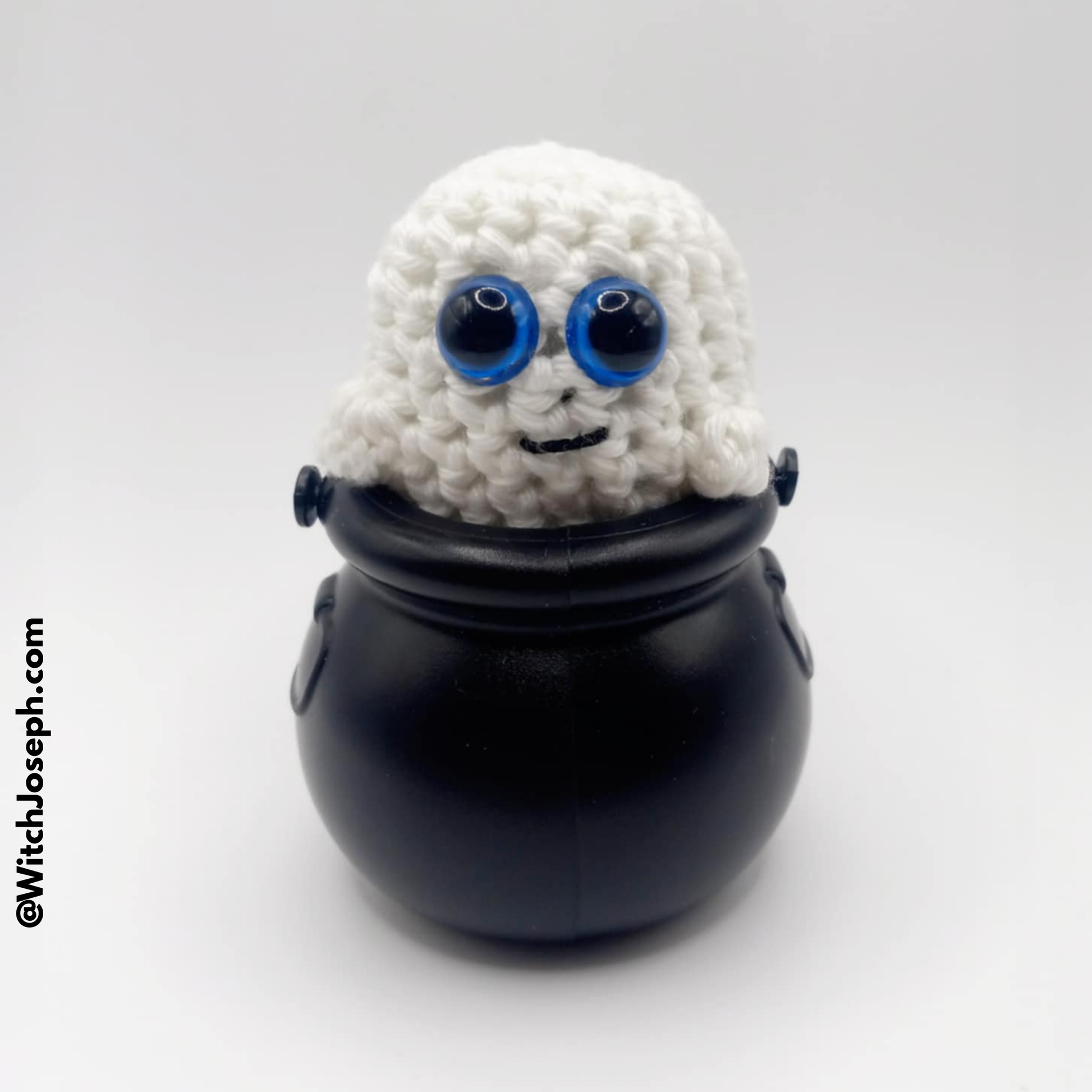Meet Brother Christopher’s delightfully spooky Arugami (aka Amigurumi) Glow-in-the-Dark Ghost in a Cauldron — a handmade spirit that brings a touch of mischief and magic to any altar, desk, or shelf!