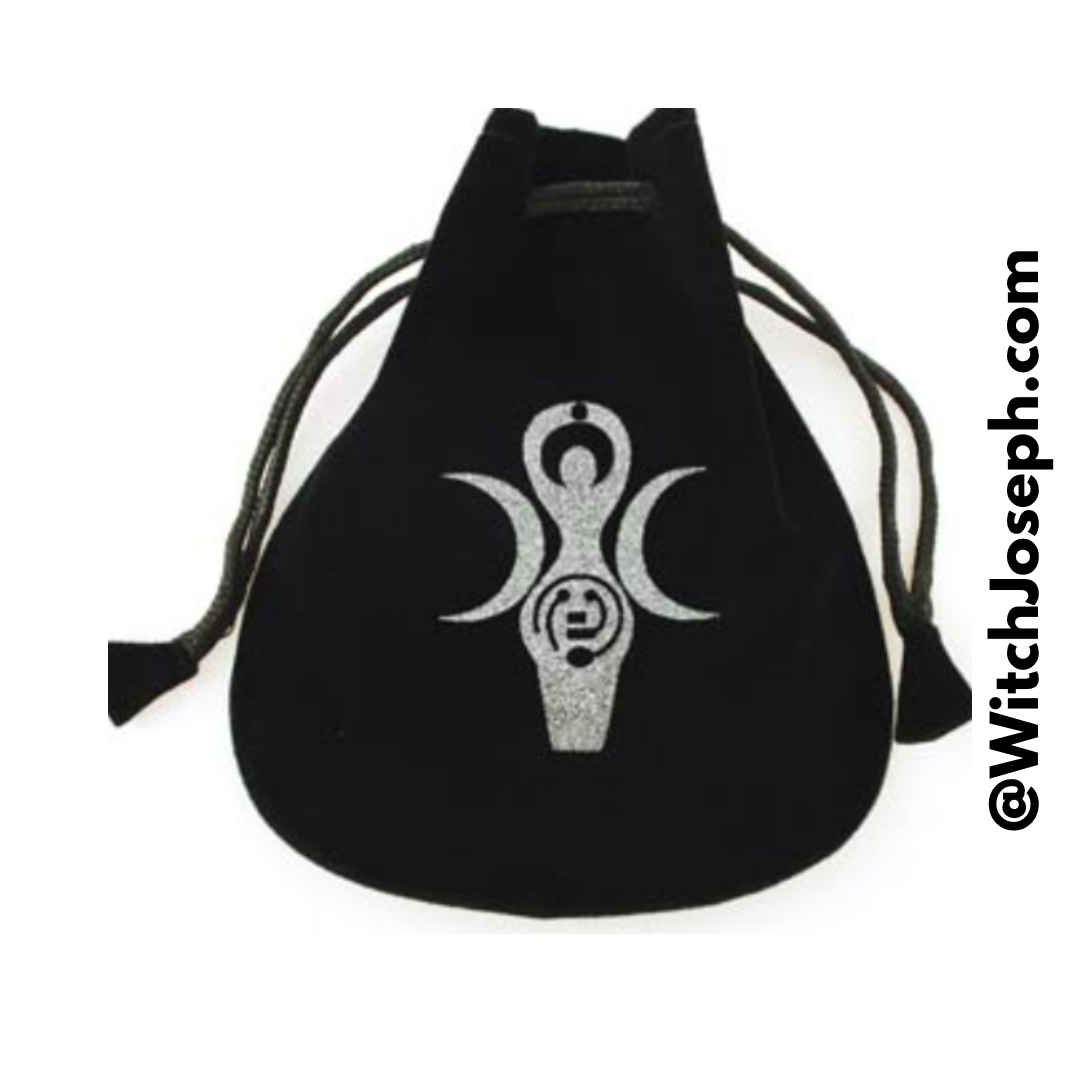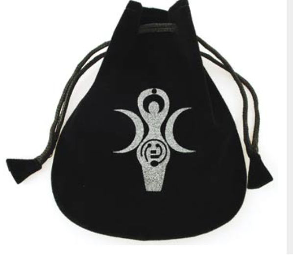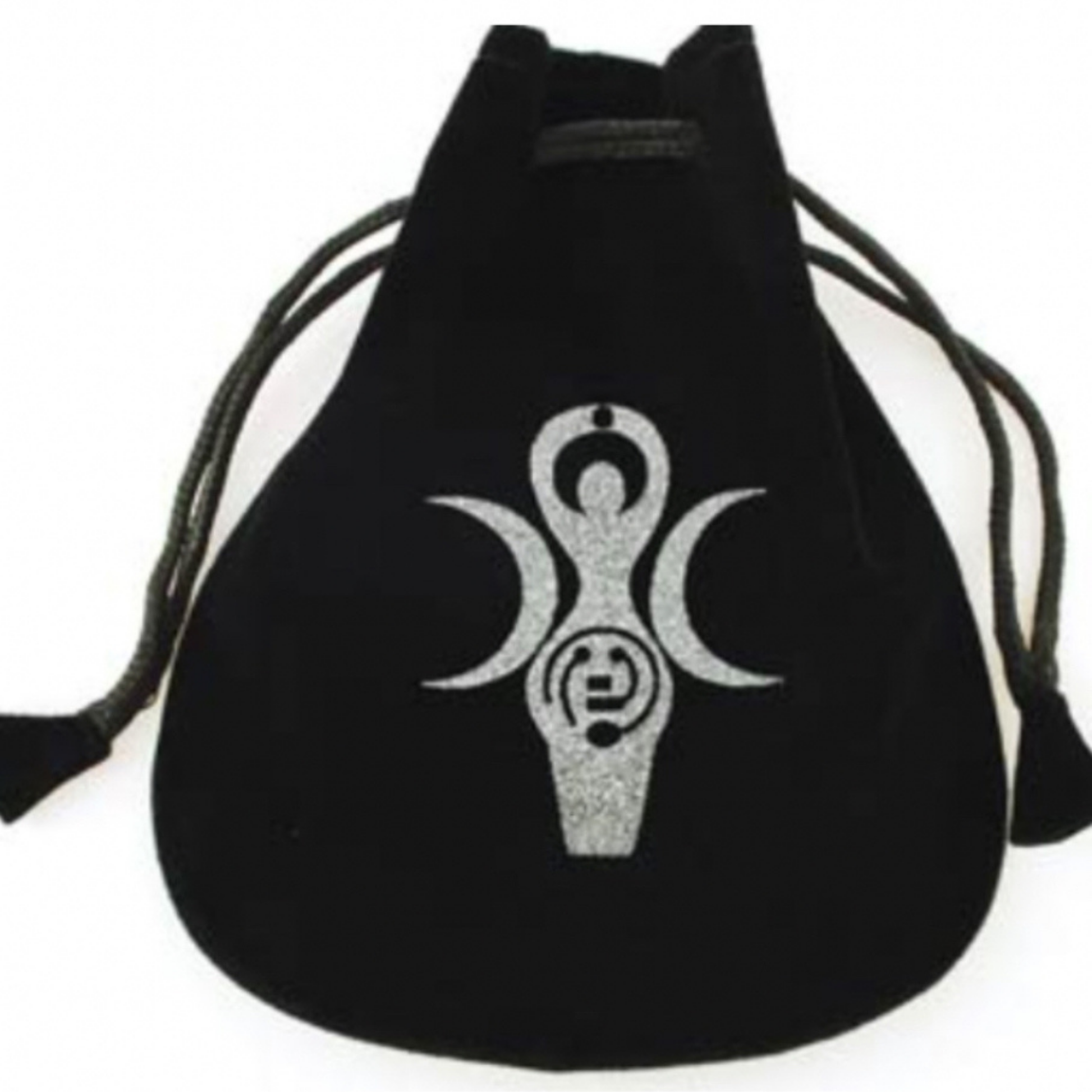 Great for holding small tarot decks, or creating charm bags and gris gris bags, this black velveteen bag displays an image of the Goddess of Earth on both of its sides.