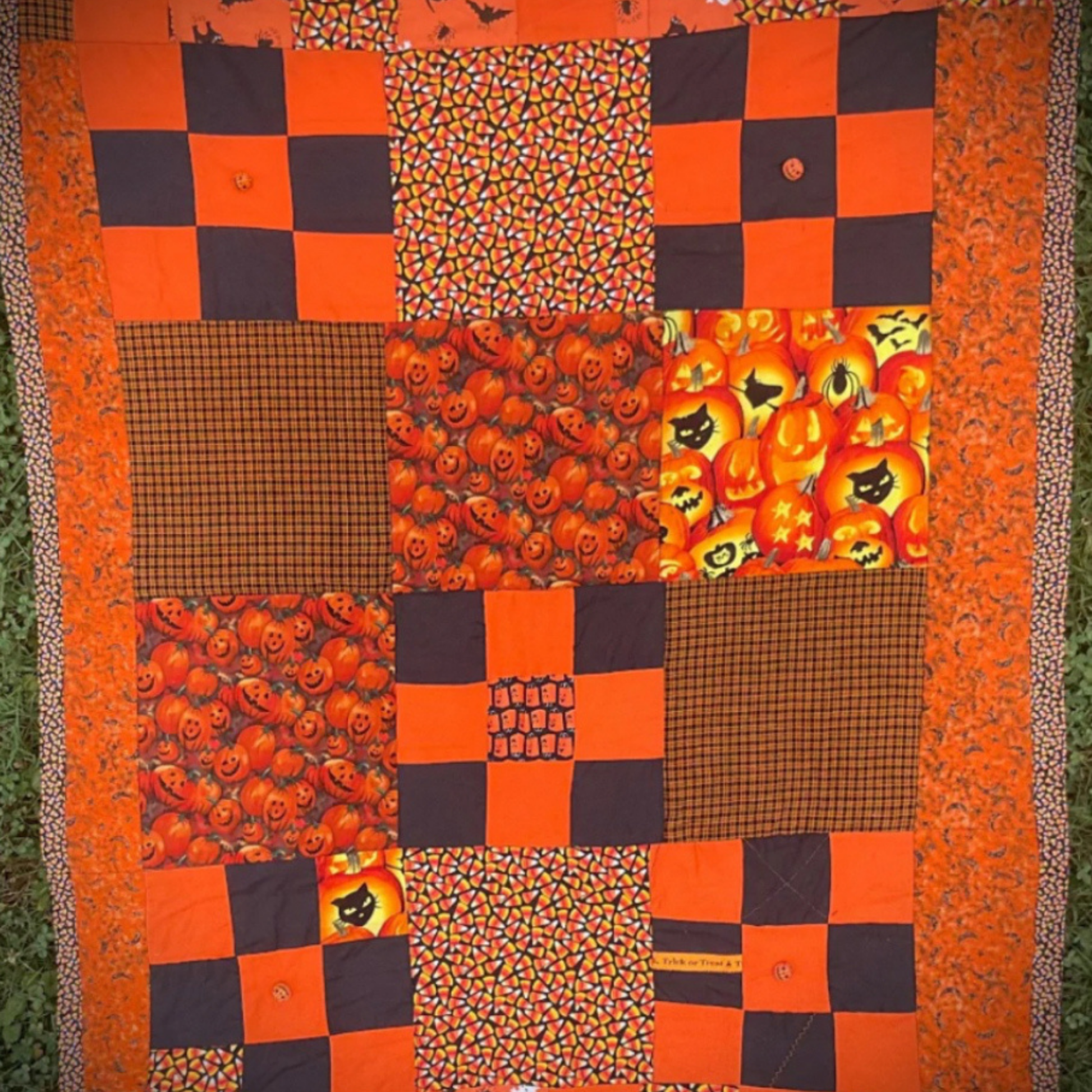 This lovely crazy quilt (44”x34”) is sure to help put you in the holiday spirit of the spookiest time of year…made by Witch Joseph right here at Witch House…a stunning quilted art throw/lap quilt to keep on hand, for snuggling, on those chilly autumn nights when things go bump in the dark.