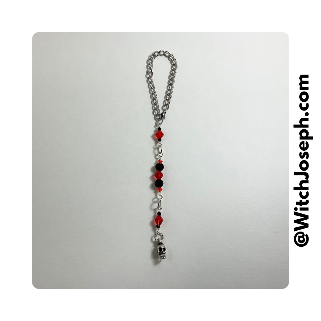 A spooky Sun Catcher charm just in time for the Halloween season. Lovingly handcrafted by Brother Christopher with traditional orange and black light catching beads and finished off with a dangling metal skull charm.