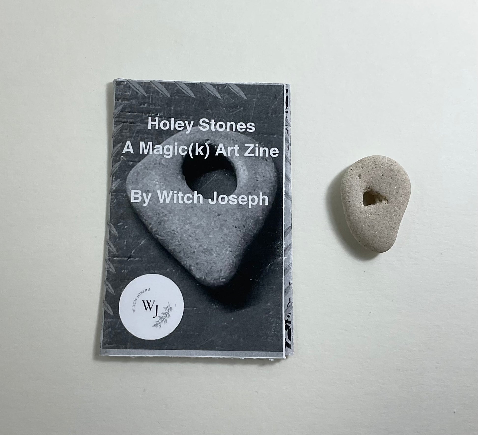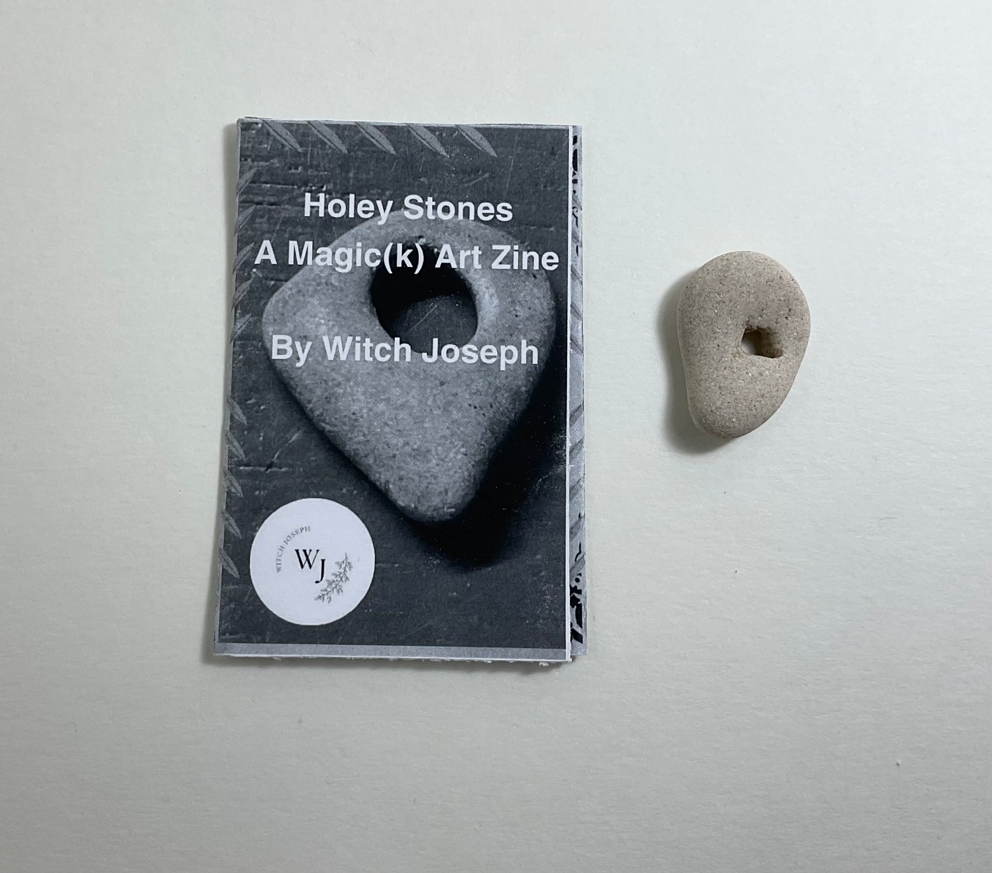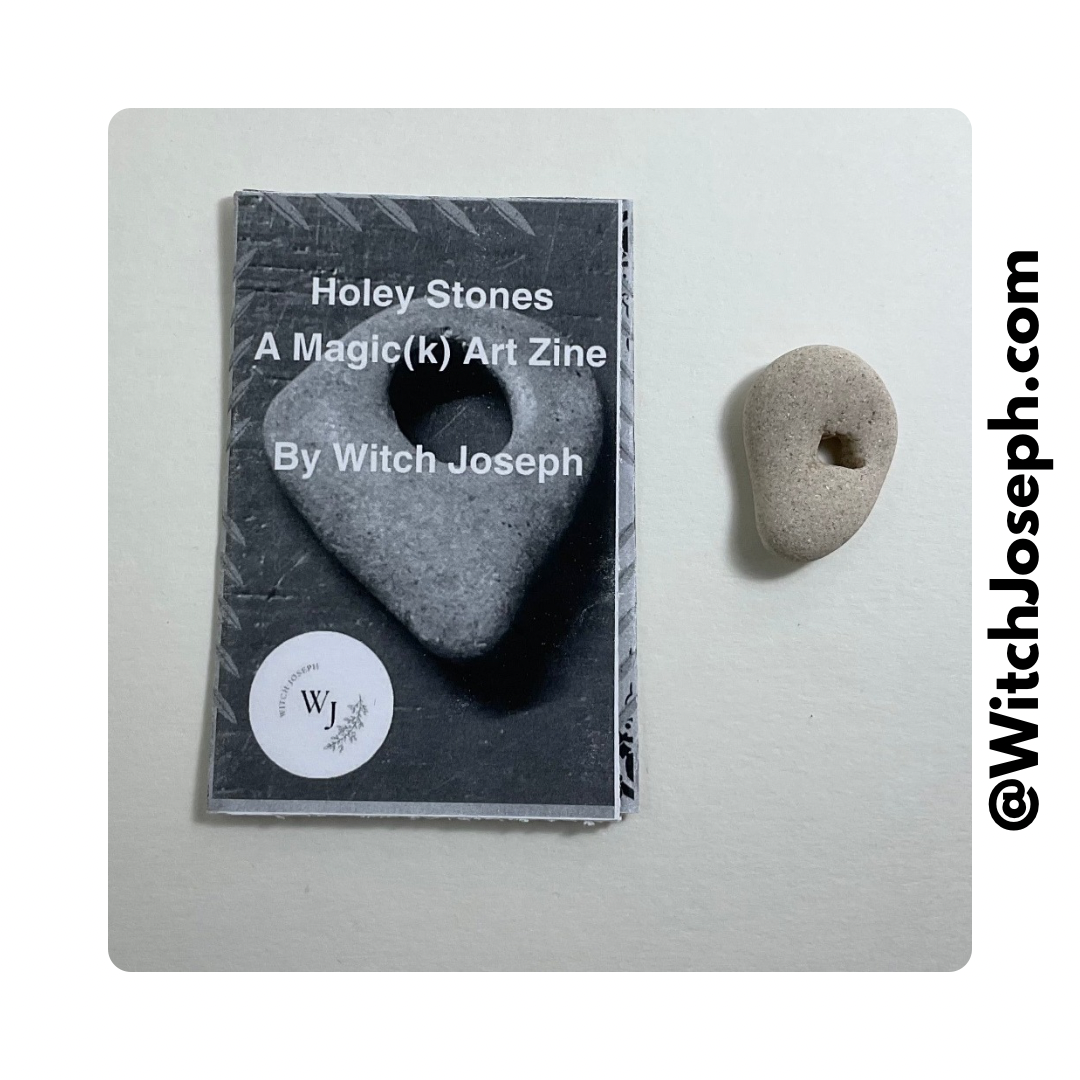 A Holey Stone that was collected lovingly along the shore of the Mediterranean in Israel…approximately 1” x 1”. You will also receive a black and white copy of the Witch Joseph Zine about Holey Stones…chock full of information about them.