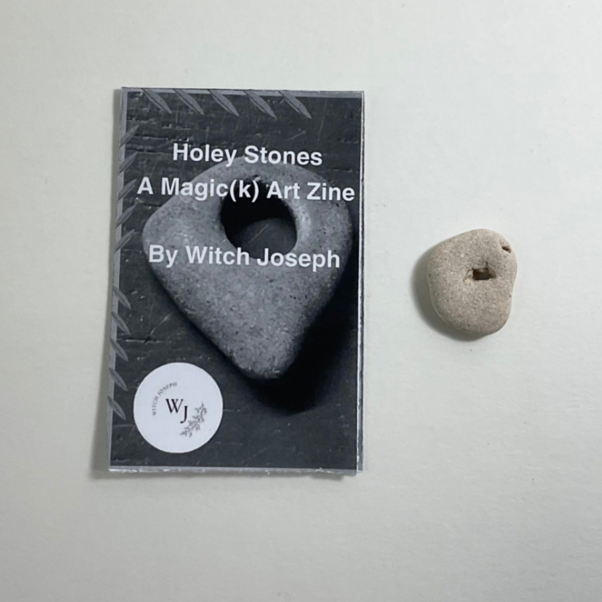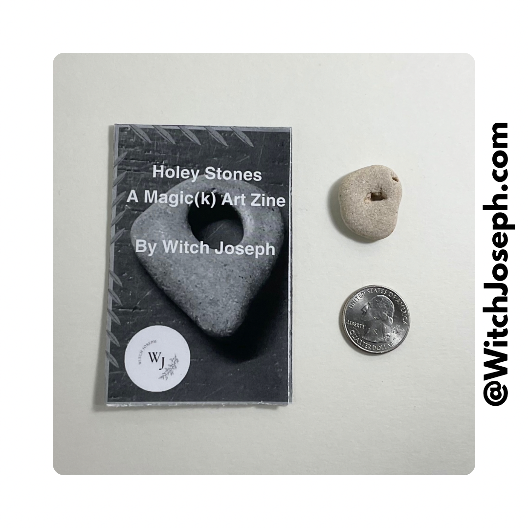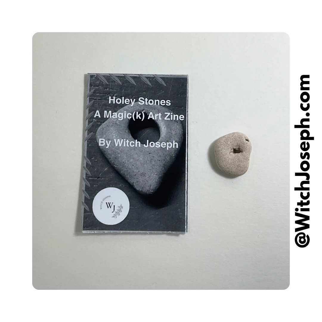 A Holey Stone that was collected lovingly along the shore of the Mediterranean in Israel…approximately 1” x 1”. You will also receive a black and white copy of the Witch Joseph Zine about Holey Stones…chock full of information about them.