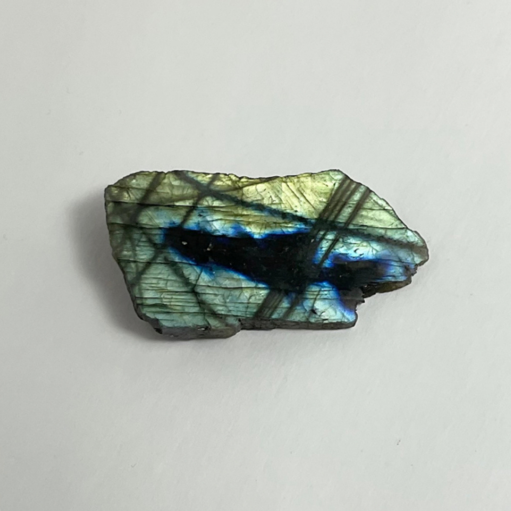 Labradorite is a feldspar mineral that displays brilliant flashes of blue, green yellow and orange in an optical effect when viewed from different angles…which is called labradorescence.