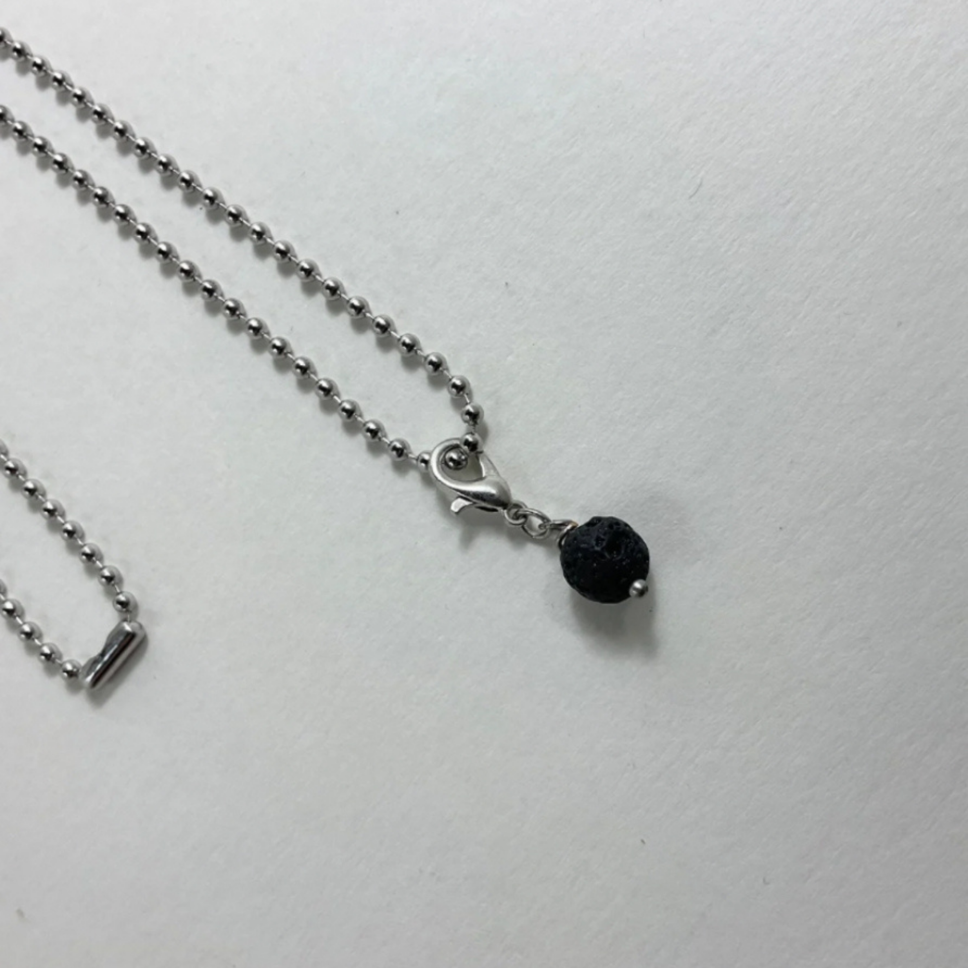 Beautiful Lava Bead Pendant 8mm attached to a silver tone lobster clasp which can easily be used on other items, is a zipper pull ect. Each one comes on 30” silver tone 2.4mm stainless steel ball chain.