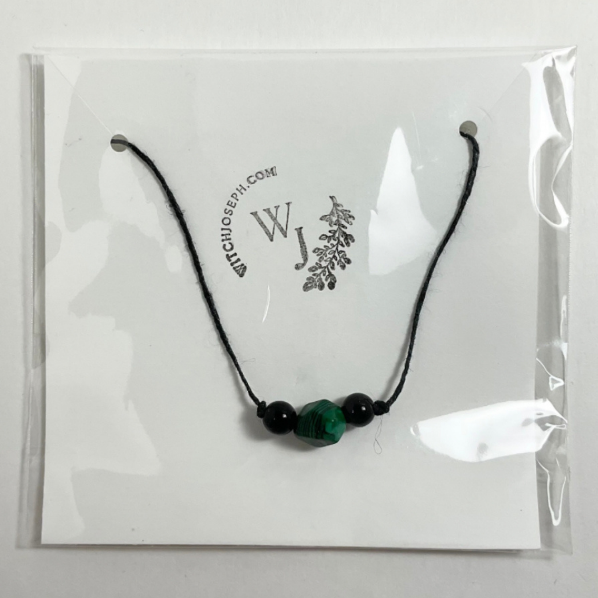 Handmade by Witch Joseph. Metaphysicians believe Malachite to be associated with the Heart chakra, balance and transformation and positive change…and a helper in navigating through changes more peacefully.