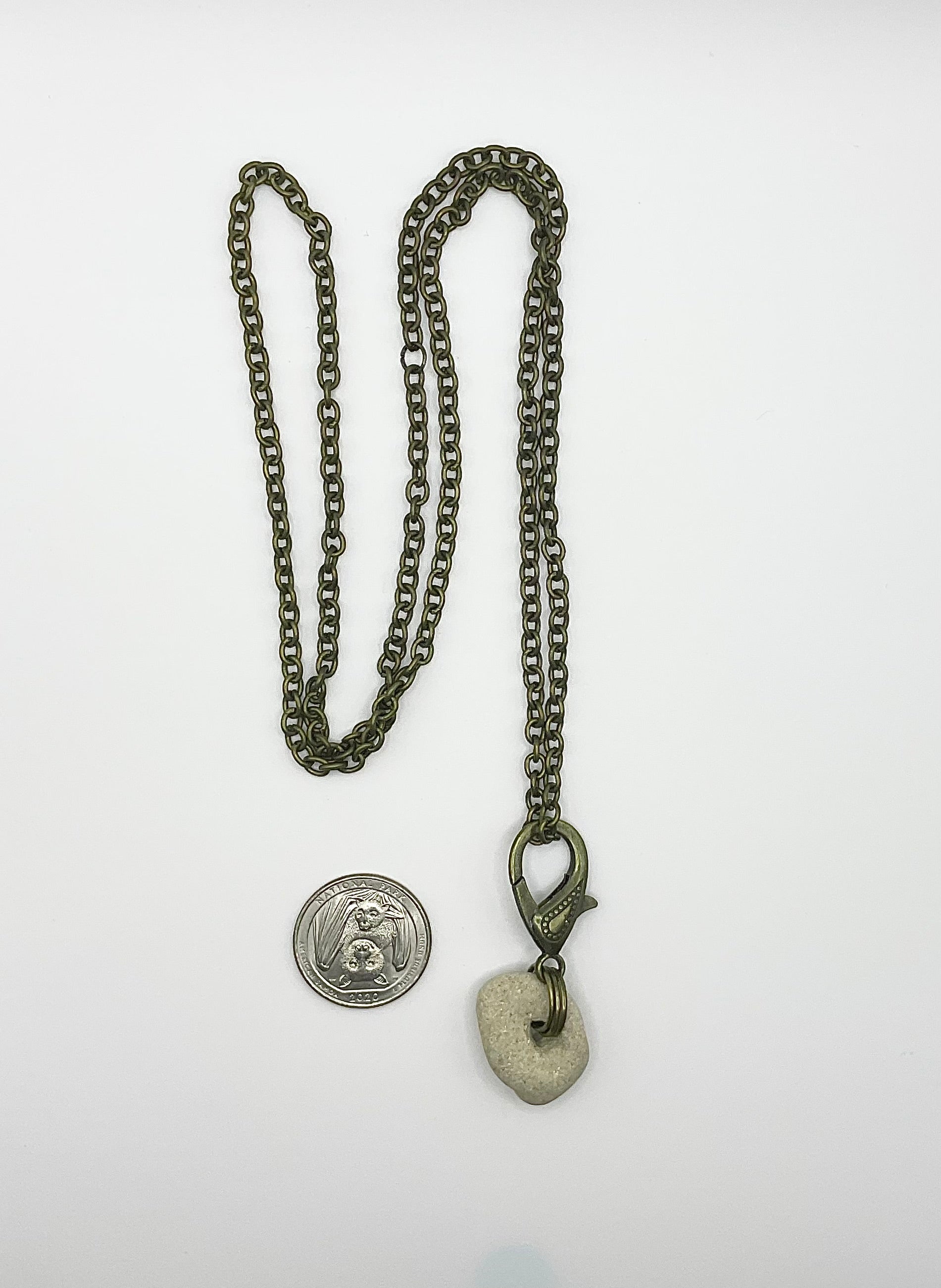 Each comes on a bronze tone metal alloy chain measuring approximately 25”long (matinee length). Each comes carefully packaged by hand and gift ready.