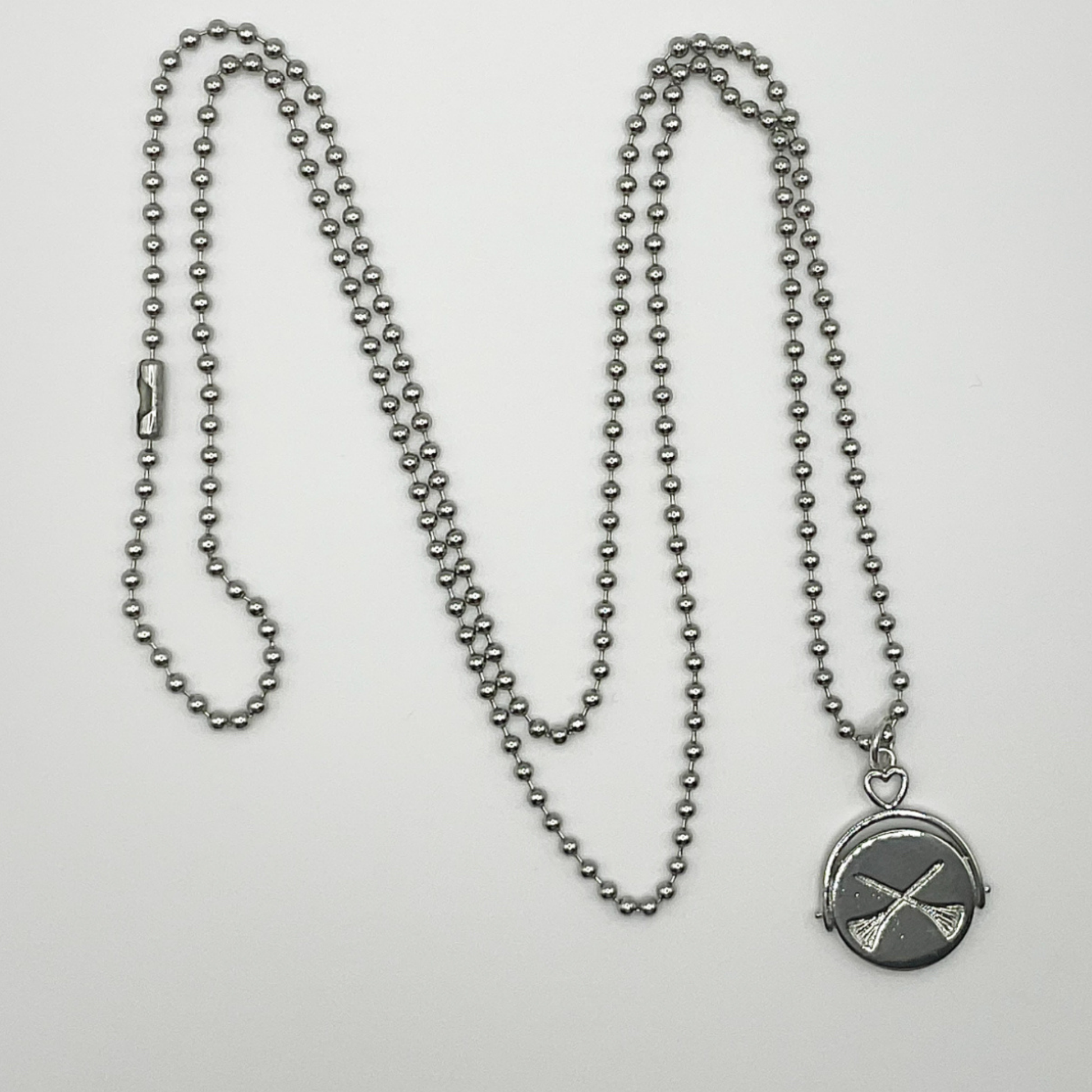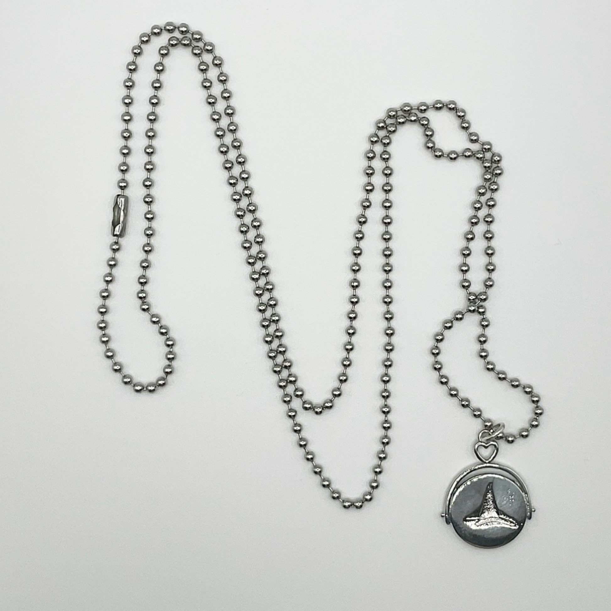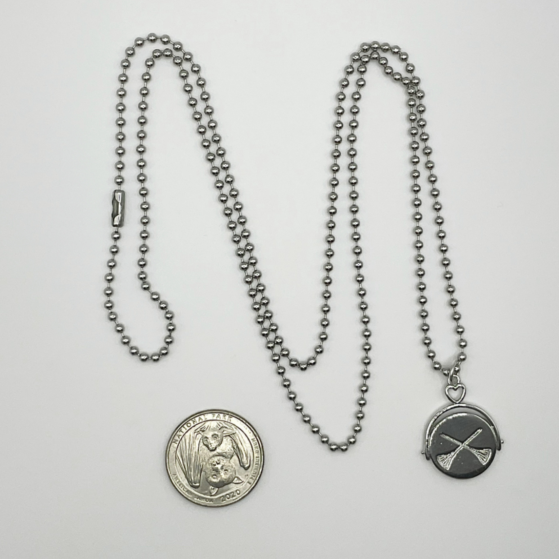 Metal Pendant is 26.3mm x 20.7mm…Comes with a 30” 2.4MM silver tone ball chain.