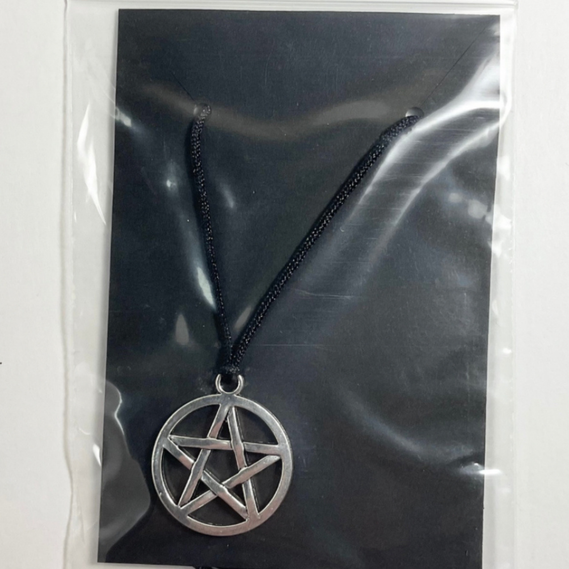Pentagram Pendant in Silver Tone…the Pentagram is a powerful protection symbol, sometimes symbolizing Witchcraft and the Magickal path itself. It is often seen as an elemental symbol with the four elements Earth, Air, Fire and Water in balance and crowned by the element of Spirit or Akasha symbolized by the upper top point….with the circle of protection and wholeness surrounding these…some practitioners see the human form represented by the five pointed star.