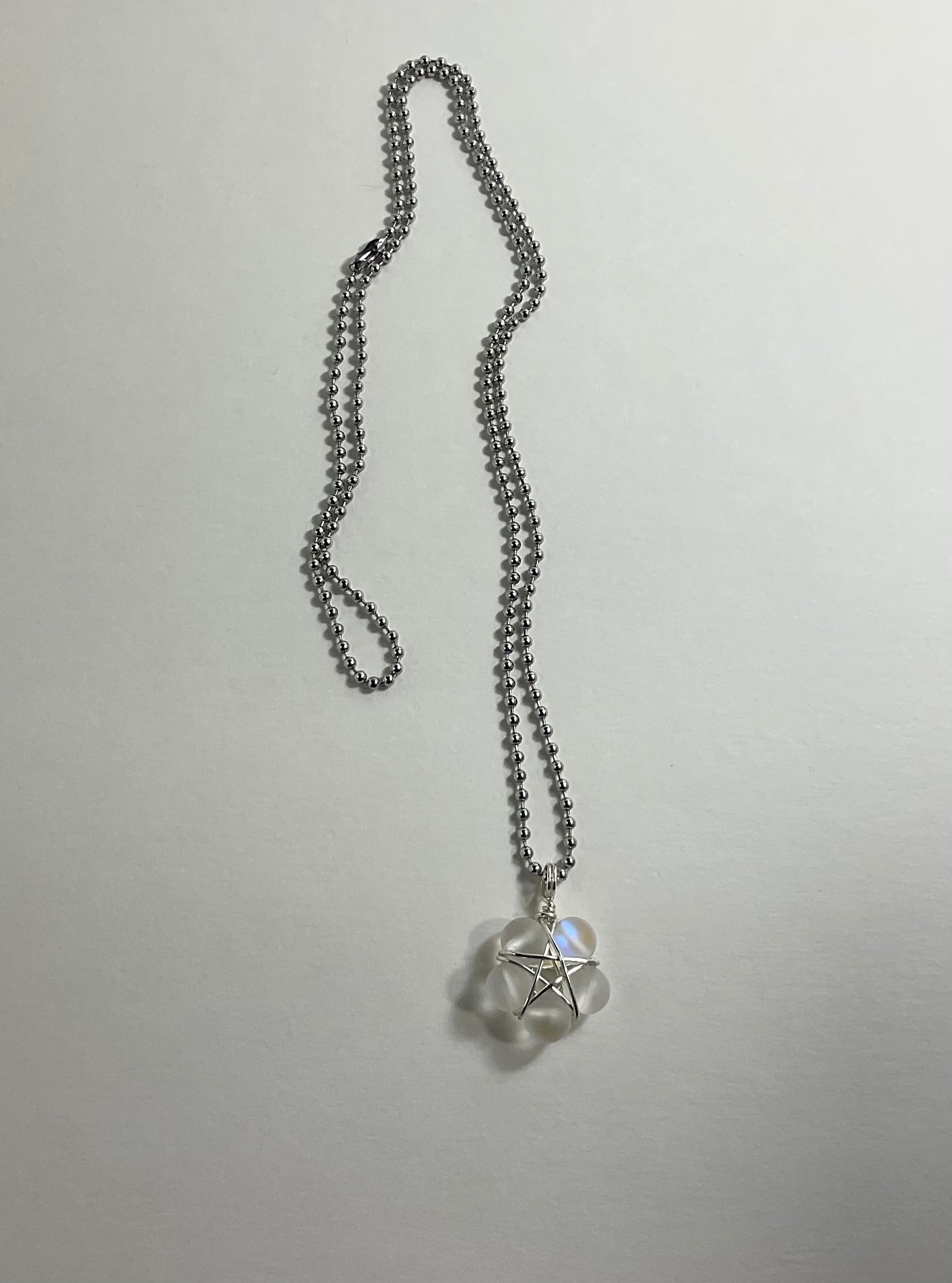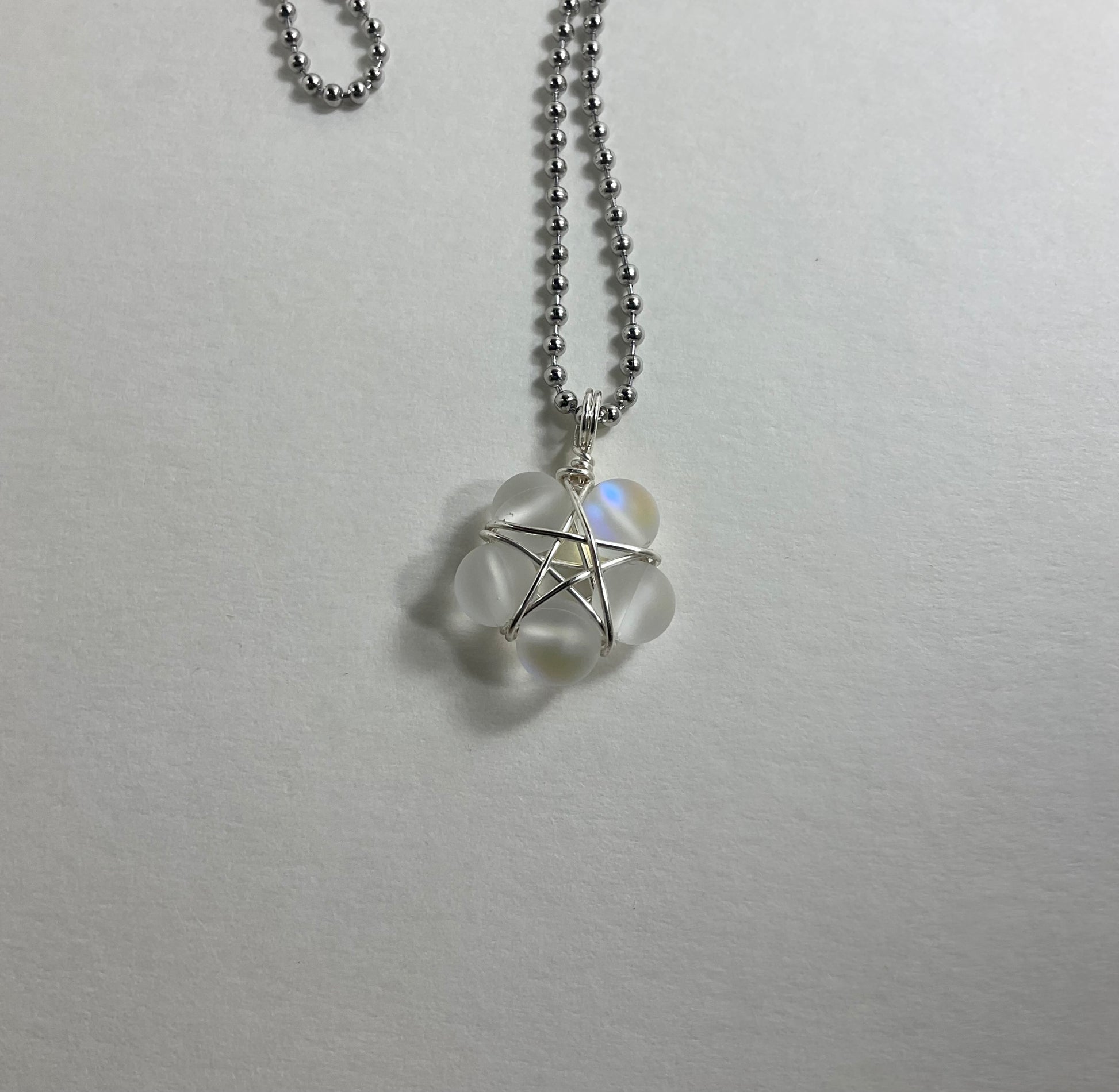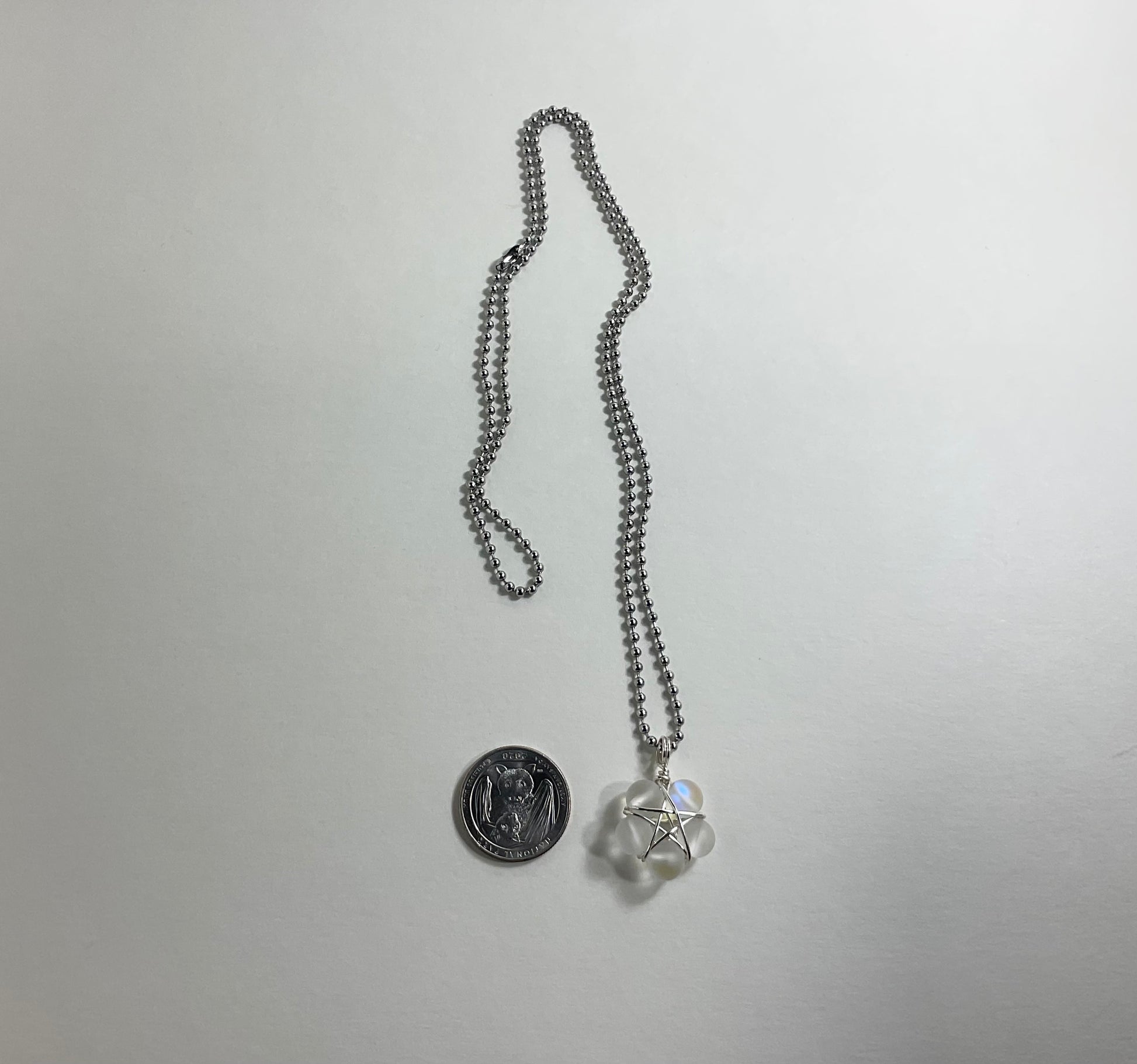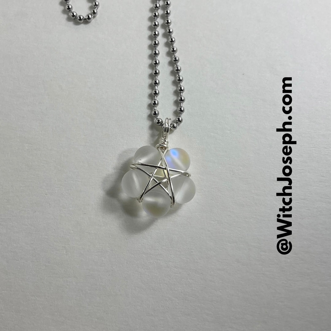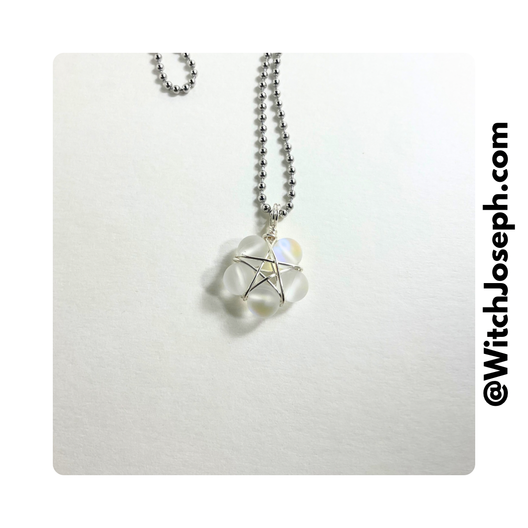 This Pentagram (approximately .750 inch diameter) is lovingly made by Brother Christopher here at Witch House…using five (approximately 8mm) Mermaid glass beads (very iridescent) and silver tone wire. Charm Necklace comes on a 2.4mm Stainless Steel ball chain (24”).