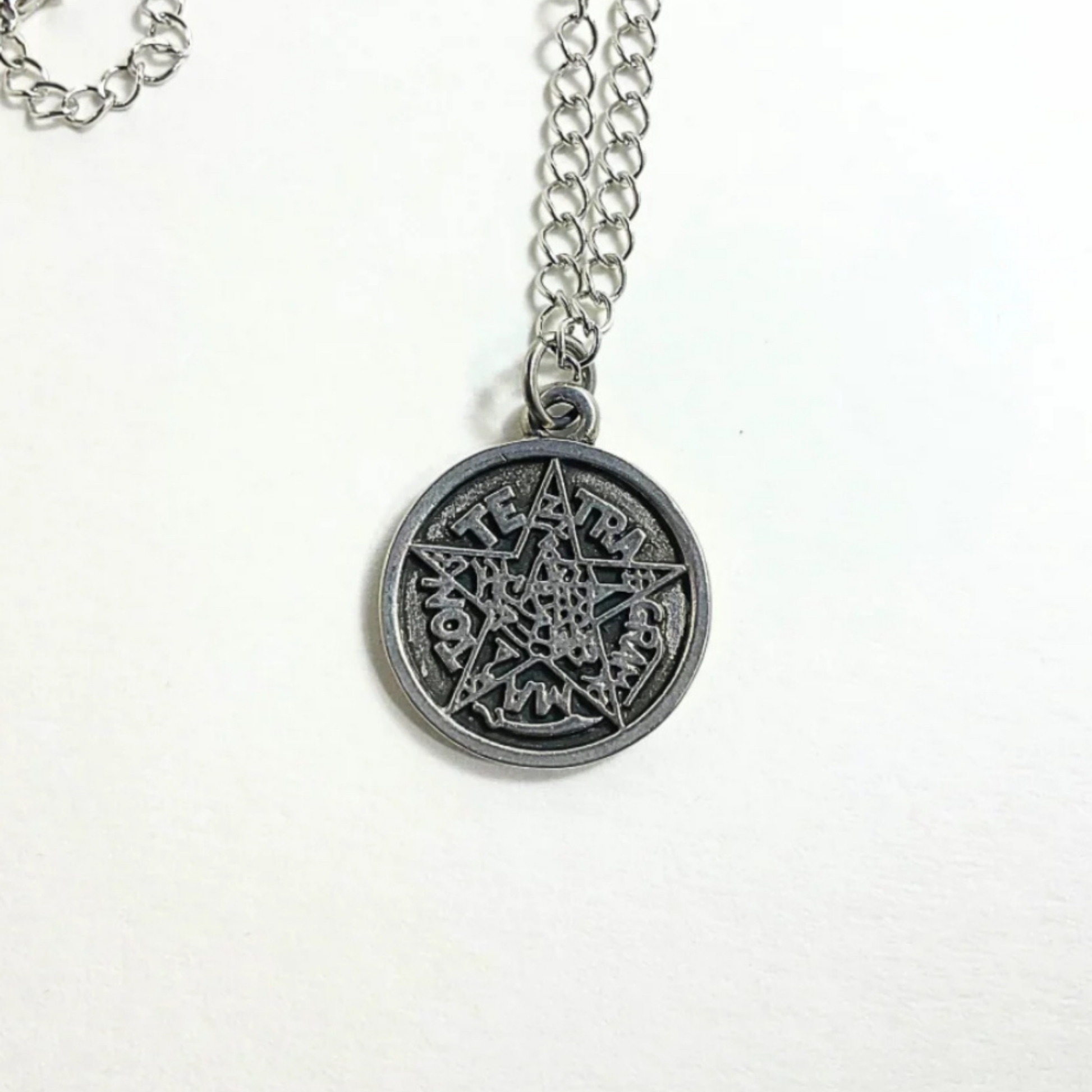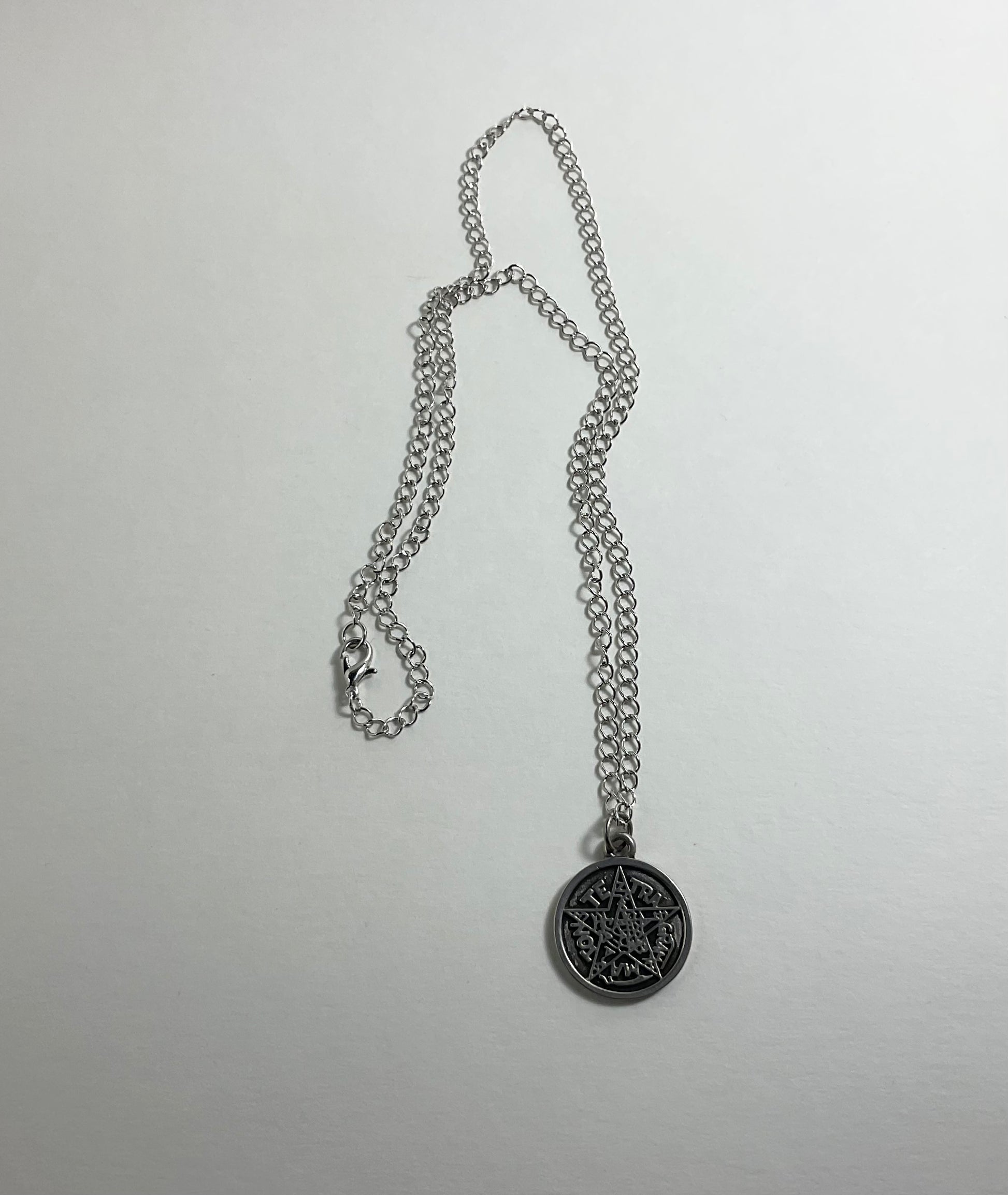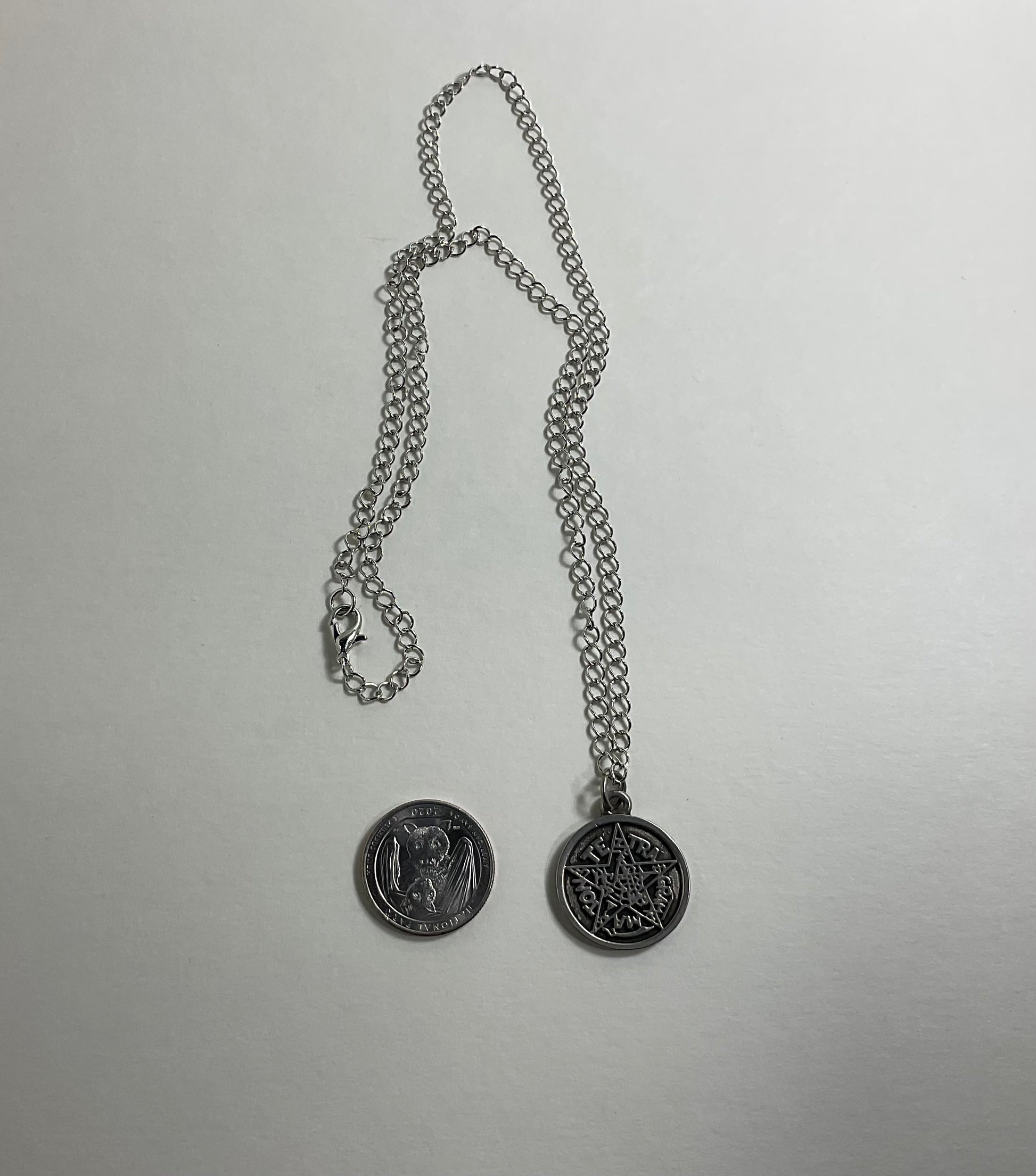 This metal Pentacle (approximately 1 inch diameter) is designed from Eliphas Levi’s design…and comes on a 22” chain.