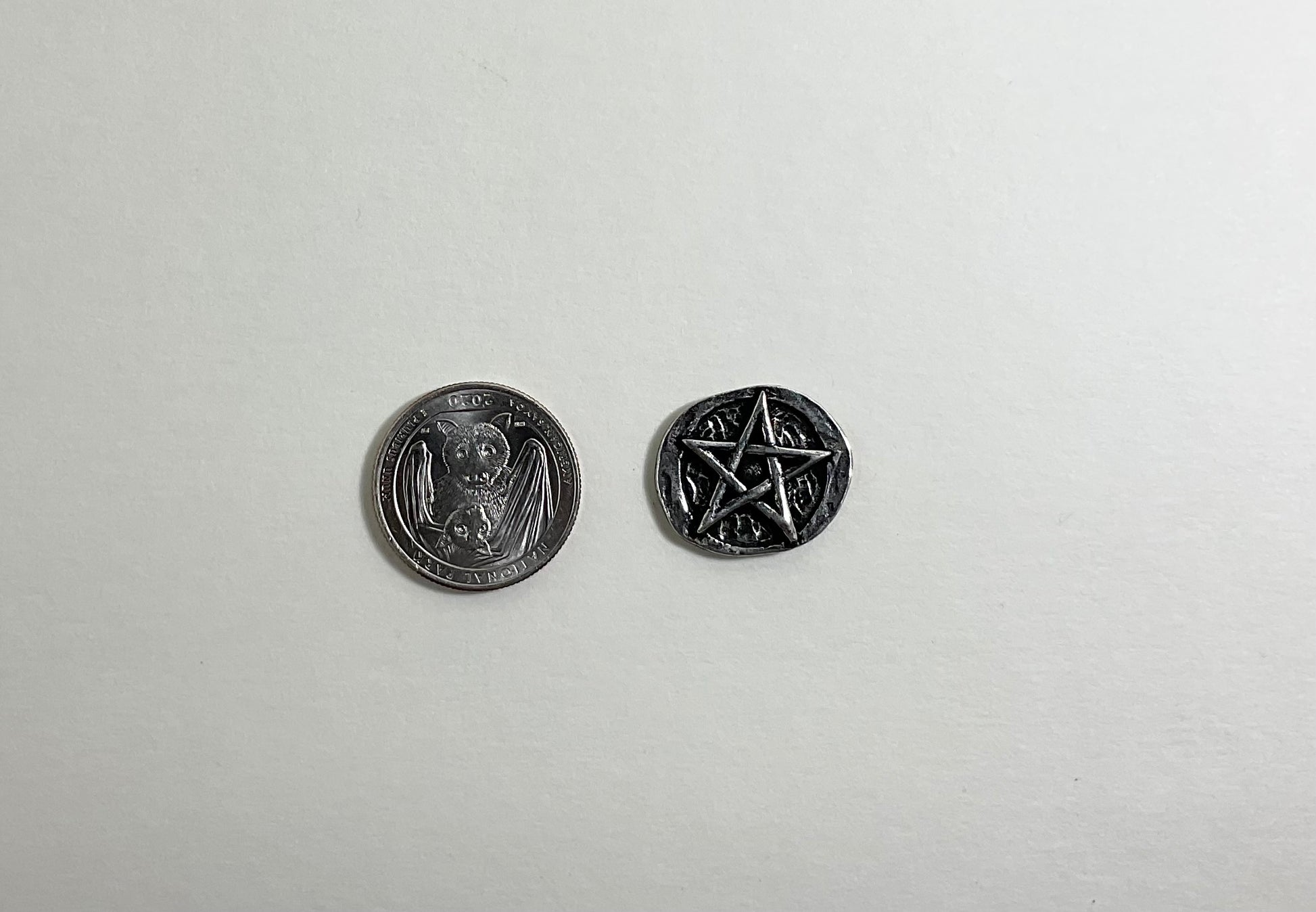 Embossed with a pentagram, this pocket stone functions as a powerful focus during your ritual magic and meditation. Pewter 1” x 5/8”. Made in USA.