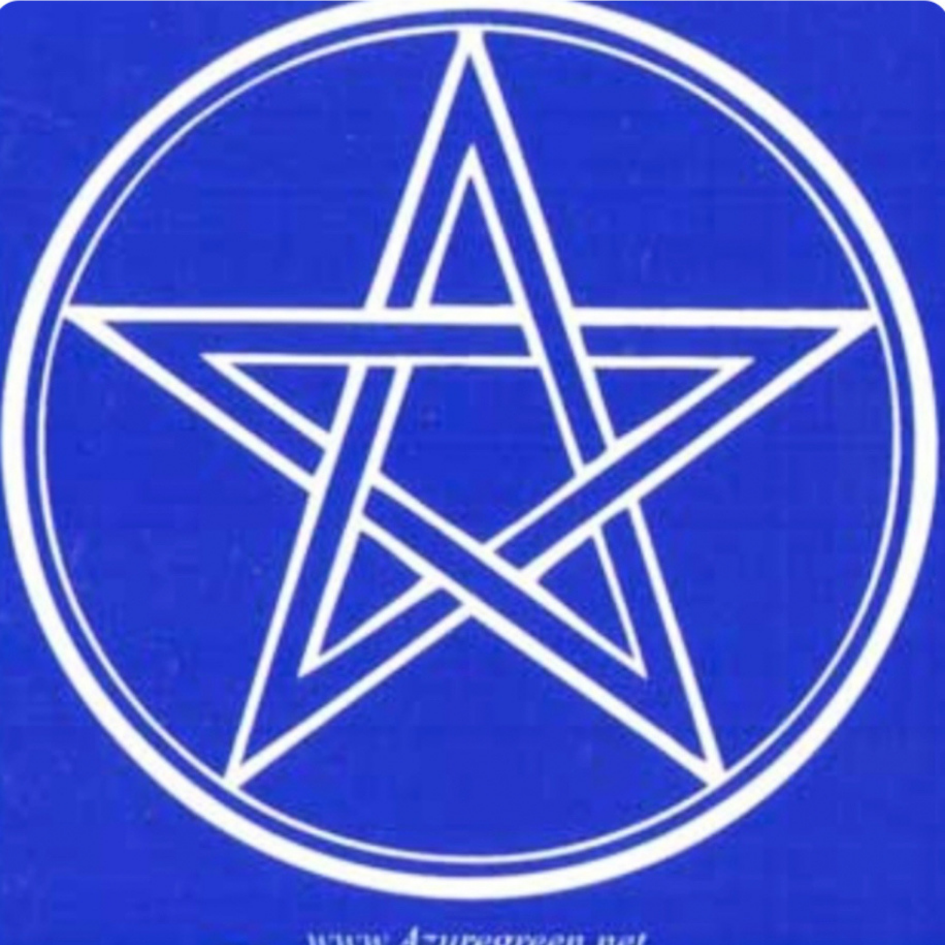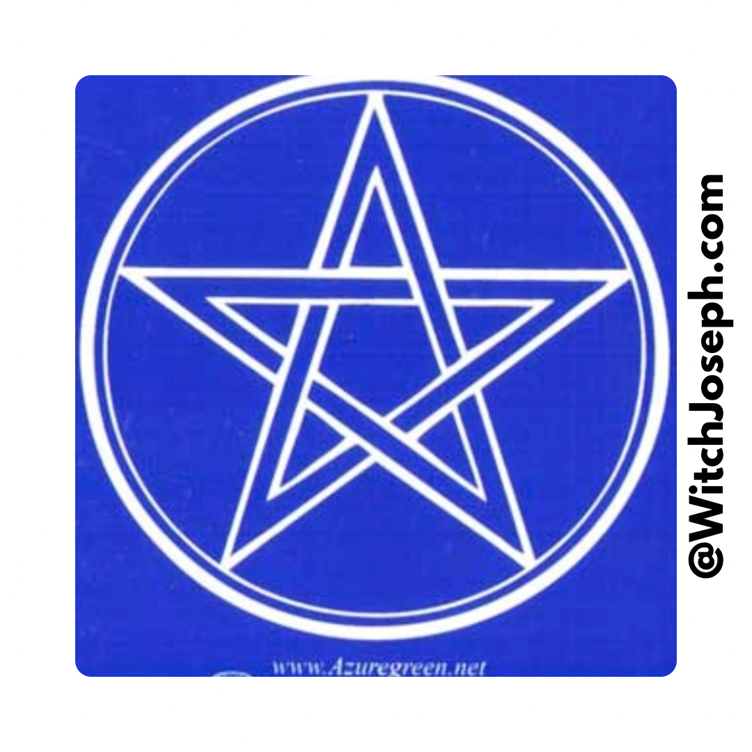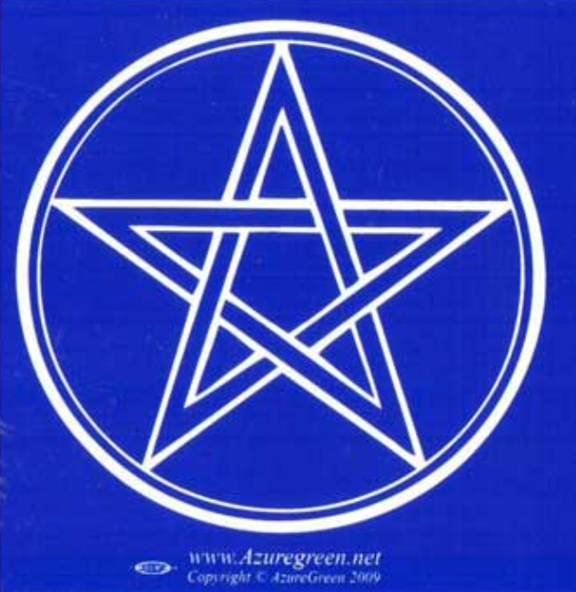 This is a 3" x 3" pentagram bumper sticker, portraying an interwoven pentagram in Blue on a white background.