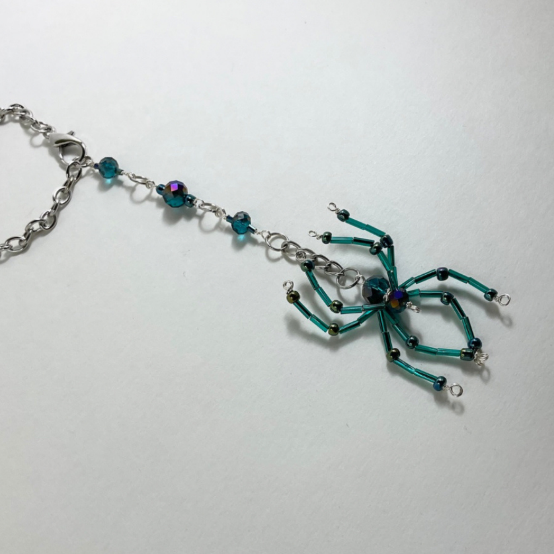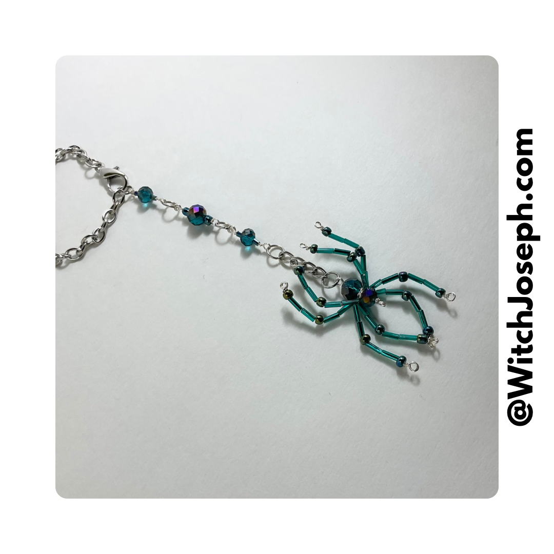 The chain is approximately 6 inches long with a lobster style clasp. The spider charm measures approximately 3 inches long by 1.5 inches wide with vintage style crystal beads ranging from 6mm to 10mm…with tube beads adorning the long beautiful spider legs.