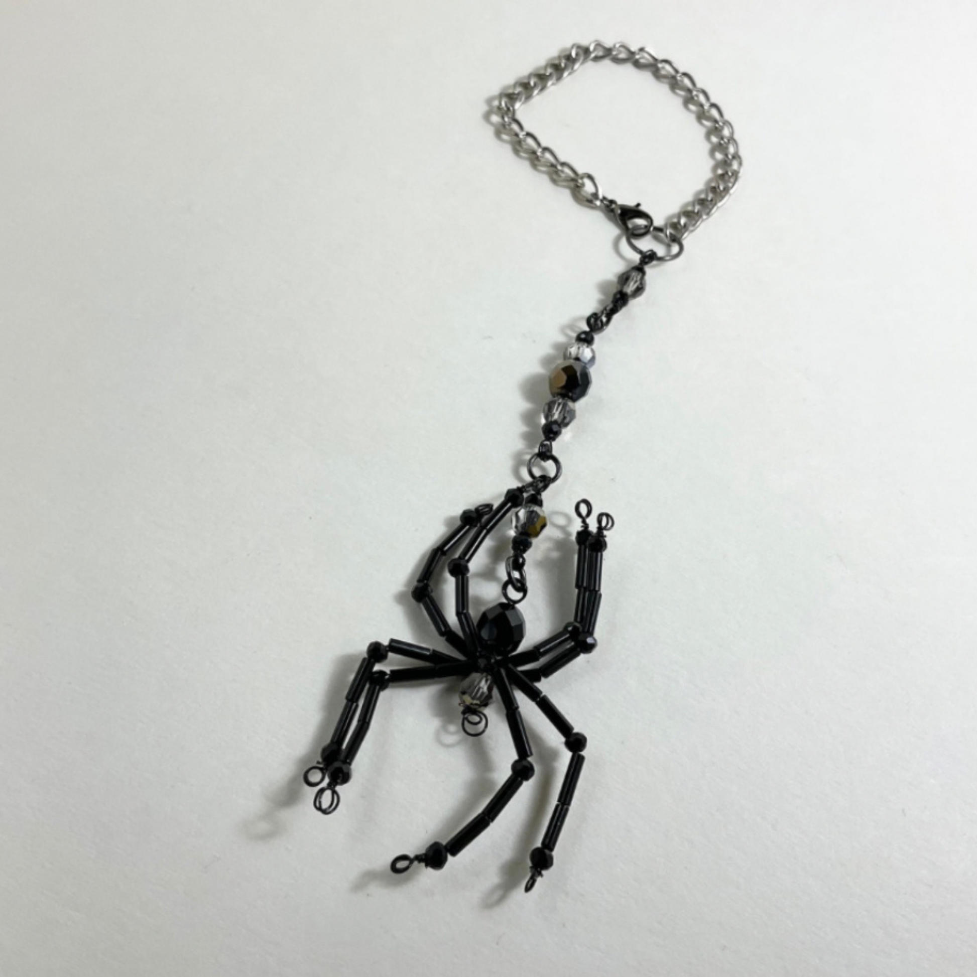 The chain is approximately 6 inches long with a lobster style clasp. The spider charm measures approximately 3 inches long by 1.5 inches wide with vintage style crystal beads ranging from 6mm to 10mm…with tube beads adorning the long beautiful spider legs.