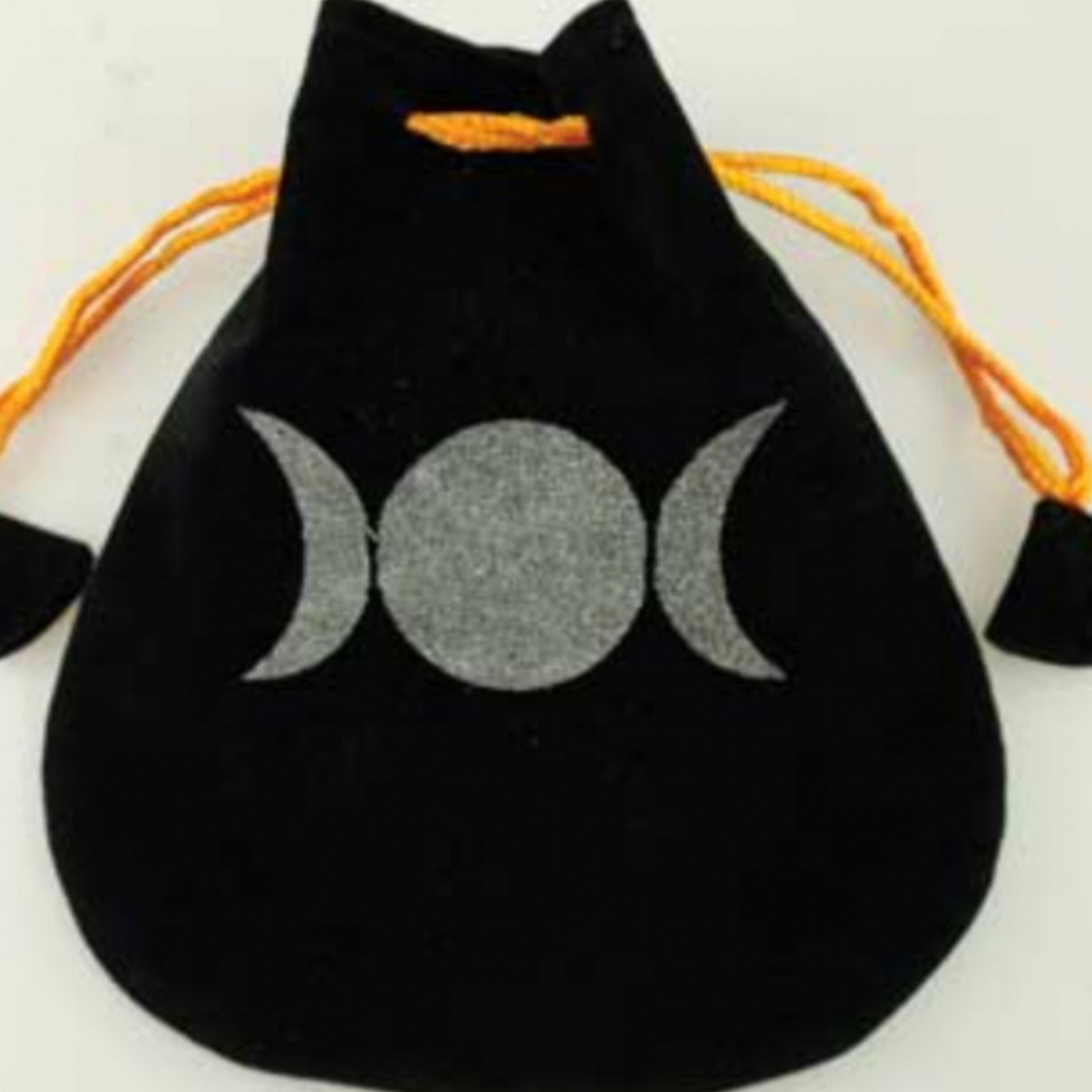 Featuring the Triple Goddess, the triple moon symbol of the Maiden, Mother and Crone, this black drawstring bag is perfect for the creation of mojo bags or gris gris bags…or for storing sacred items. 5"