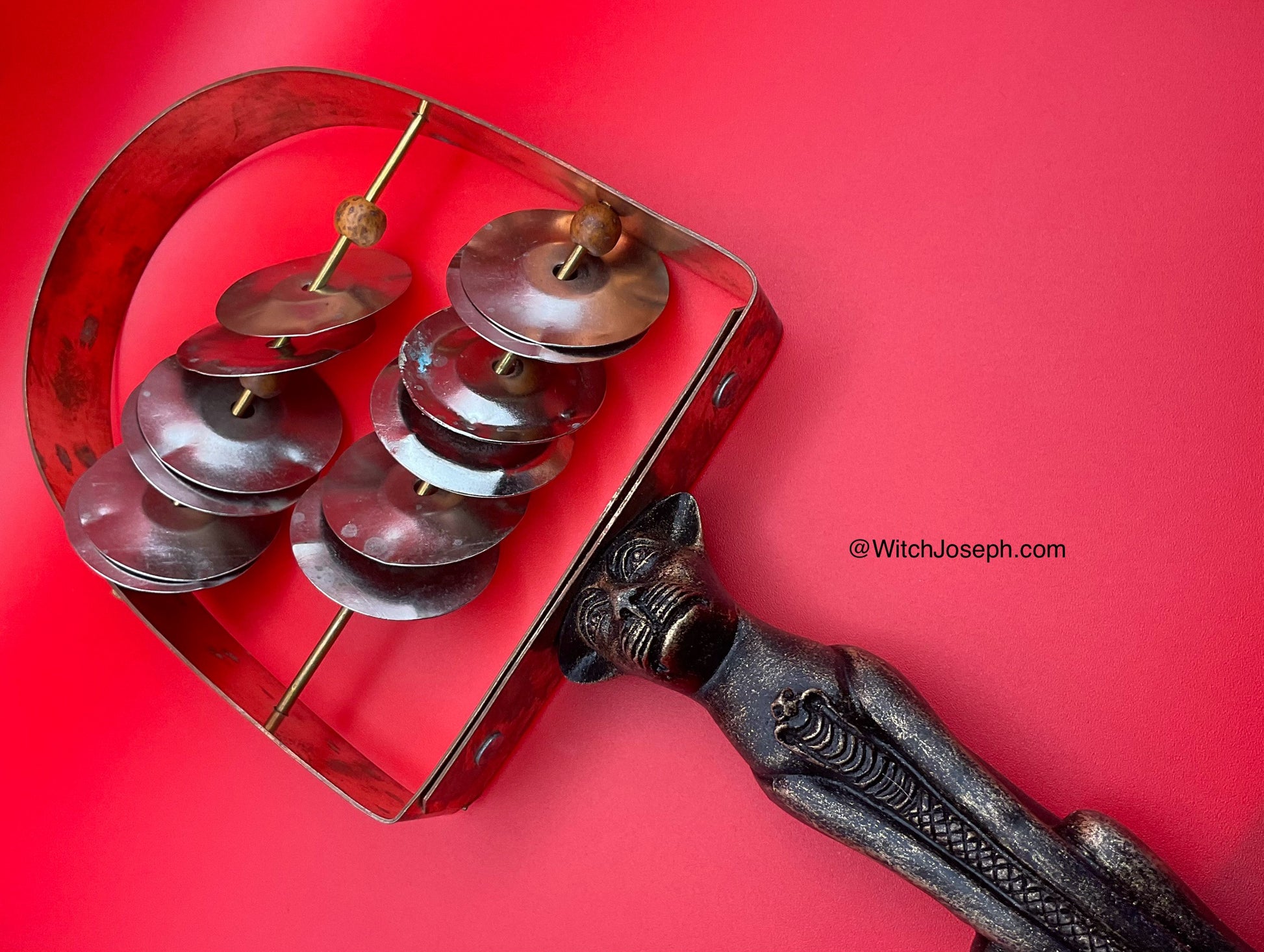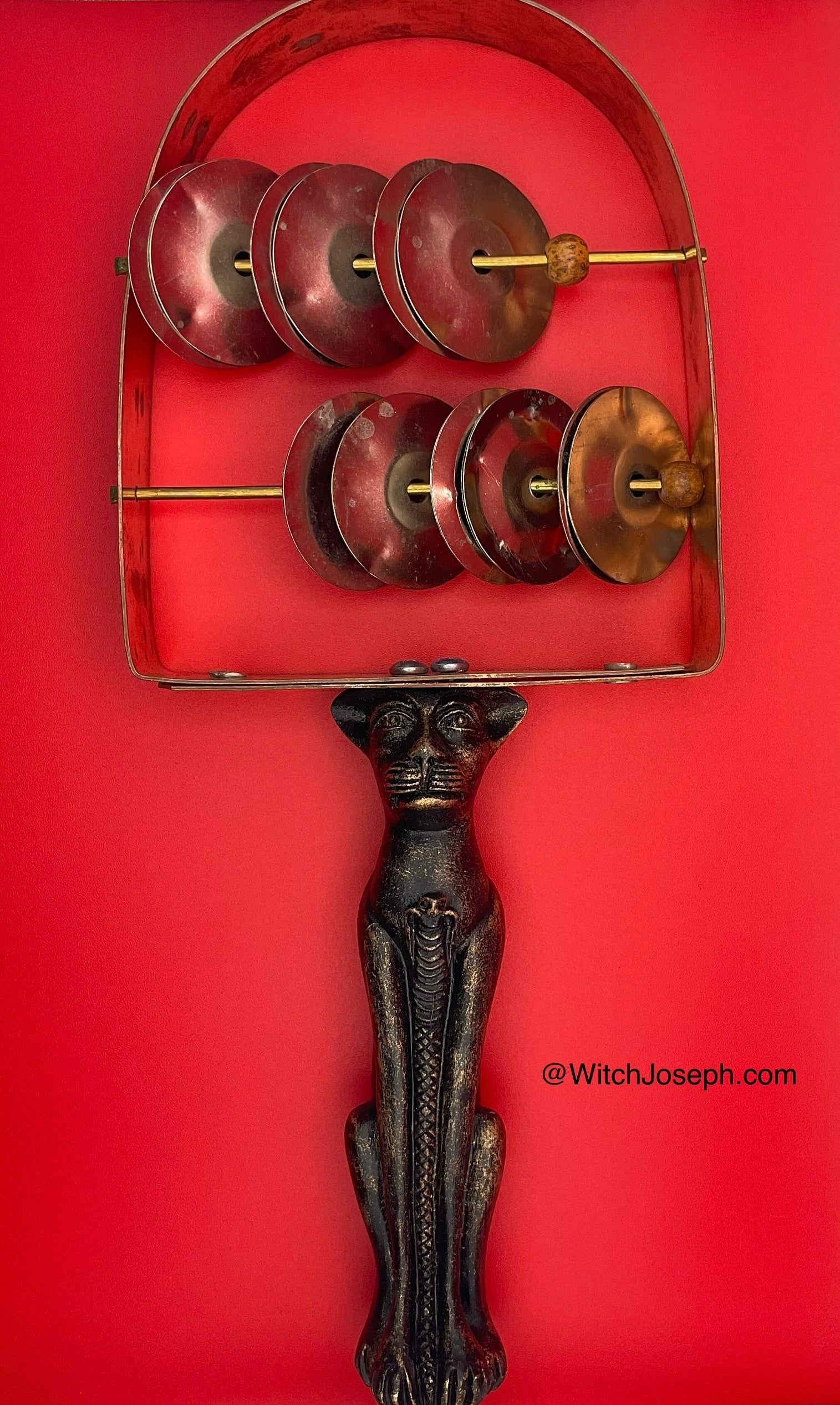 We have recreated this Egyptian sacred rattle to glorify Bast. Its tinkling evokes energy and a mood of good cheer.