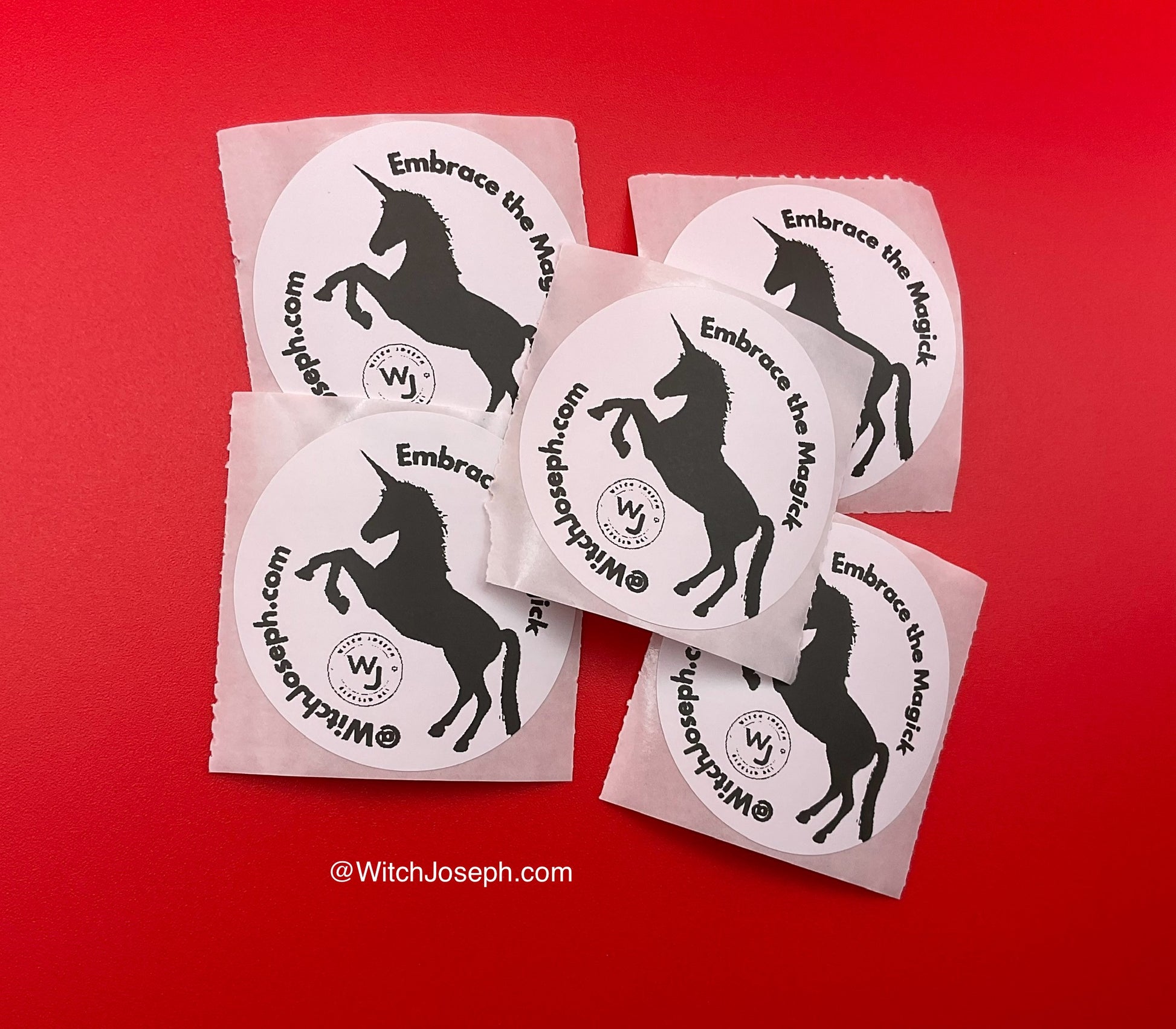 Add a touch of enchantment wherever you go with our Unicorn Sticker Pack. This 5-piece set features vibrant unicorn designs paired with the empowering phrase “Embrace the Magick.” Perfect for decorating journals, laptops, water bottles, altars, or anywhere you want to infuse a little sparkle of mystical energy.